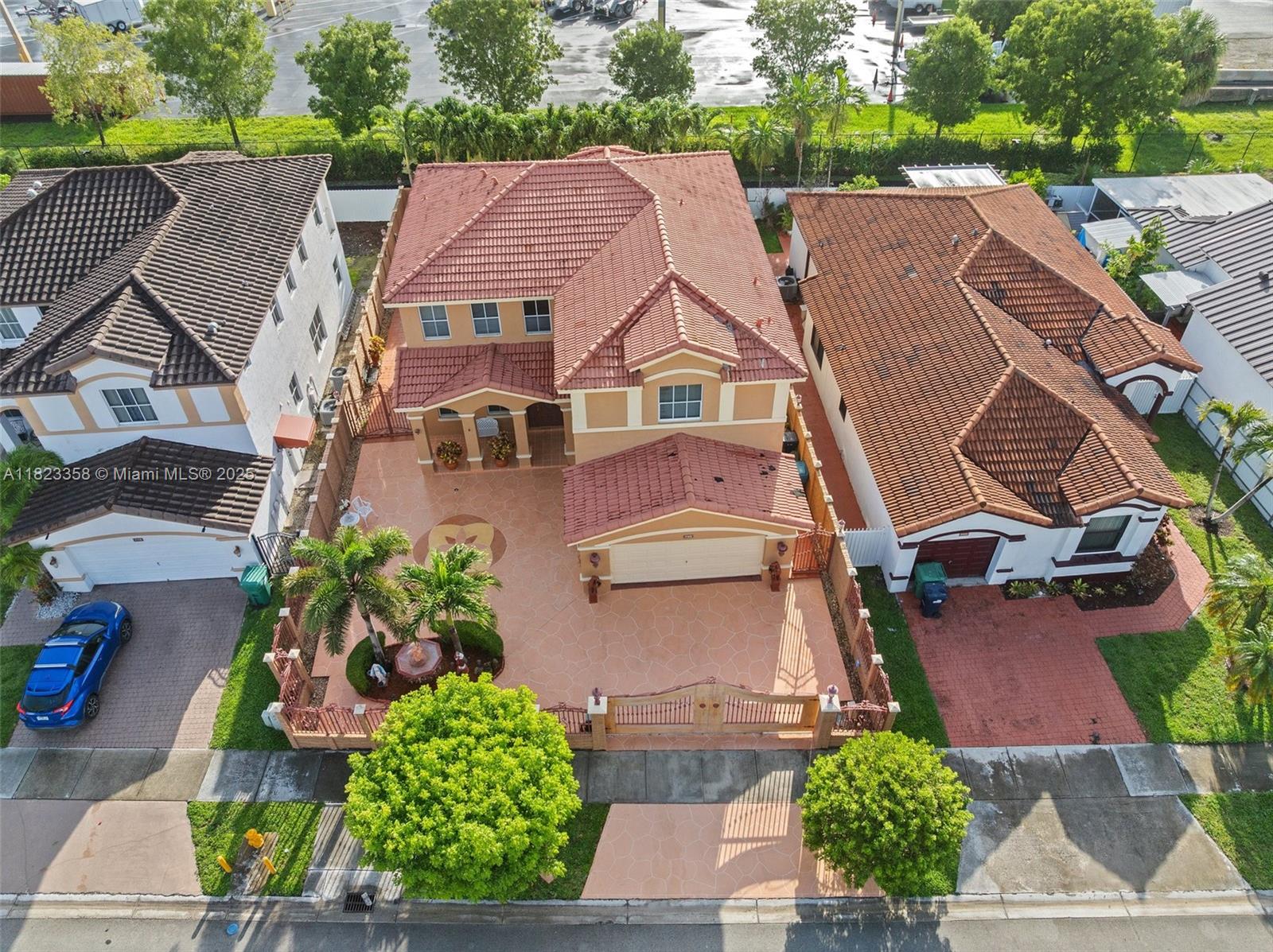 This beautifully well maintained 4-beds, 4-baths home in Miami, 2,826 sqft of living space, featuring wood flooring upstairs, matching custom kitchen cabinets & porcelain finishes throughout. New fridge & stove (2024), complemented by a washer & dryer also updated in 2024. The home includes custom made doors in all the property, including French doors, walk-in closets with cedar wood in the master bed, & two attics, 1 in the garage & another in the master bedroom. Includes a dual-sink bath, a garage with an extra closet, & a backyard oasis featuring a pool with a waterfall, jacuzzi, BBQ area, & wall fence for added privacy. Equipped with shutters & a 2021 AC system, room with full bath & walking closet, home office, utility closet in the garage, wall throughout the property, gate entrance
