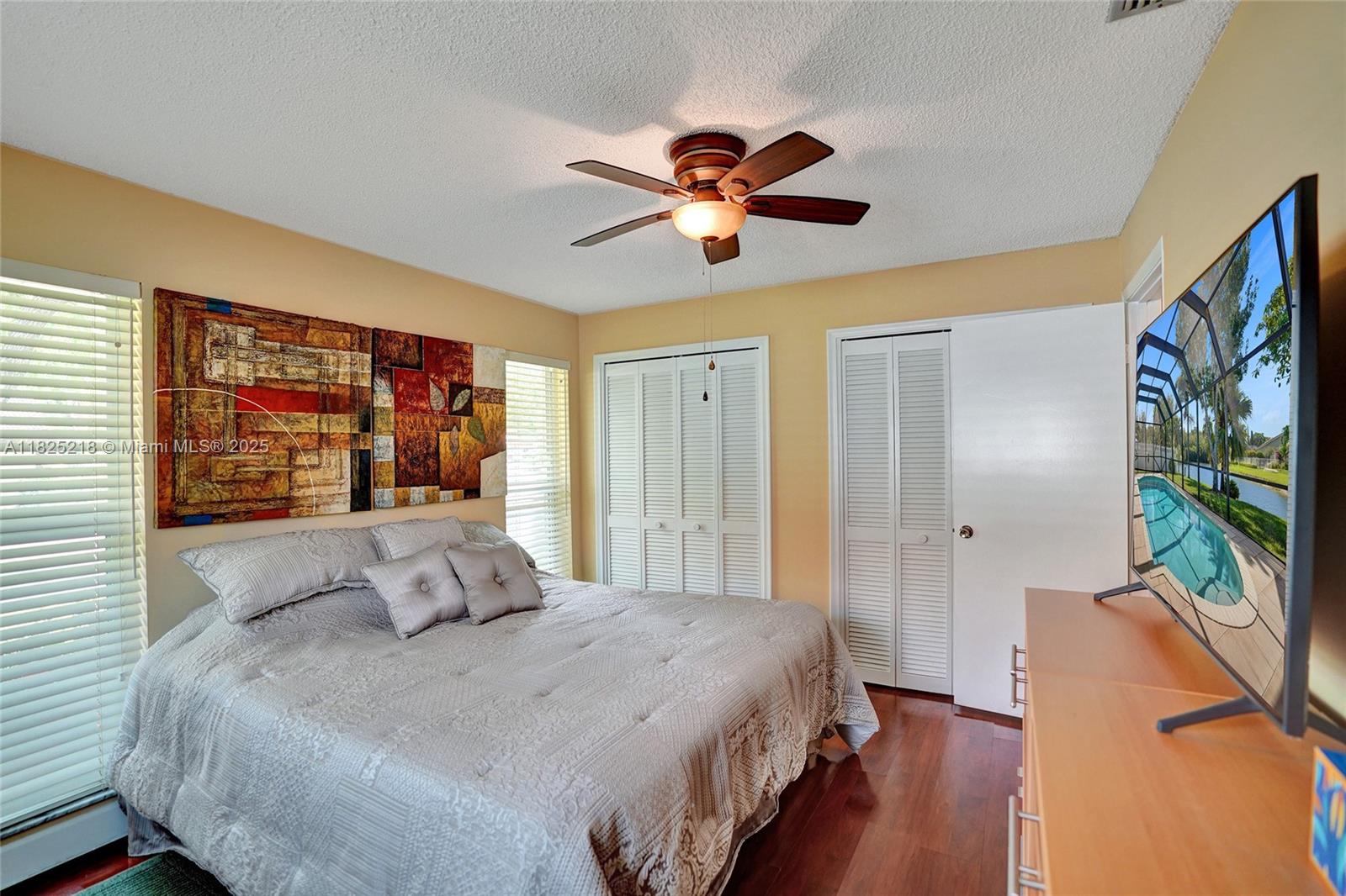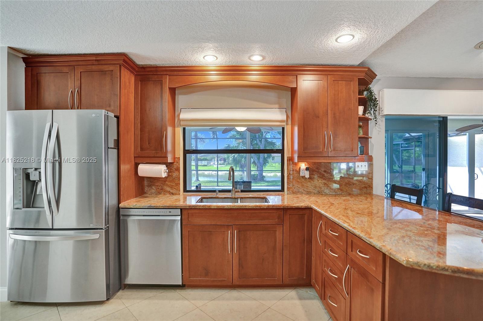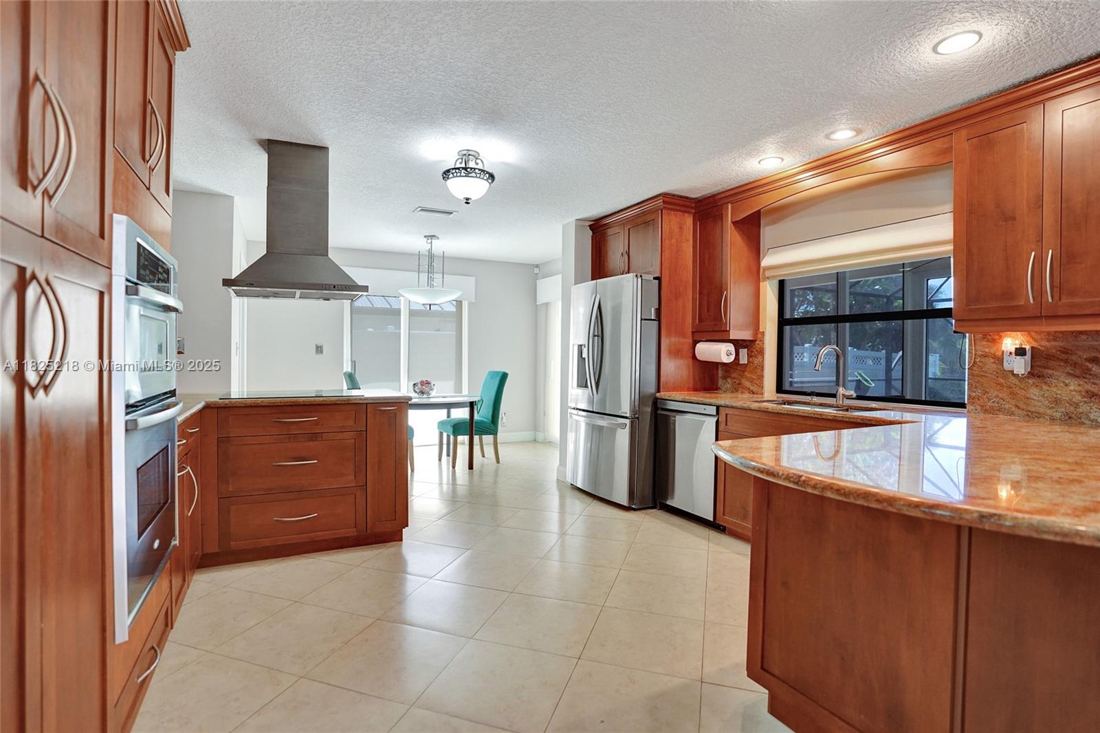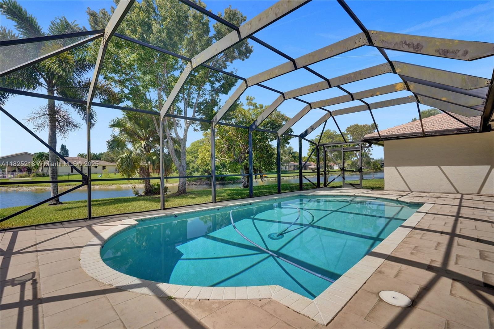 Vaulted ceilings accent open living spaces in the main living areas, built-in bookcases flanking a fireplace! Formal dining room currently used for a cozy TV space. Attractive hood over cooktop, granite countertops & full backsplash, crown molding on cabinets, stainless steel appliances! Patio off of the sitting area. The oversized laundry room includes abundant cabinets, folding space, a tankless water heater, LG washer & GE dryer. Most bedrooms with wood floors & one used as a office is tiled.The primary suite featuress a walk-in closet & updated bath. Enjoy serene triple water views across from a park off of the screened-in pool with a beautifully tiled deck & cabana bath access. Enclosed sunroom! Full impact windows, tile & wood flooring. Circular drive this must-see home with no HOA!