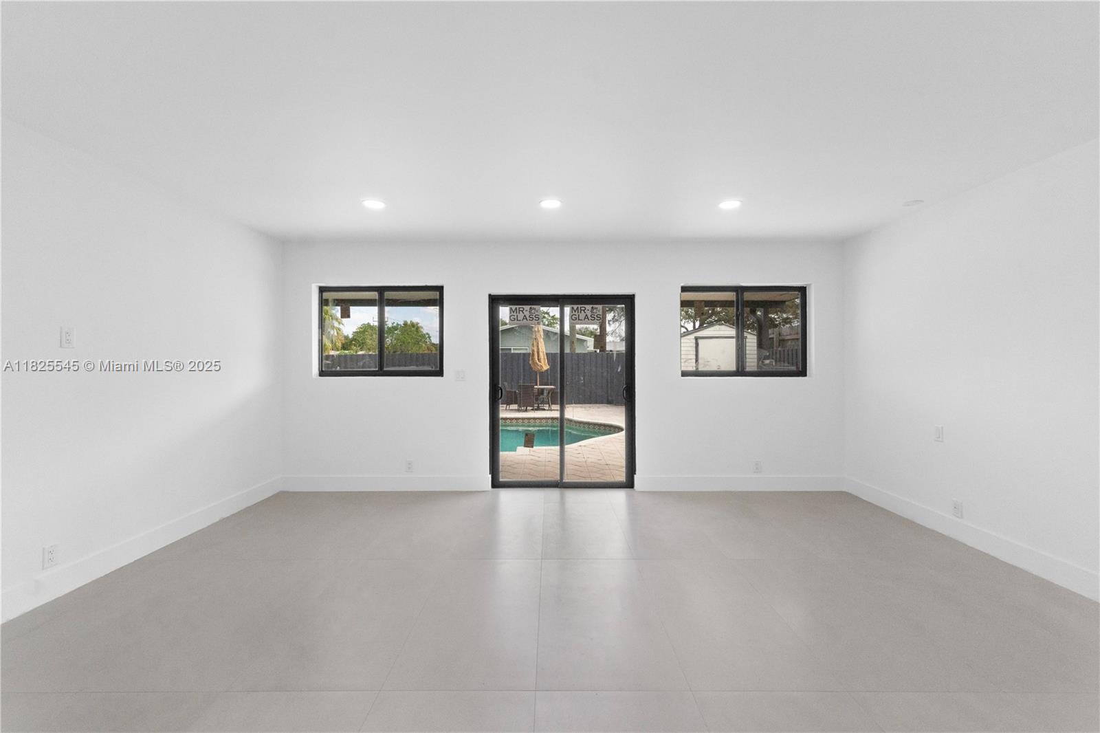 Beautifully remodeled pool home in the heart of Hollywood Hills! This 4 bed, 3.5 bath home with a den features a custom kitchen with oversized island, stainless steel appliances, wall oven, and bar. Enjoy new plumbing, electrical, roof, impact windows and doors. Spacious primary suite with walk-in closet and modern bath. Backyard oasis with large pool, tiki bar, and privacy wall—perfect for entertaining. Includes laundry room, sprinkler system, and leaf filter gutters. Minutes from the beach, business', shopping, and place of worship! No expense spared!