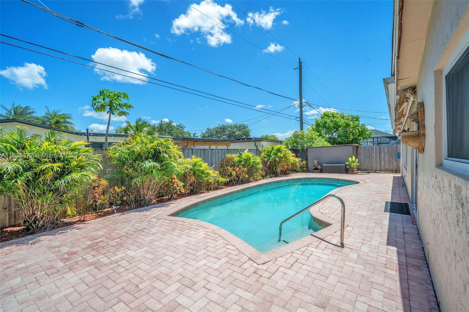 Superb upgraded Cooper City Cooper Estate pool home. Walk to stellar Cooper City schools and public golf course. Gourmet kitchen with 2023 wood cabinetry, granite counters, stainless steel appliances. Sliding glass doors open to private, fully fenced tropical paradise with paver patio and beautiful pool, sun awning, tropical landscaping and storage shed. Impact doors and windows, hurricane-rated garage door, newer 2017 roof. Other upgrades incl 2023 A/C and water heater, wood laminate flooring and tile, lighting and more. Deep one car garage plus circular driveway with room for 4 more cars. Perfect home and spectacular long-term investment. No HOA = no HOA fees. Awesome family home or high yield investment property.