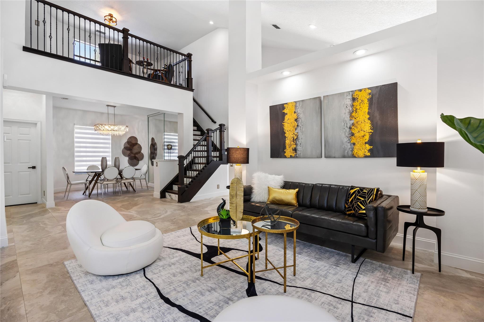 Welcome to this move-in-ready, low maintenance showstopper. Every inch has been thoughtfully redesigned. Downstairs features a formal living room, private office (or 5th bed) with adjacent full bath, grand primary suite, formal dining, and open-concept kitchen/family room with electric fireplace—all with views of the heated pool. Upstairs offers a versatile loft, three additional bedrooms, and two full baths. Enjoy peace of mind with a new roof, hurricane impact windows, new AC, pool equipment, and full video surveillance and alarm system. The 2-car garage boasts epoxy floors and overhead storage. Low HOA. Gated community includes 24/7 security, tennis, pickleball, playground, fitness center, and optional golf. Ideally located near top-rated schools, shopping, dining & major highways.
