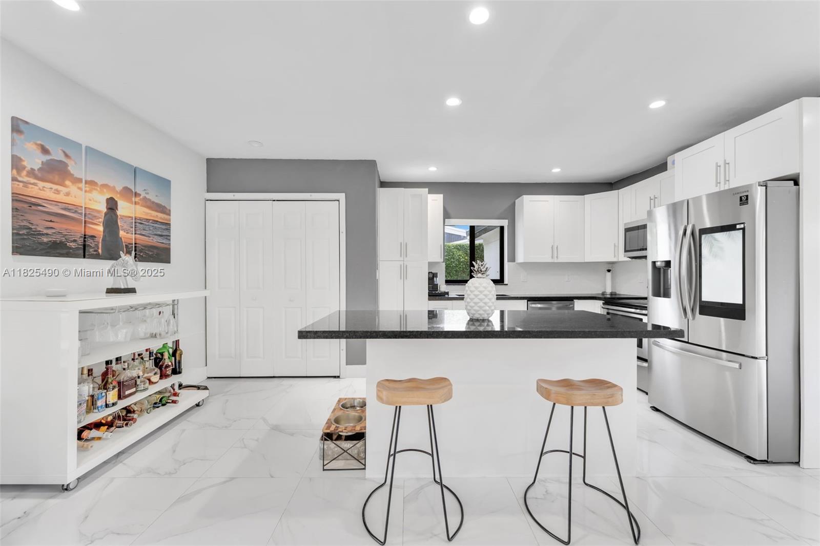 This is the home you've been waiting for, not only is it move in ready, but it's loaded w/ updates and modern features! Some upgrades include: 2024 Concrete Roof, 2022 A/C, 2021 Impact windows, 2024 EV charger, smart doorlock + thermostat. The house is nicely remodeled, w/ a stunning modern driveway + mailbox, updated baths, flooring, closets, modern kitchen w/ SS appliances including a smart Refrigerator w/ screen, and a storage room. The backyard is one of the best features of the house - fully fenced and secluded with privacy plants, upgraded with synthetic turf and a beautiful pergola w/ hanging lights. The location is unbeatable: easy access to I-95, 5 min to Brightline station, 10 min to Aventura mall, 15 min to the beach, very near Greynolds park, supermarkets, restaurants and more!