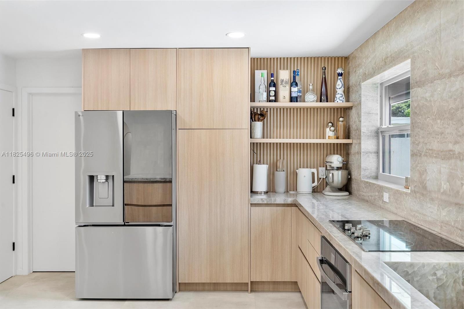 Located on the most exclusive street in Hollywood Hills—North Highland Drive! this fully remodeled 3-bedroom, 2-bath pool home offers the perfect combination of luxury and modern living. With brand new plumbing & electrical systems, a new roof, and a smart home system, every corner of this home has been thoughtfully upgraded. The open-concept layout features a beautifully redesigned kitchen with top-of-the-line appliances, peninsula, and elegant Taj Mahal natural stone quartzite countertops. Stylish porcelain tile flooring runs throughout, complemented by a bright and inviting Florida room and a spacious yard with a saltwater pool—ideal for relaxing or entertaining. 2 car garage, circular brick driveway, concrete privacy fence. This move-in-ready, one-of-a-kind home is a must-see.