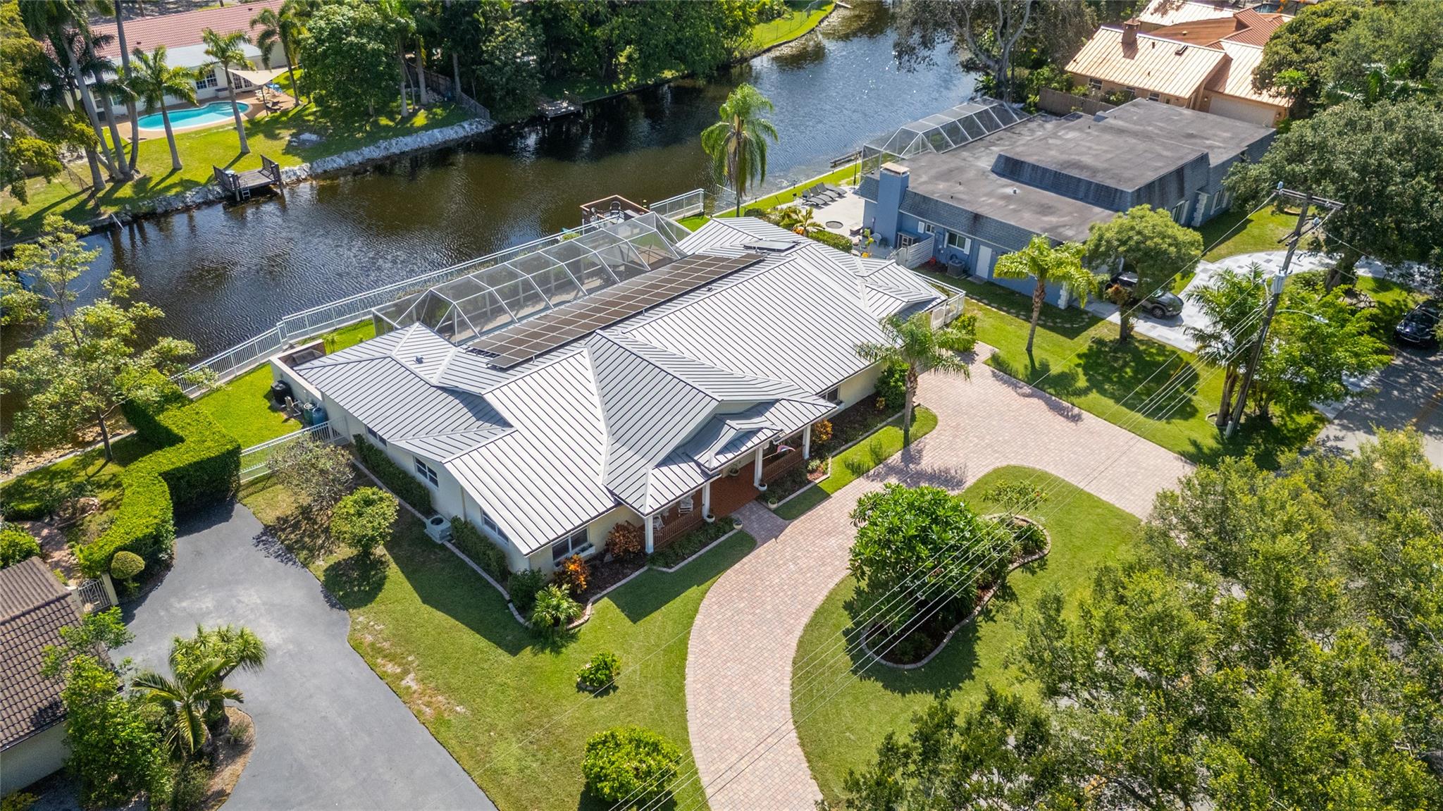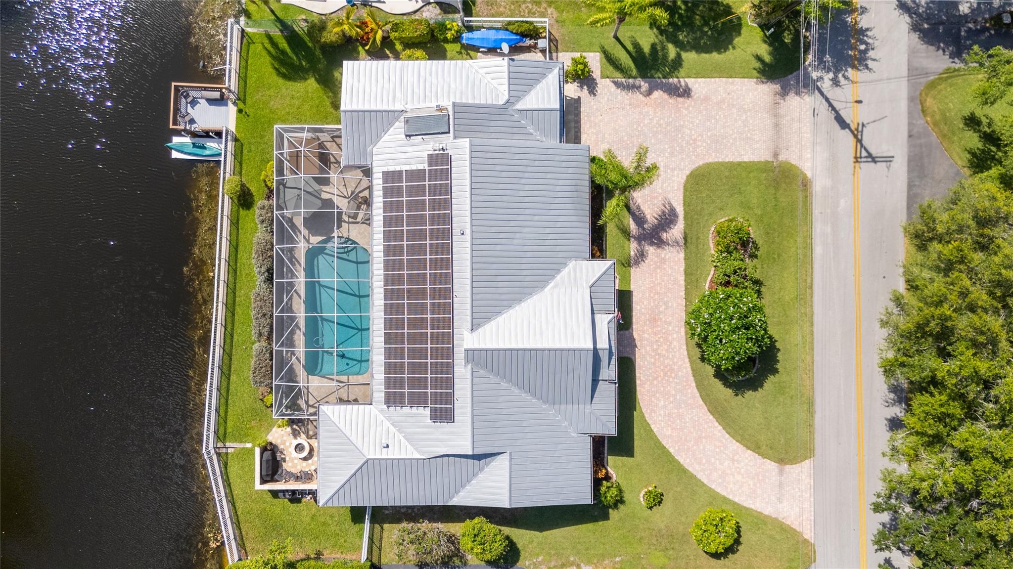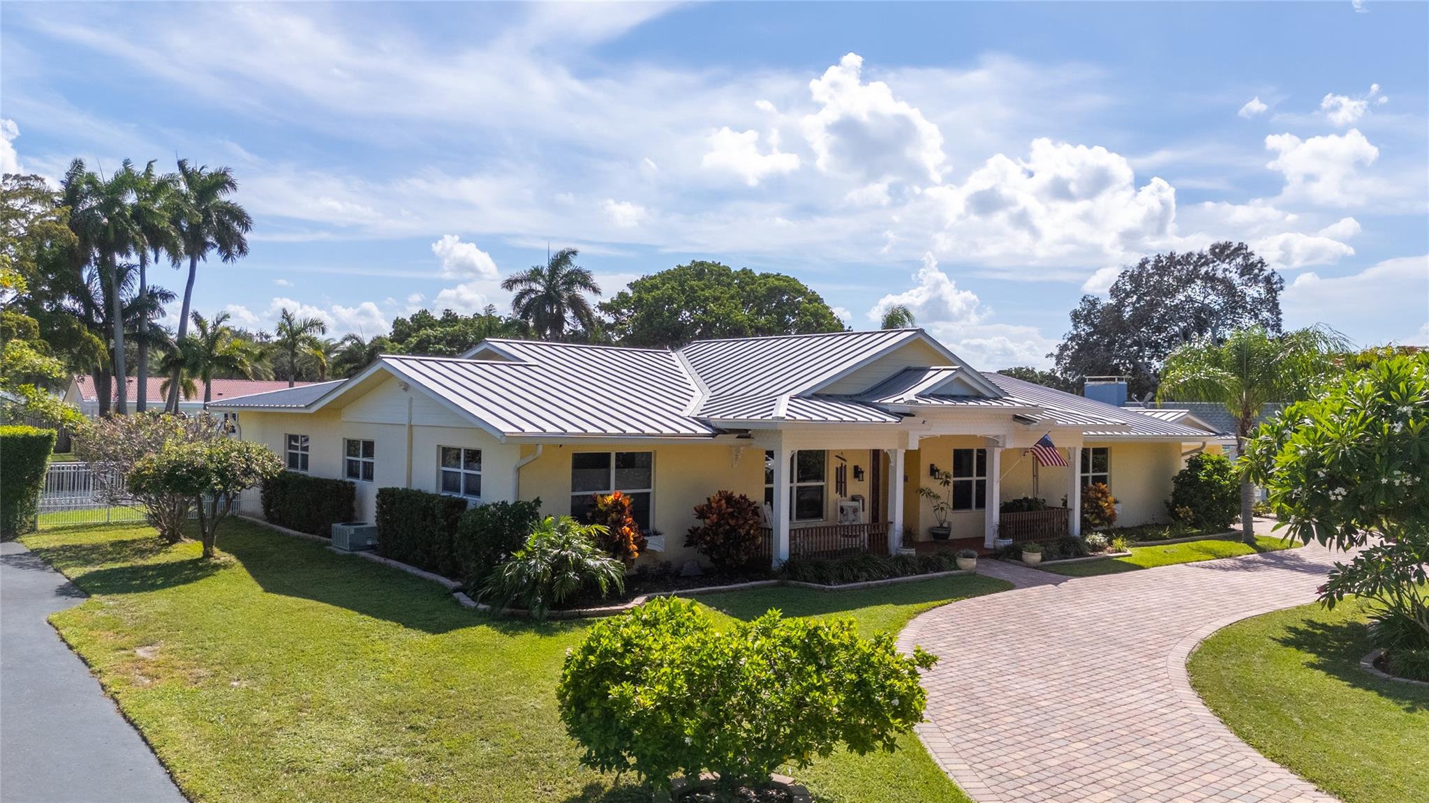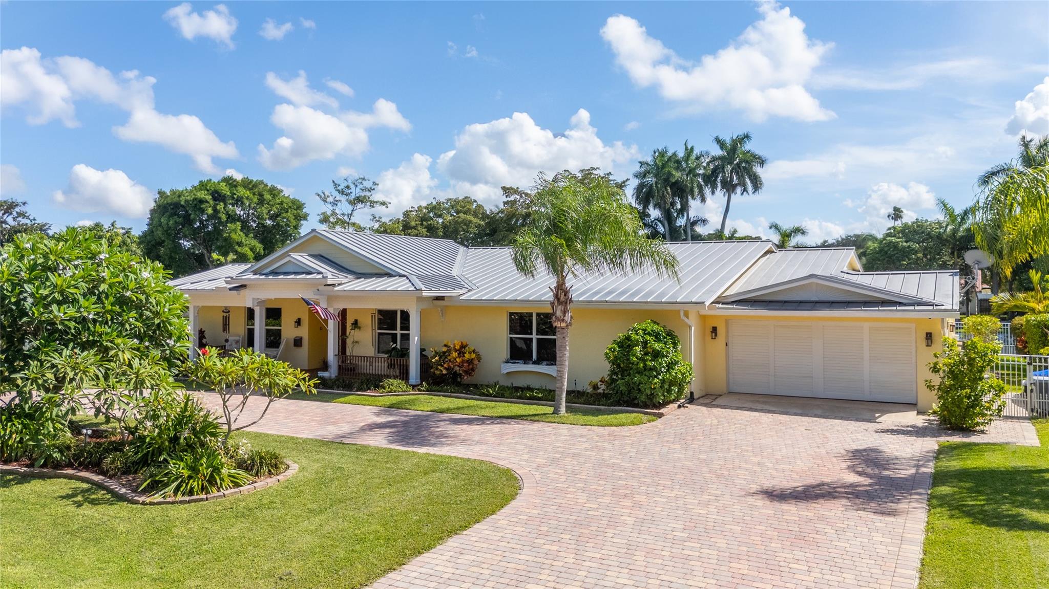 Unique Key West–style waterfront retreat in prestigious Golf Estates. Stunning 5 bedroom, 3 bath home w/Den/6th bedroom + tons of storage. Features double split layout w/2 Primary Suites. Entertain effortlessly w/large living, dining + eat in kitchen, screened salt-water pool-patio, hot tub, cabana baths, expansive covered patio, separate firepit area, + a private dock w/floating extension. Side-yard double gates allow boat/RV parking. Upgrades include metal roof, solar ELECTRIC panels, new solar hot-water heater, all-PVC plumbing, elevated seawall, motion-sensory lighting, hard-wired security cameras, 3 A/C units (includes new 5-ton main unit), canal-fed sprinkler system, septic tank, + complete hurricane protection-impact glass + shutters. Close 2 Schools, Malls, Airport, Beach, Casino+