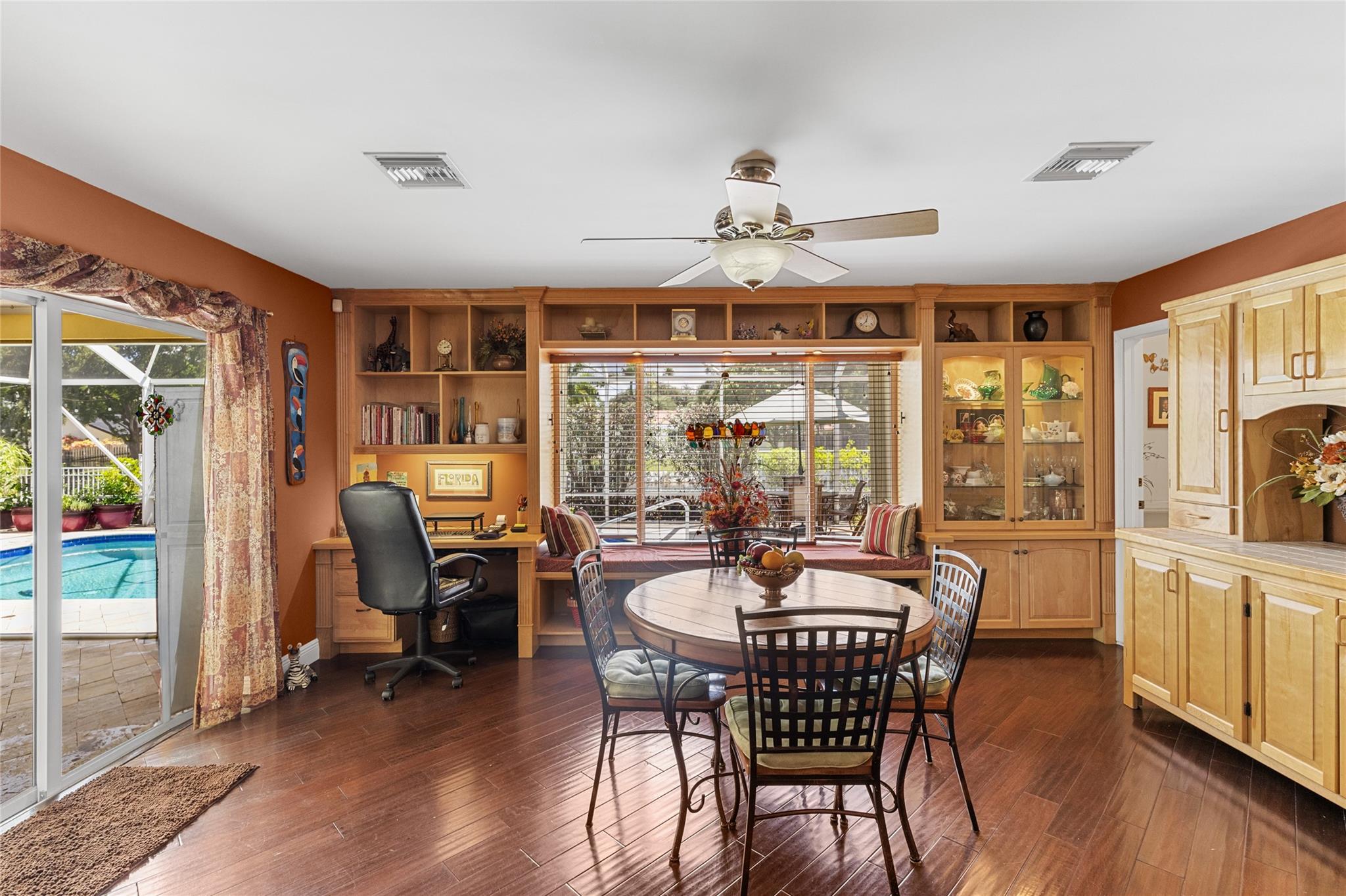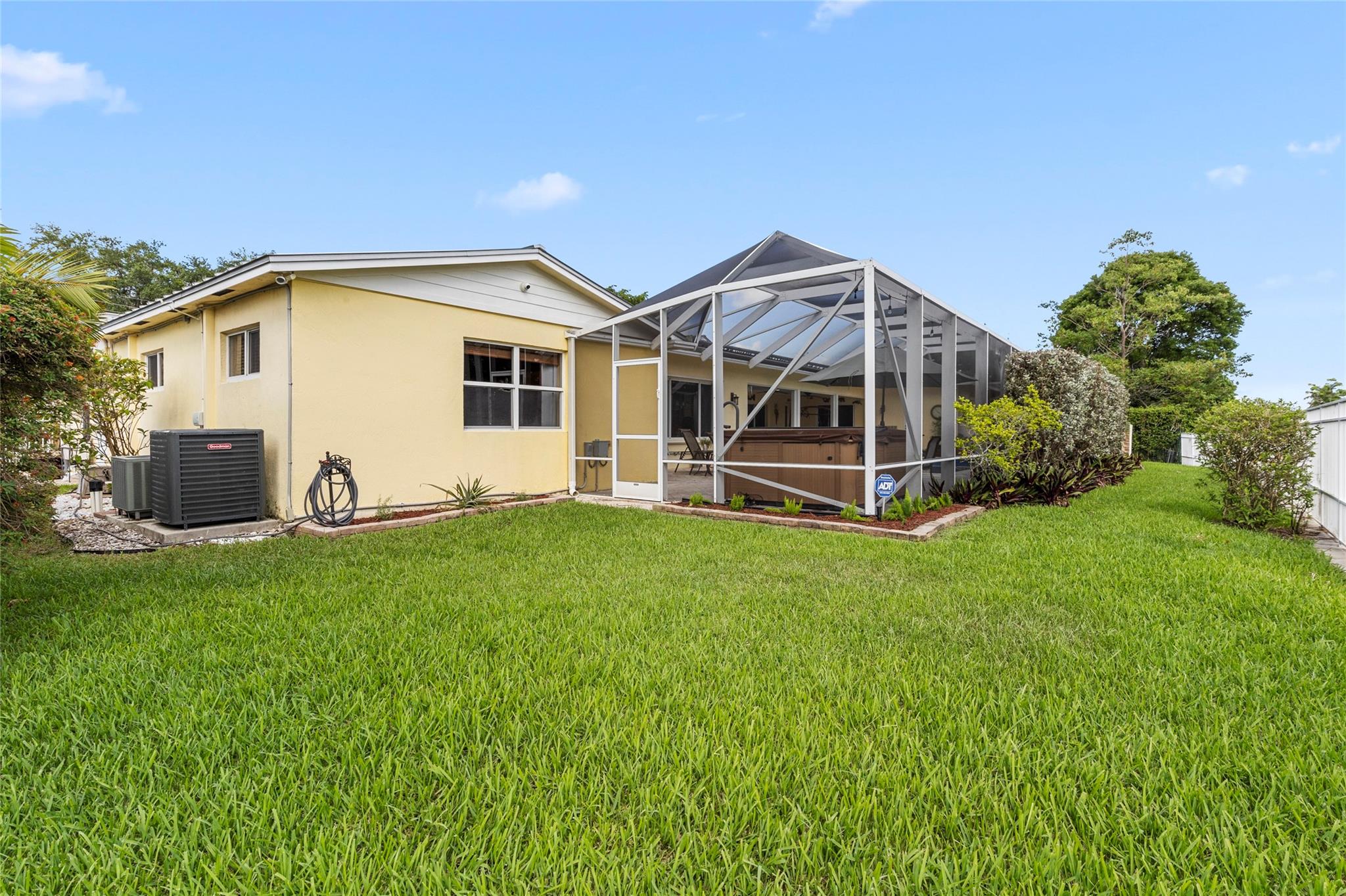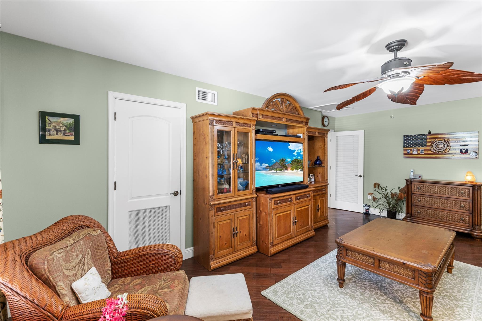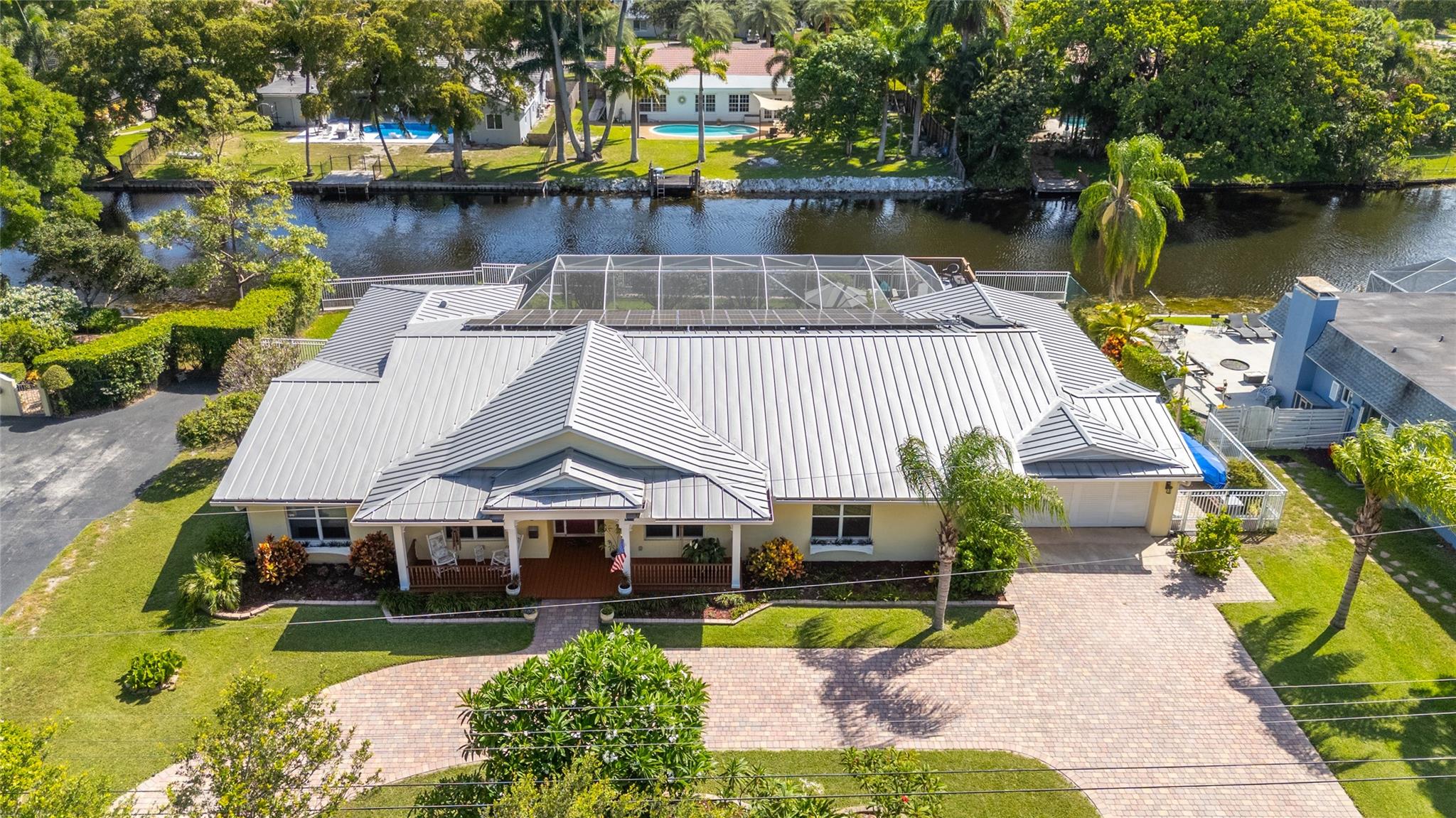 Unique Key West–style waterfront retreat in prestigious Golf Estates. Stunning 5 bedroom, 3 bath home w/Den/6th bedroom + tons of storage. Features double split layout w/2 Primary Suites. Entertain effortlessly w/large living, dining + eat in kitchen, screened salt-water pool-patio, hot tub, cabana baths, expansive covered patio, separate firepit area, + a private dock w/floating extension. Side-yard double gates allow boat/RV parking. Upgrades include metal roof, solar ELECTRIC panels, new solar hot-water heater, all-PVC plumbing, elevated seawall, motion-sensory lighting, hard-wired security cameras, 3 A/C units (includes new 5-ton main unit), canal-fed sprinkler system, septic tank, + complete hurricane protection-impact glass + shutters. Close 2 Schools, Malls, Airport, Beach, Casino+