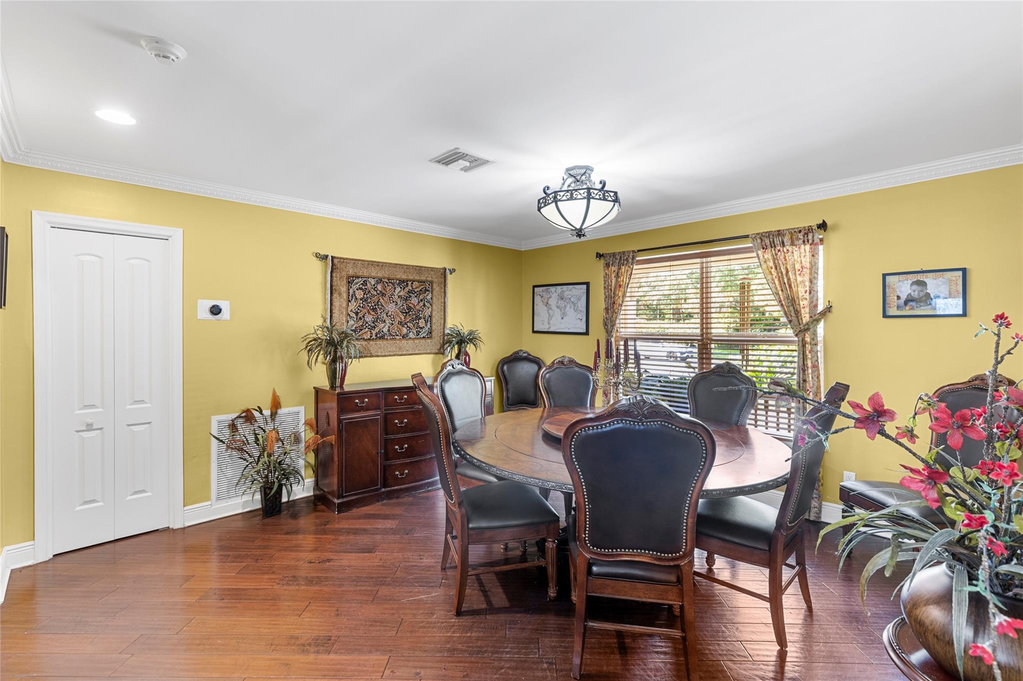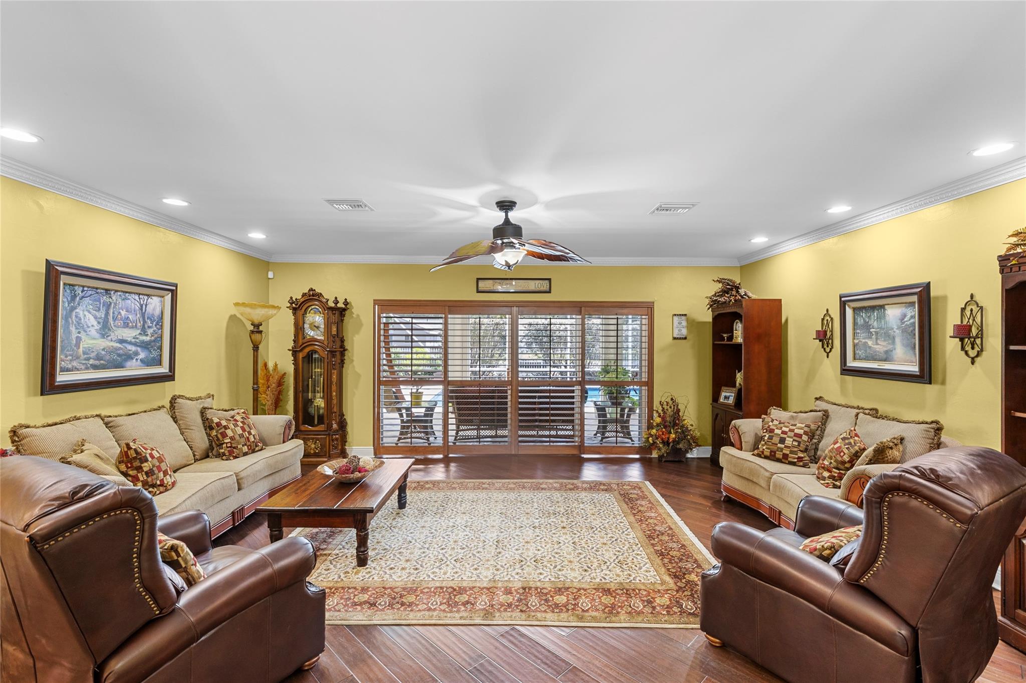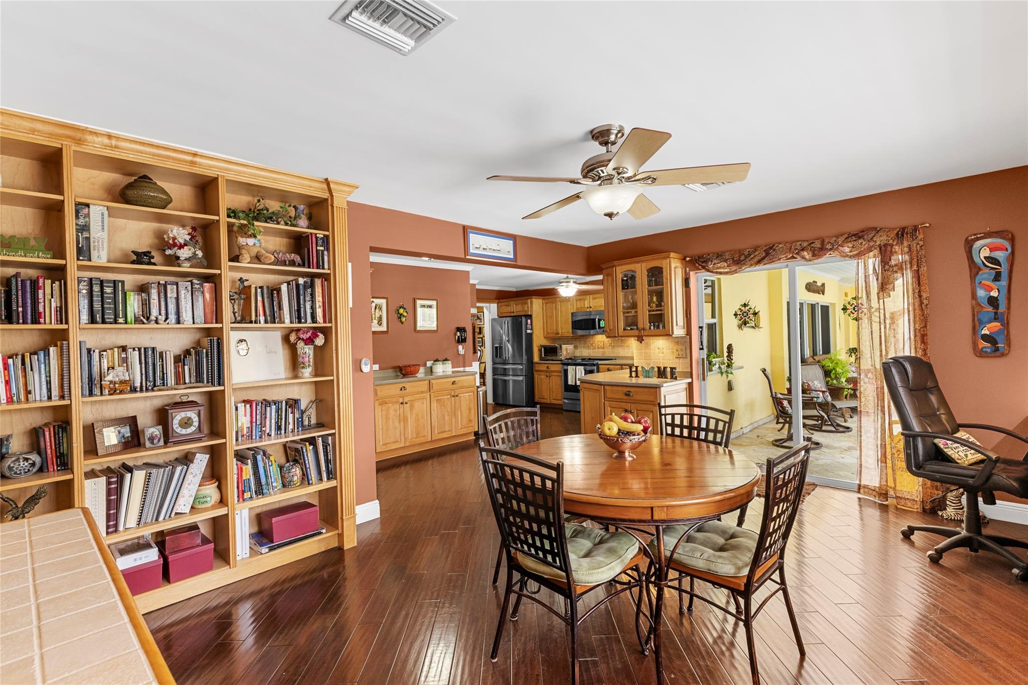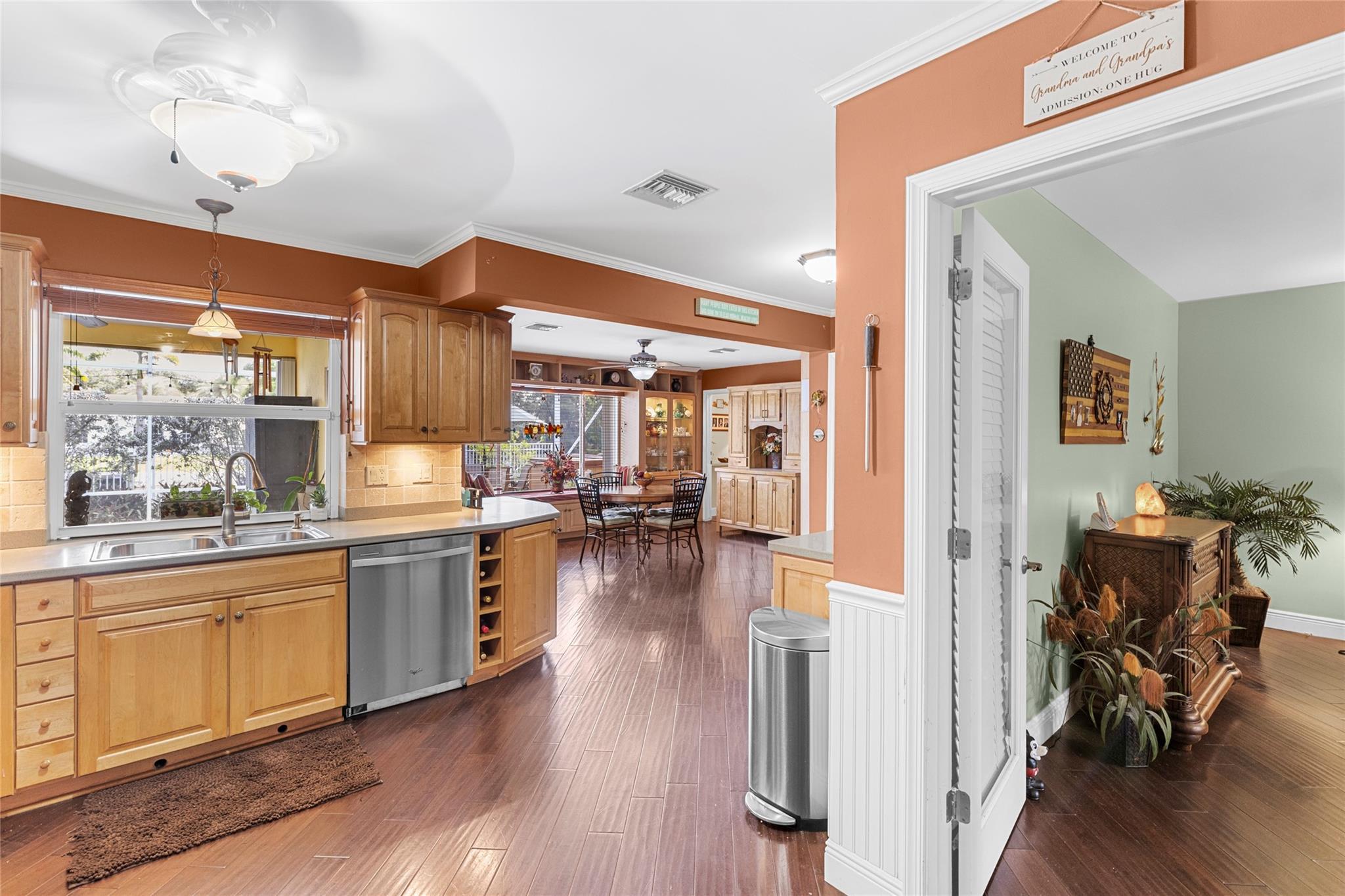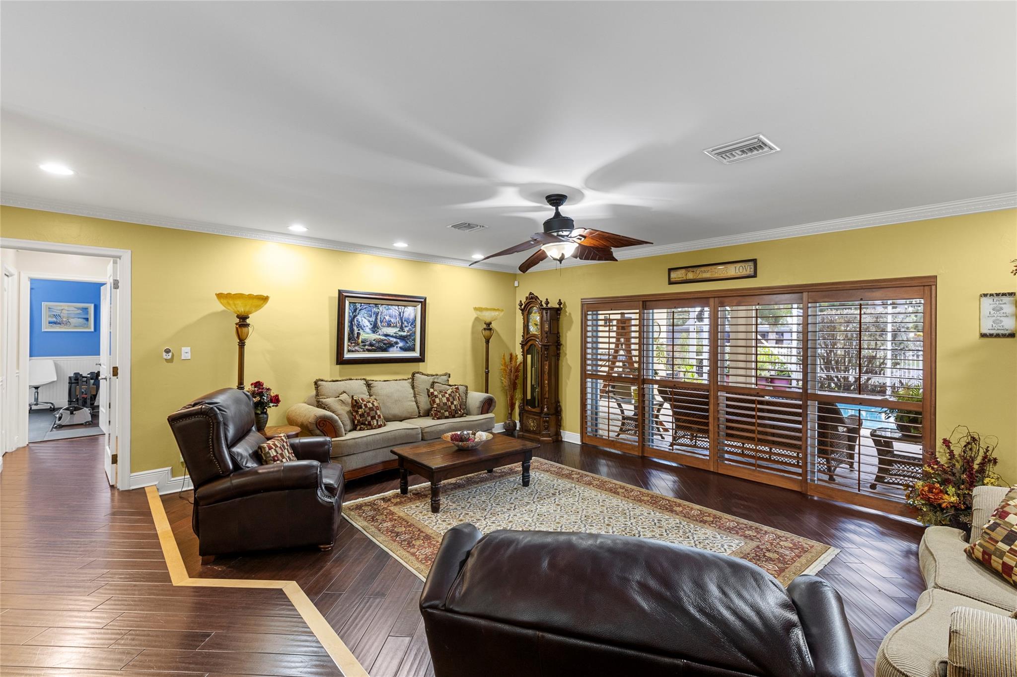 Unique Key West–style waterfront retreat in prestigious Golf Estates. Stunning 5 bedroom, 3 bath home w/Den/6th bedroom + tons of storage. Features double split layout w/2 Primary Suites. Entertain effortlessly w/large living, dining + eat in kitchen, screened salt-water pool-patio, hot tub, cabana baths, expansive covered patio, separate firepit area, + a private dock w/floating extension. Side-yard double gates allow boat/RV parking. Upgrades include metal roof, solar ELECTRIC panels, new solar hot-water heater, all-PVC plumbing, elevated seawall, motion-sensory lighting, hard-wired security cameras, 3 A/C units (includes new 5-ton main unit), canal-fed sprinkler system, septic tank, + complete hurricane protection-impact glass + shutters. Close 2 Schools, Malls, Airport, Beach, Casino+