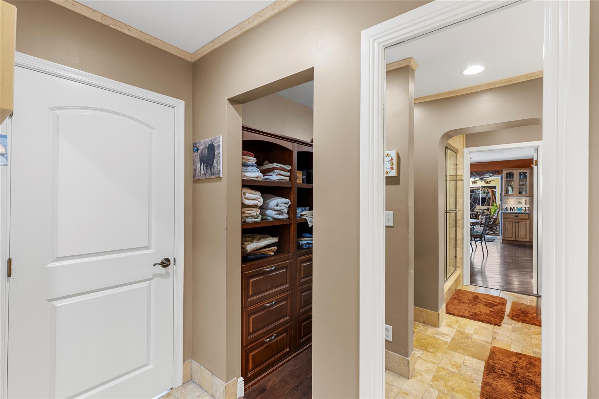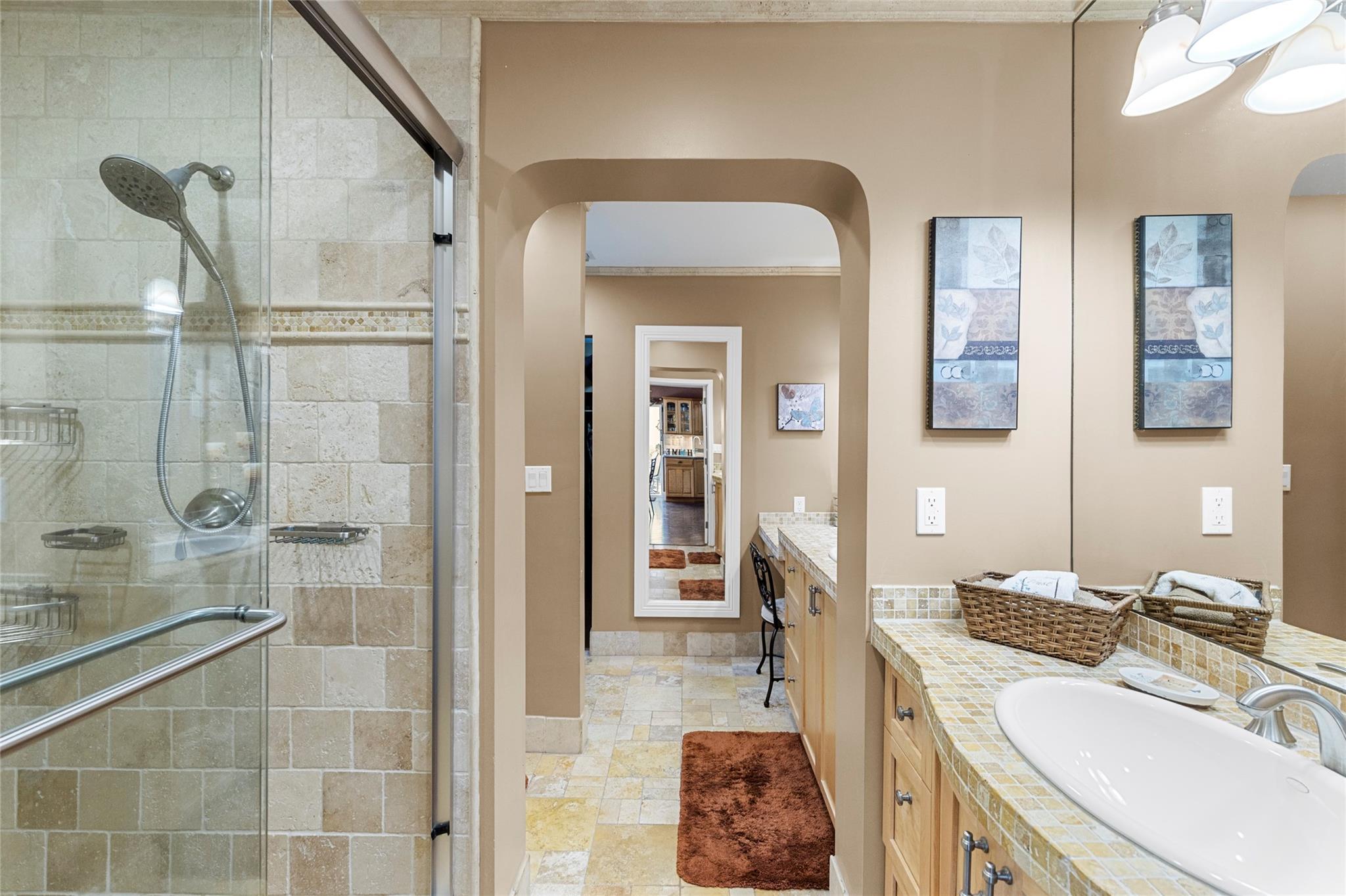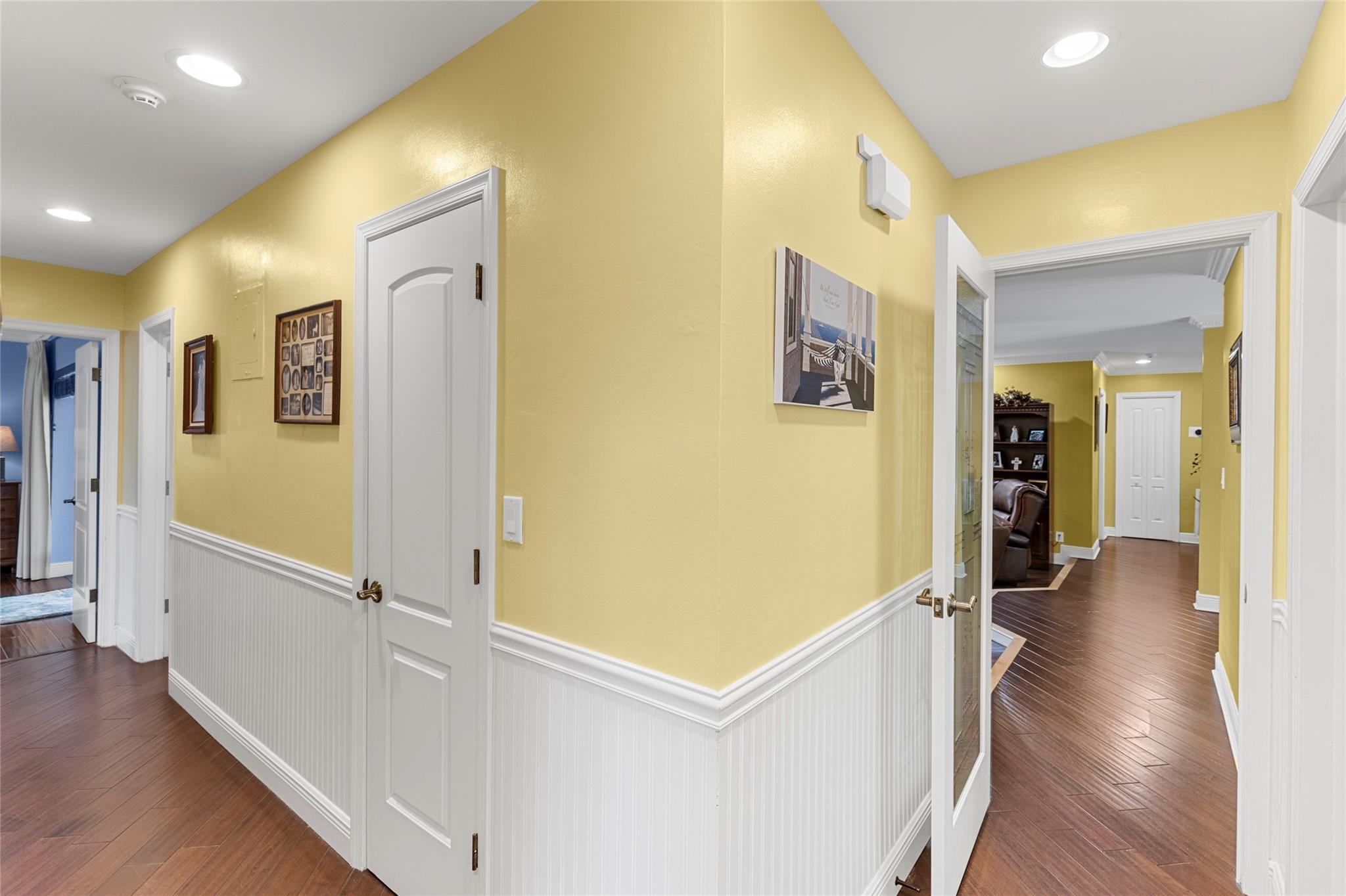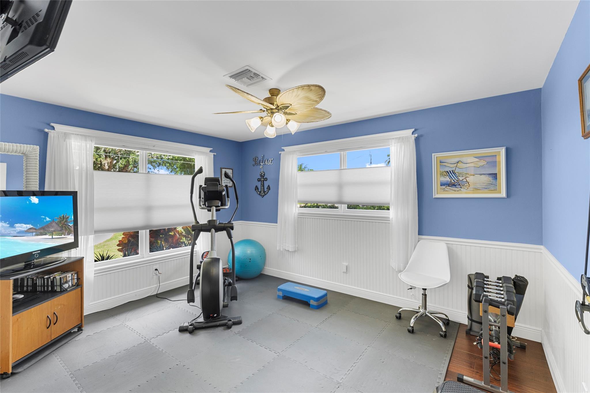 Unique Key West–style waterfront retreat in prestigious Golf Estates. Stunning 5 bedroom, 3 bath home w/Den/6th bedroom + tons of storage. Features double split layout w/2 Primary Suites. Entertain effortlessly w/large living, dining + eat in kitchen, screened salt-water pool-patio, hot tub, cabana baths, expansive covered patio, separate firepit area, + a private dock w/floating extension. Side-yard double gates allow boat/RV parking. Upgrades include metal roof, solar ELECTRIC panels, new solar hot-water heater, all-PVC plumbing, elevated seawall, motion-sensory lighting, hard-wired security cameras, 3 A/C units (includes new 5-ton main unit), canal-fed sprinkler system, septic tank, + complete hurricane protection-impact glass + shutters. Close 2 Schools, Malls, Airport, Beach, Casino+