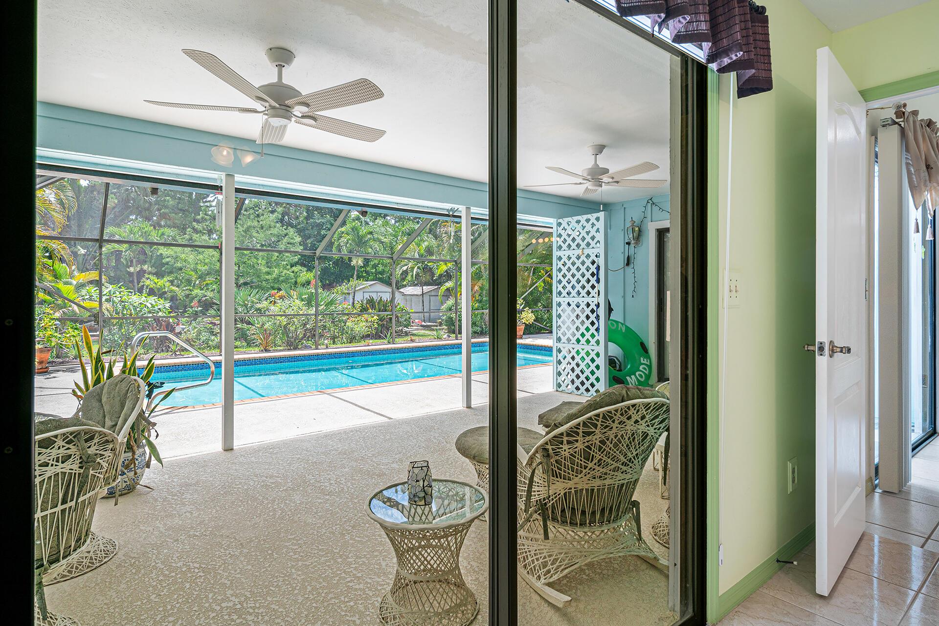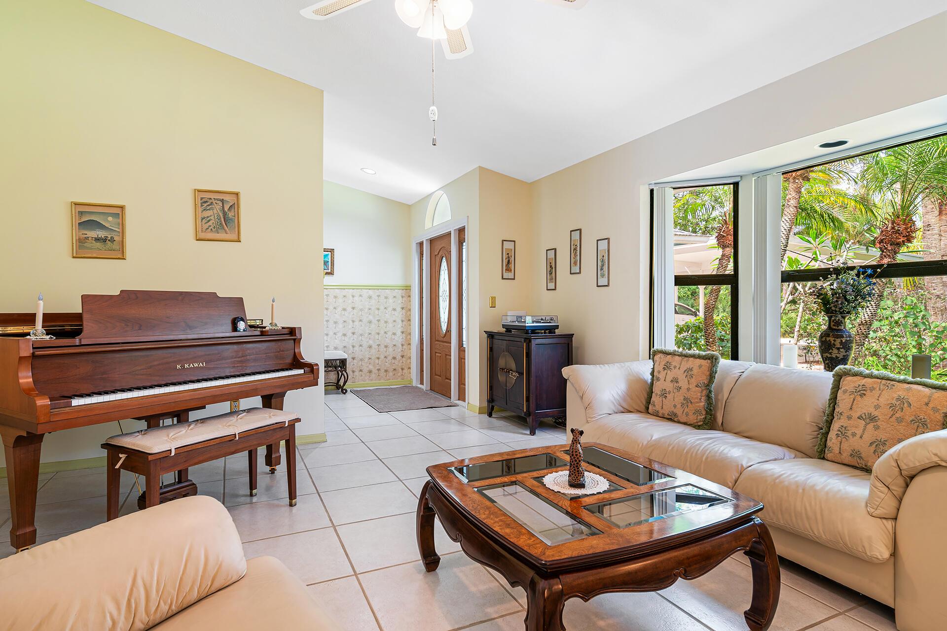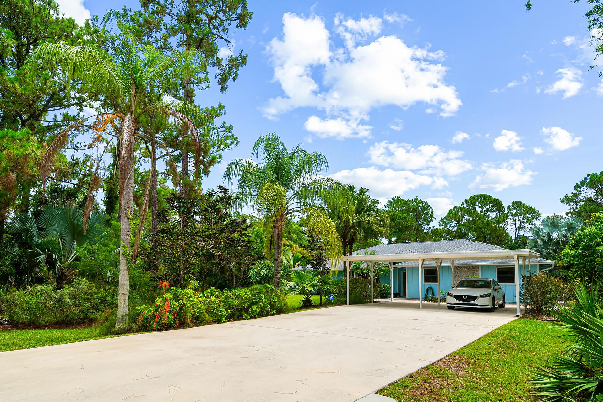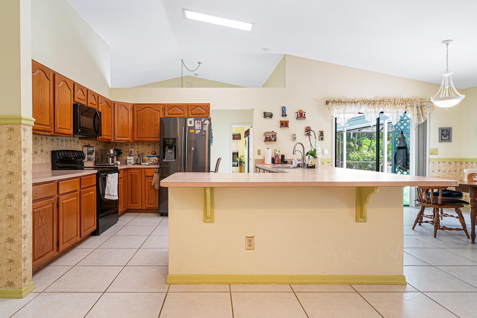 1.25 Tropical acre corner lot featuring double cement driveway holds approx 8 cars, glass sliders to covered lanai from Master Bd, Dining, Family Rm & 2nd bd, vaulted ceilings, wood burning fireplace, abundance of kitchen cabinetry & counters, oversized kitchen center island , perfect In Law arrangement with full kitchen, separate exterior entry plus door entry from main house, Possible 5th Bedroom, Screened in lanai and pool, Kitchen & Breakfast rm as well as very large family room is all open, very bright and lots of natural light, partial impact windows, maintenance free flooring thru out, bay windows in Living Room, KOI pond, in ground pool heated by solar panel and so much more!