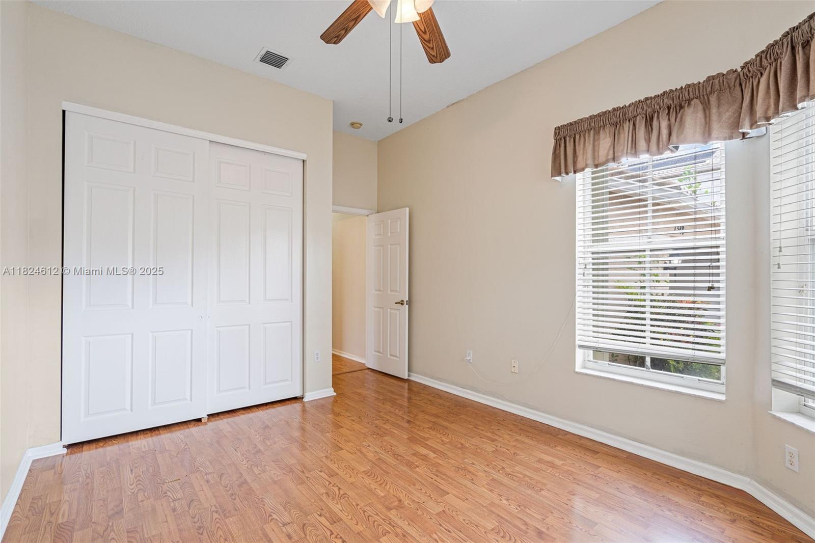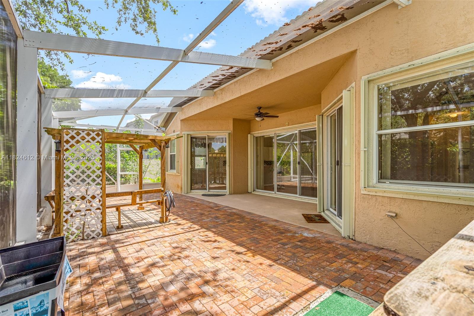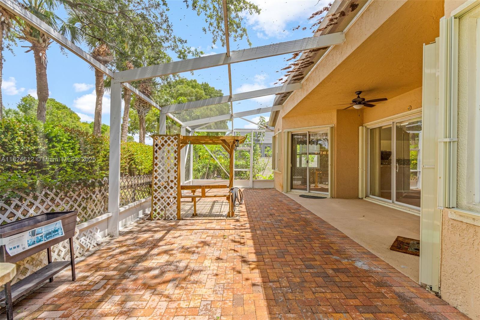 Welcome to this charming single-story home in a gated community with 24/7 security, offering privacy and peace of mind. The open floor plan includes an eat-in kitchen, a spacious primary bath with soaking tub, dual vanities, and a separate shower. Relax on the screened-in patio and enjoy the added features like accordion shutters and a two-car garage.Smith Farm offers a wealth of amenities, including a kiddie park, dog trails, and racquet courts — an ideal community for families! With a little TLC, this home has great potential to truly shine!