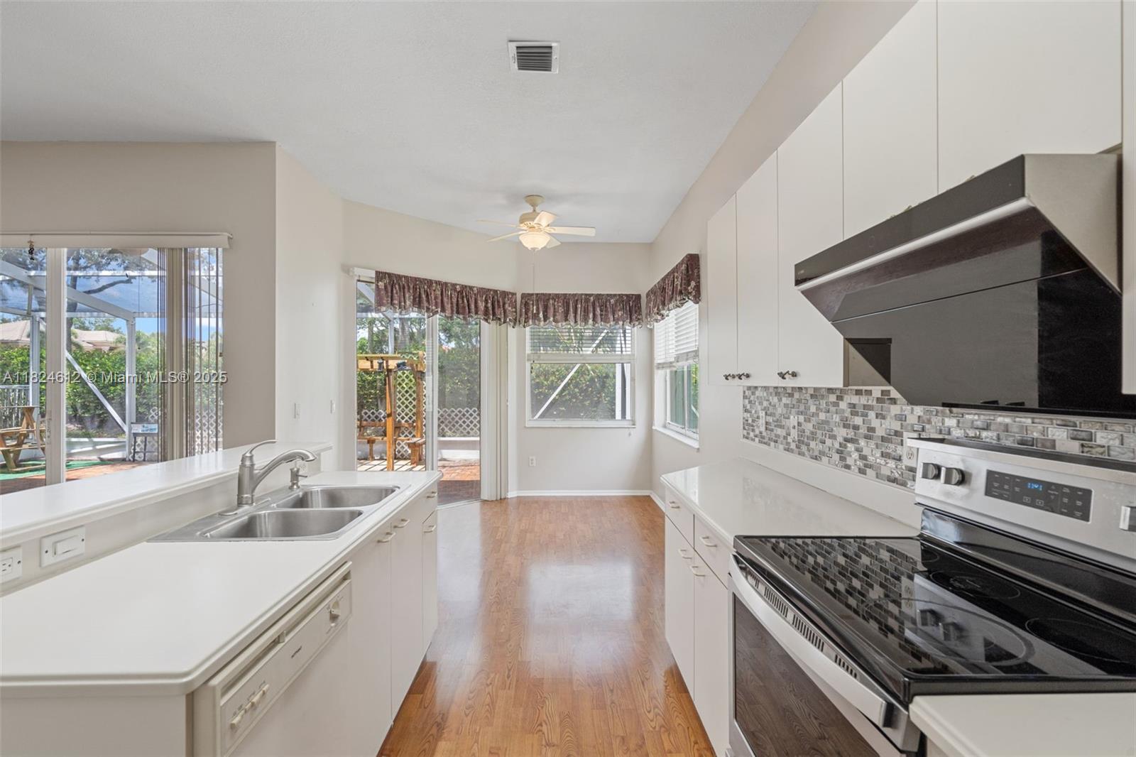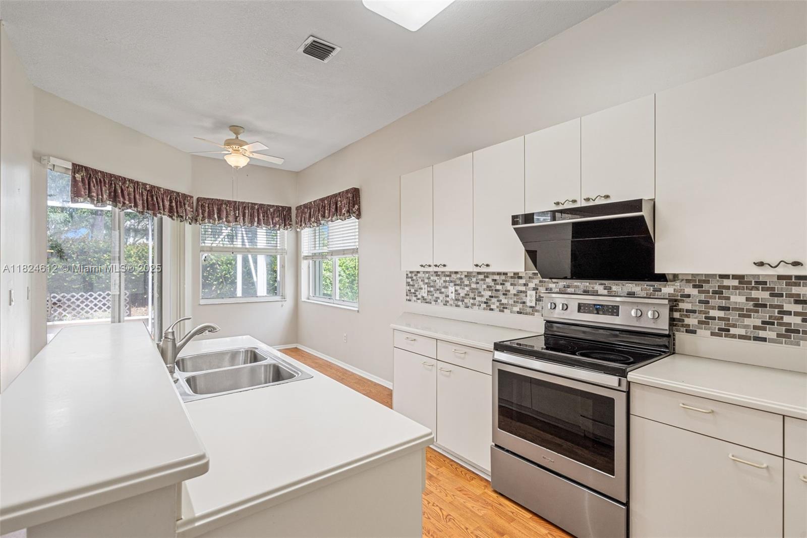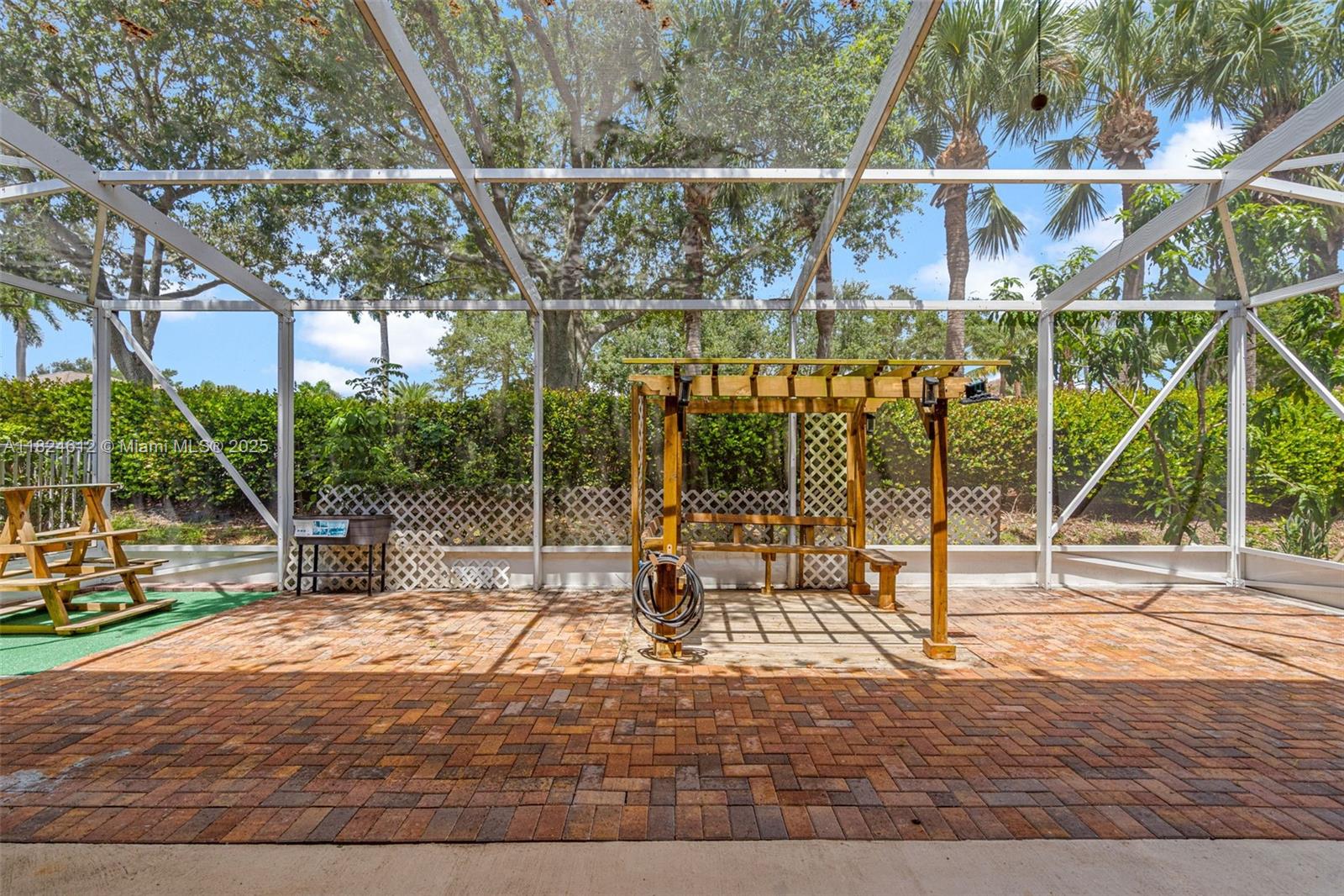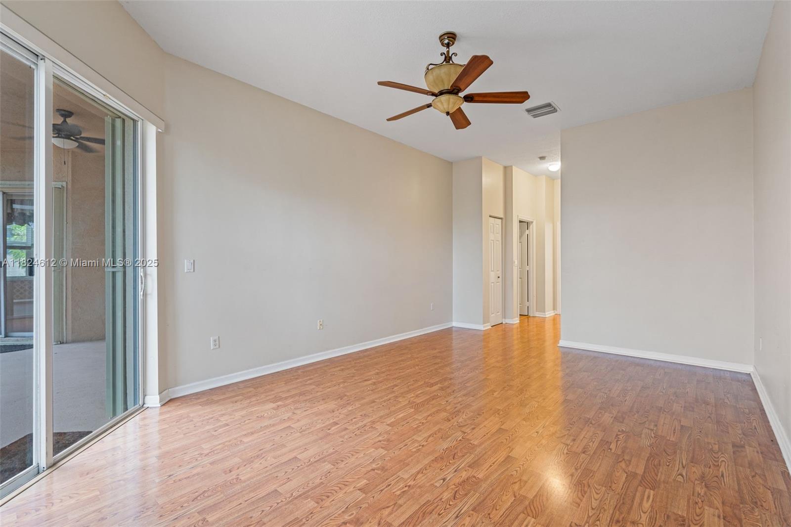 Welcome to this charming single-story home in a gated community with 24/7 security, offering privacy and peace of mind. The open floor plan includes an eat-in kitchen, a spacious primary bath with soaking tub, dual vanities, and a separate shower. Relax on the screened-in patio and enjoy the added features like accordion shutters and a two-car garage.Smith Farm offers a wealth of amenities, including a kiddie park, dog trails, and racquet courts — an ideal community for families! With a little TLC, this home has great potential to truly shine!
