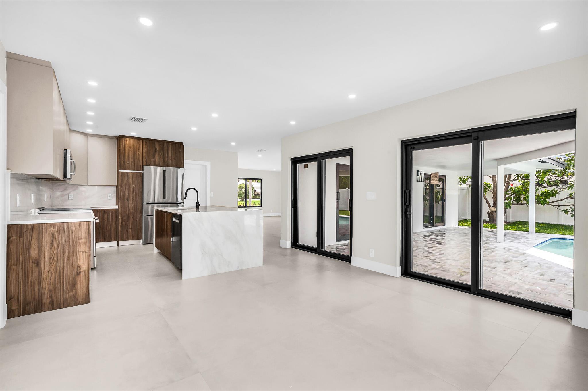 BRAND NEW and Completely Renovated, Never Lived In this stunning home in the desirable East Boca Raton community of Boca Square. This fully upgraded three bedroom, two full bathroom residence boasts 2,602 total square feet. An abundance of natural light flows through this open floor plan. The entire home has been upgraded. Brand new roof, new hurricane impact windows and doors throughout, new air conditioning with brand new AC ducts throughout, new PVC drainage (No Cast Iron), new insulated hot and cold water lines, new electrical throughout, new sod and irrigation system. Upgraded Porcelain 48X48 tile floors throughout, brand new Italian kitchen cabinetry with new Bosch kitchen appliances and match booked marble stone countertops with a large kitchen island with waterfall edge. All