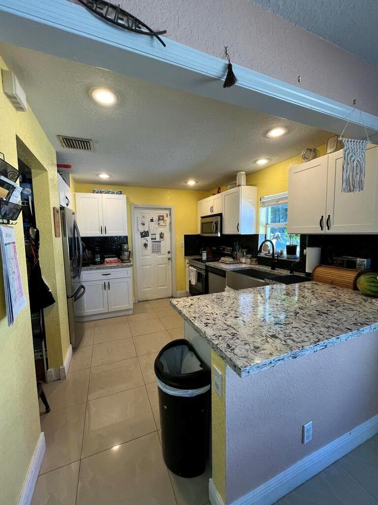 Step into this beautifully upgraded home where style, function, and peace of mind come together. The heart of the home a fully remodeled kitchen (2022) boasts sleek quartz countertops, a chic farmhouse sink, and modern finishes that will wow any chef. Enjoy ultimate privacy with a brand-new vinyl fence (2023) surrounding the spacious yard. Live sustainably with solar panels (2020), a tankless water heater (2022), and a high-efficiency A/C system (2020), all designed to keep utility bills low and comfort high. A whole-house water filtration system (2021) ensures clean, fresh water in every room. Plus, hurricane shutters, security cameras, and a full home alarm system offer added safety and peace of mind.Don't miss this move-in ready gem schedule your private tour today.