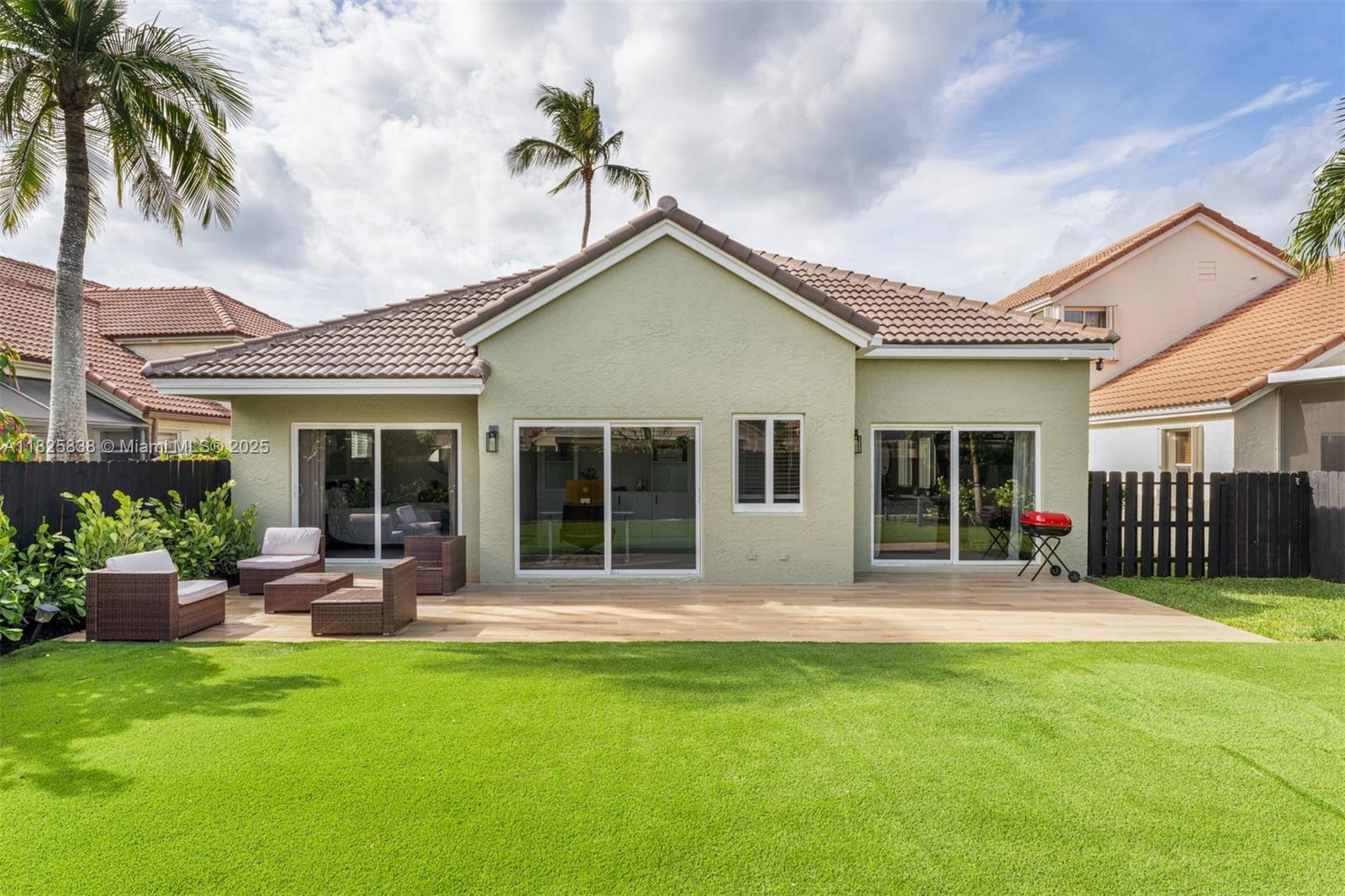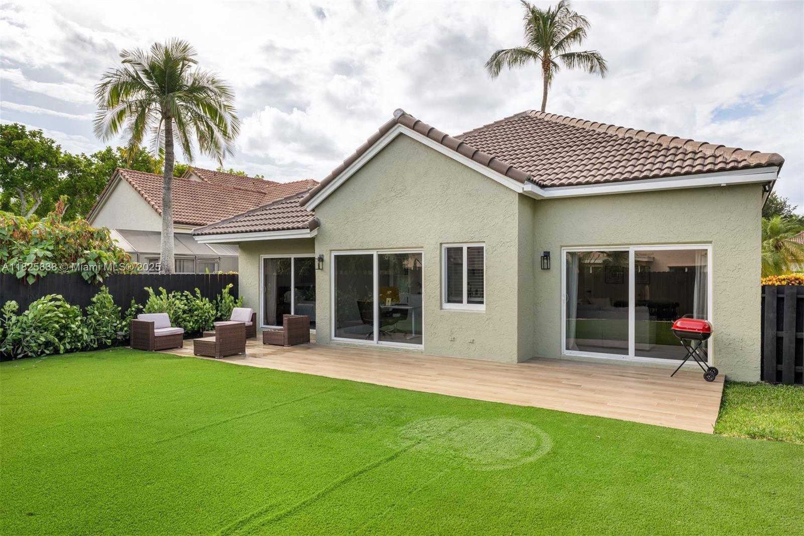 True move-in-ready 4/2 gem in sought after Forest Ridge that's blends nature, luxury & lifestyle. Elegant 40x40 porcelain tile flooring throughout, impact rated windows and doors and new barrel tile roof for peace of mind. AC is only 2 years old along with the pipes that were replaced to pvc. Open concept layout showcases designer kitchen with grey subway tiles, porcelain slab & black SS appliances. Sleek bar/coffee station and an office with custom cabinetry overlooking beautiful low maintenance turf backyard. Built in closets in bedrooms. Extra room in the garage with a mini split. One story with no stairs to navigate, ideal for families, retirees or anyone seeking easy living. Residents enjoy tennis, pickleball, basketball, pools and trail leading to Tree Top Park. Rare opportunity.