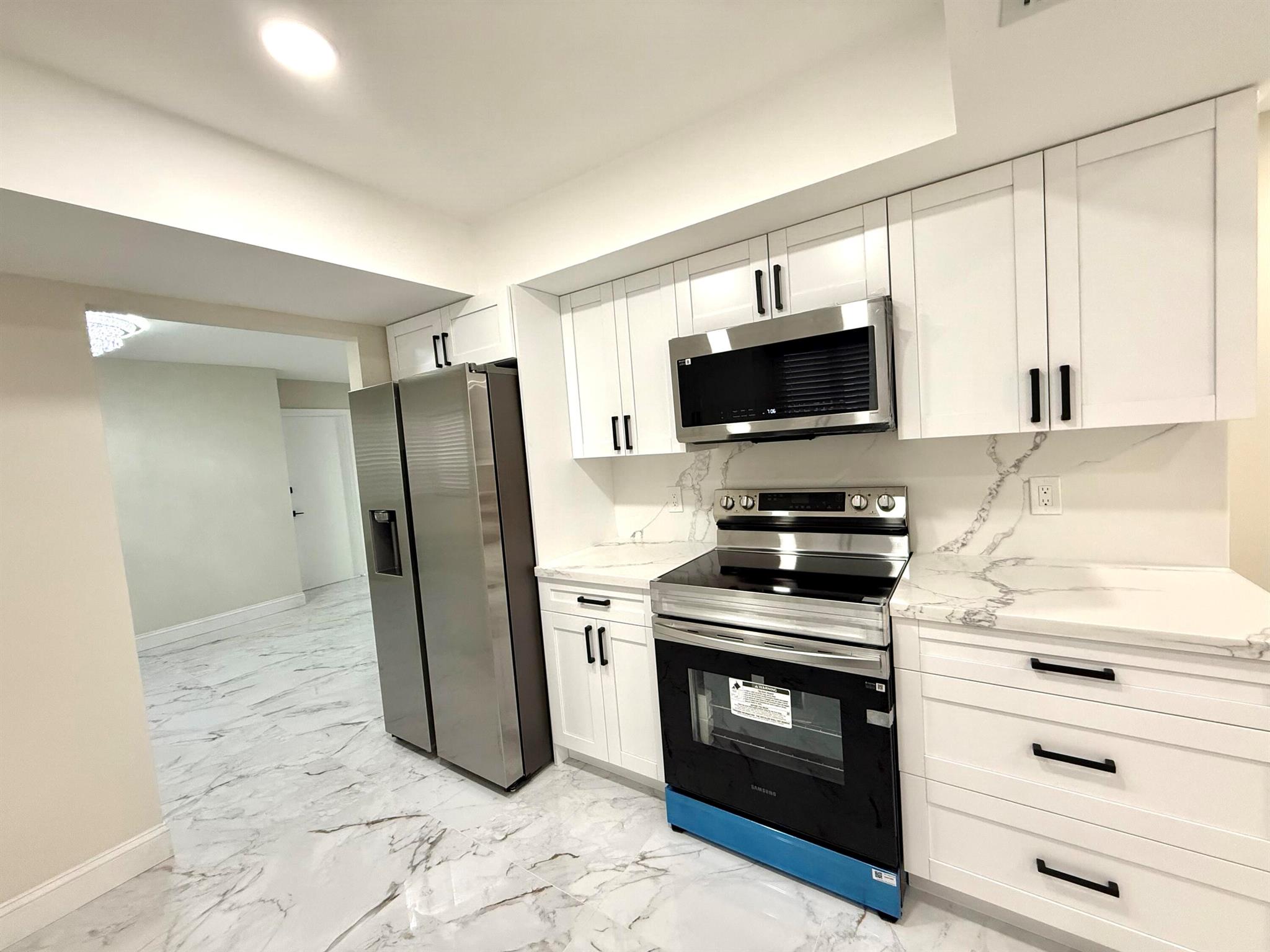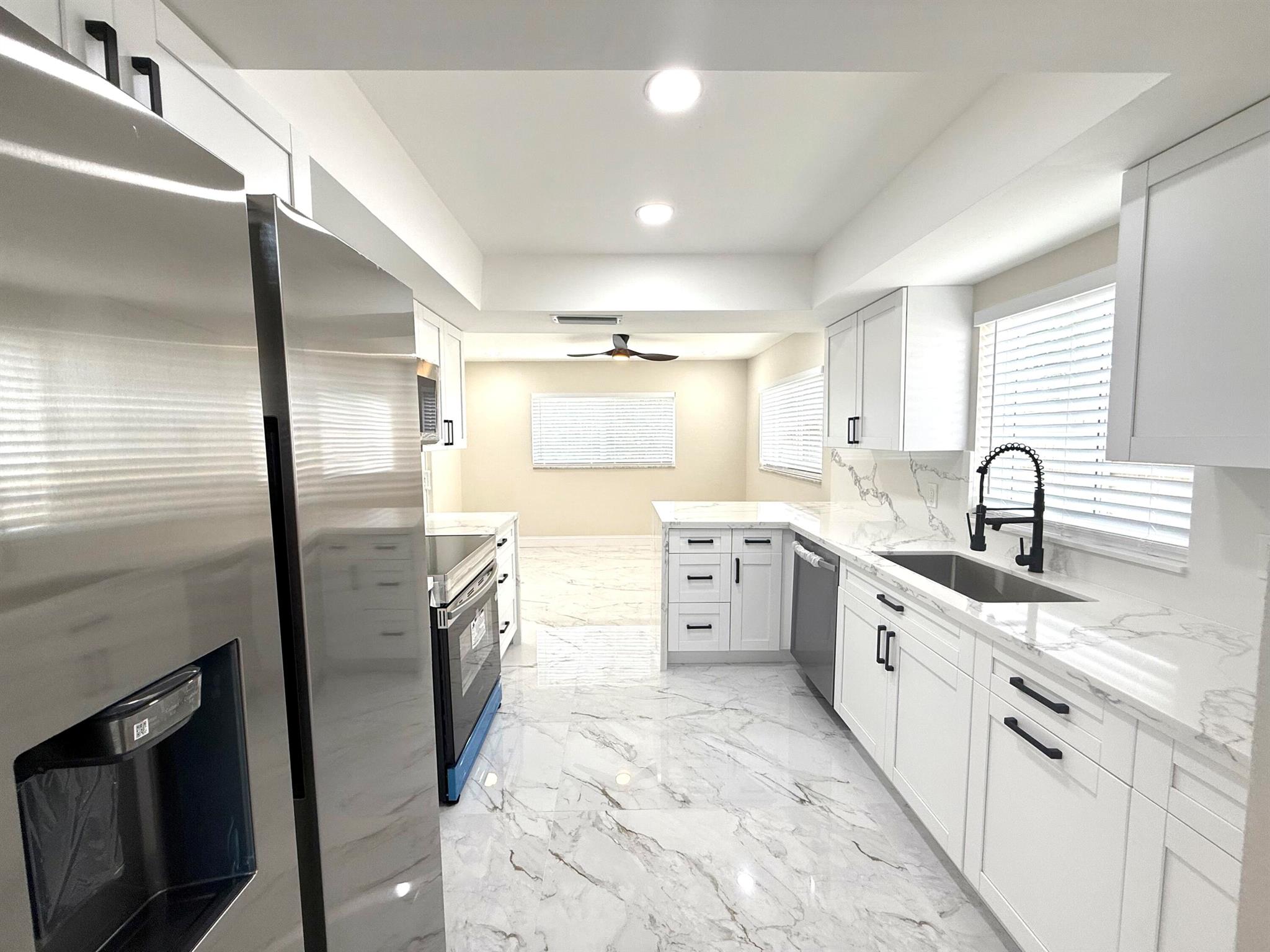 Completely renovated 3-bedroom, 2-bath modern home featuring numerous upgrades, including a new A/C, impact windows and doors throughout, stylish new light fixtures, premium porcelain tile and waterproof vinyl flooring, fresh interior and exterior paint, Samsung appliances, and quartz countertops. Roof replaced in 2022. Oversized driveway provides ample parking. Located in an A-rated school zone, conveniently close to shopping, dining, and entertainment. No HOA fees.