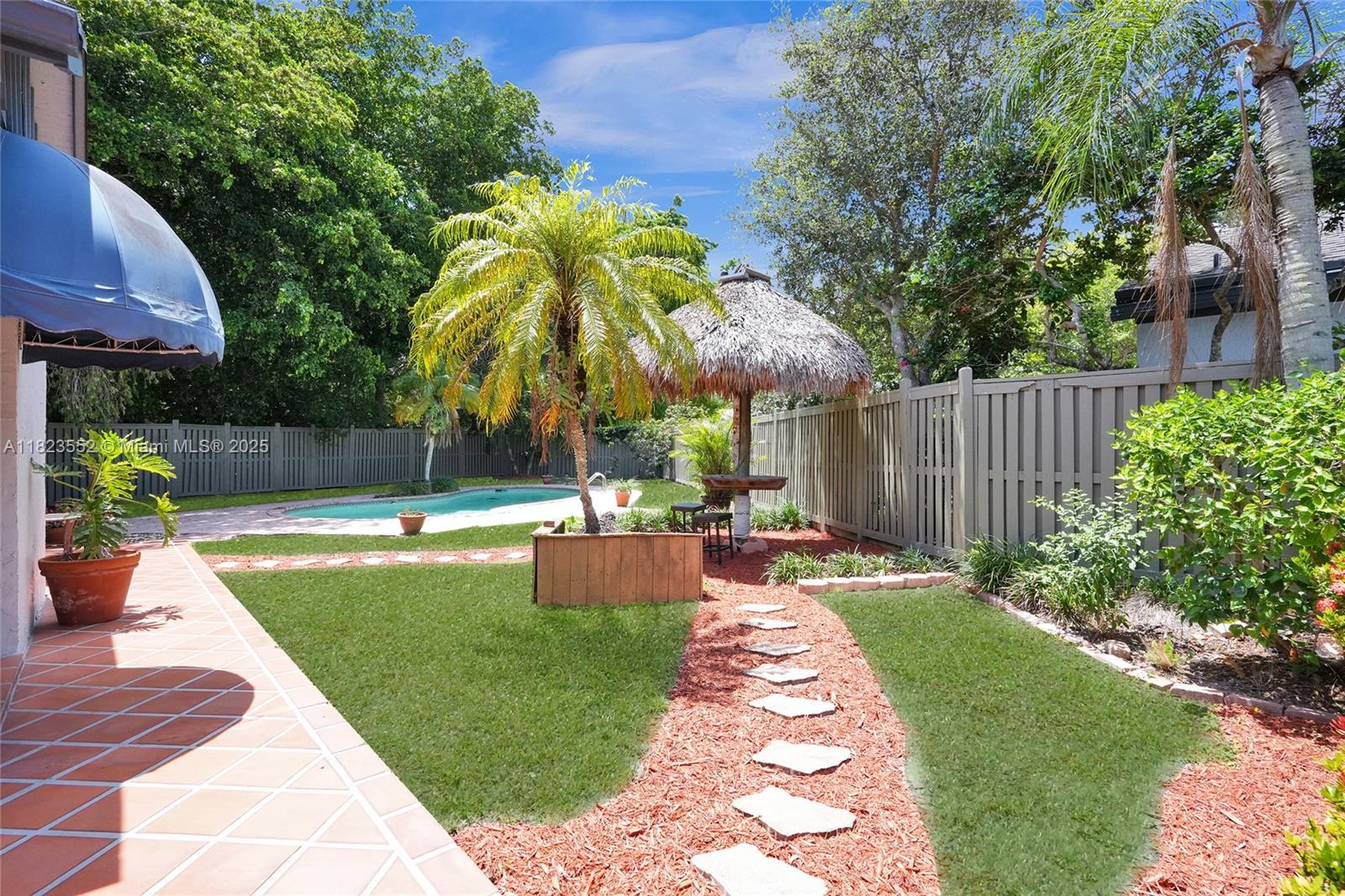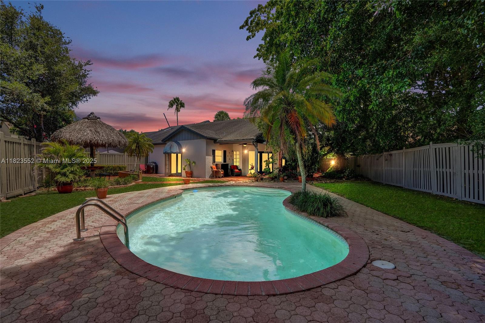 In the Mews - Parkland Schools, parks, amenities - for this price? One of subdivision's largest lots and one of its' few homes w/ a pool! Swing on the huge front porch to be a part of the neighborhood or retreat to the spectacular private, fenced backyard w/ stunning landscaping, free form pool, Tiki hut and porches! Step into a bright, large living / dining area w/ soaring ceilings and a fireplace embraced w/ natural wood! Nice sized kitchen w/ French doors! Primary bdrm opens to a big porch, skylight, and good sized bath w/ big walk in shower! Inside laundry + a 2 car garage! A 5 minute walk takes you to a quaint group of shops, outdoor dining, and parks/ with boardwalk and bike trails. Walk to top rated Riverglades Elem. In very good condition "as is", but needs some updating!
