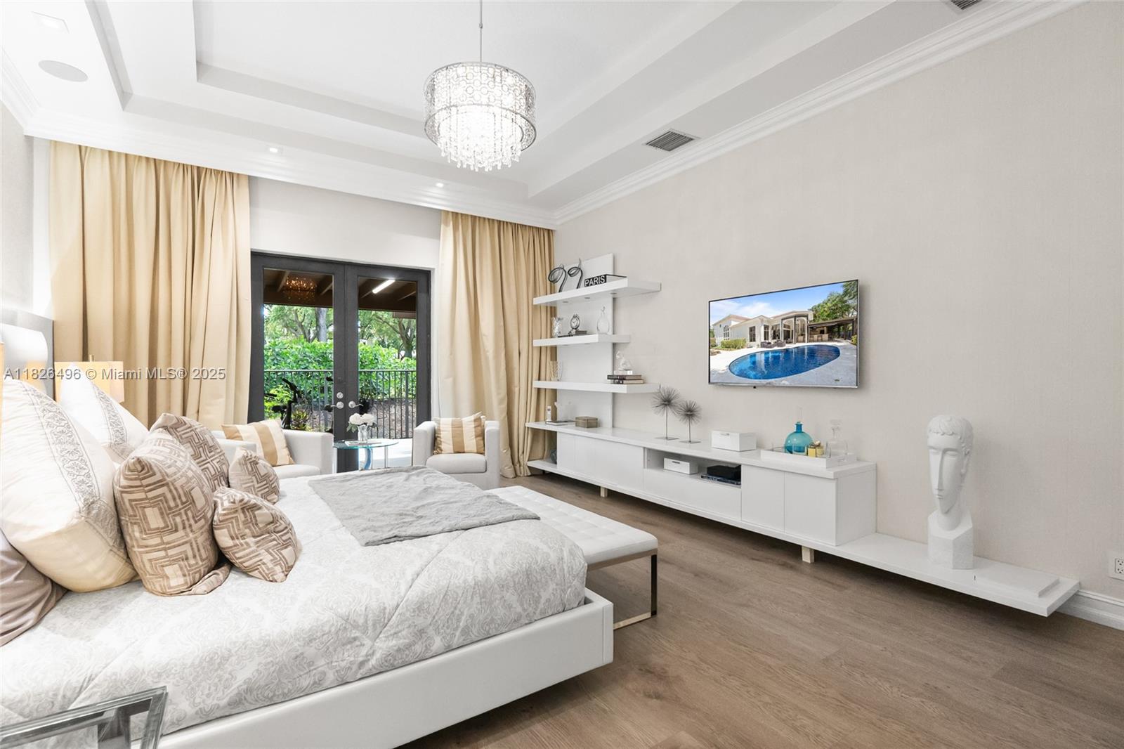 Welcome to this elegant 5 bedrooms, 4 bathroom with 1 half bath and an office, beautiful home, located in the delightful well kept gated community of The Oaks At Boca Raton. This expansive residence blends timeless elegance with modern comfort, showcasing an open-concept layout, soaring ceilings, and upscale finishes throughout. The kitchen features premium stainless appliances, granite countertops and a generous island perfect for entertaining. The spacious family room flows effortlessly to the oversized automated screen covered patio, where you enjoy a peaceful view of the blue water of the pool and garden offering a true backyard escape. The luxurious primary suite offers a tray ceilings, dual walk-in closets, and a spa-like bathroom with double vanities and an oversized walk-in shower.