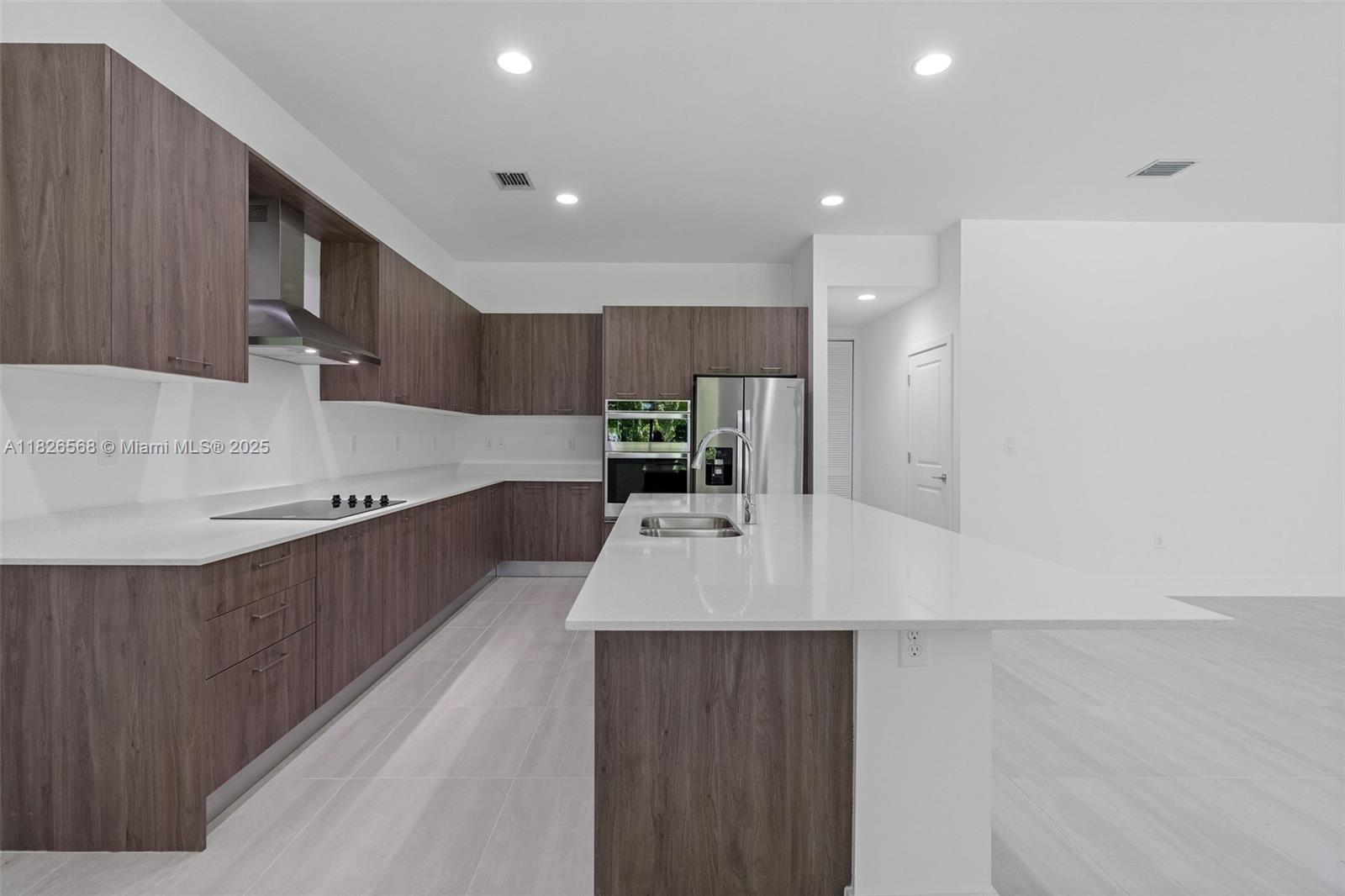 Never lived in new construction home featuring 4 spacious bedrooms, a versatile den, and 3.5 bathrooms—thoughtfully designed to impress while blending comfort and functionality throughout. The modern kitchen features sleek finishes and opens easily into the living and dining areas, perfect for entertaining and everyday life. Sitting on just under a 10,000 Sq ft lot, the home is filled with natural light from expansive impact windows and offers an airy, open layout throughout. The primary suite is a true retreat with ample space, a large walk-in closet, and a luxurious en-suite bathroom with dual vanities and a glass-enclosed shower. Centrally located near shops and grocery stores, this is a rare opportunity to own a brand new, never lived in home in a prime location.