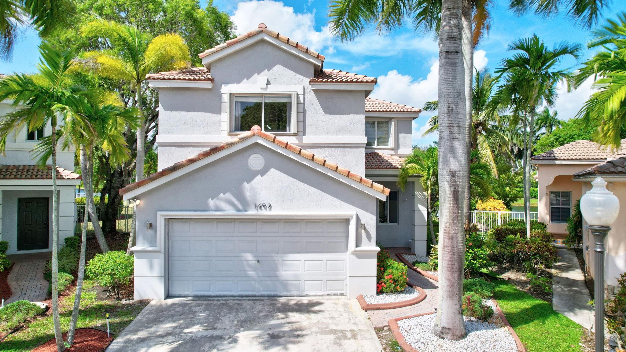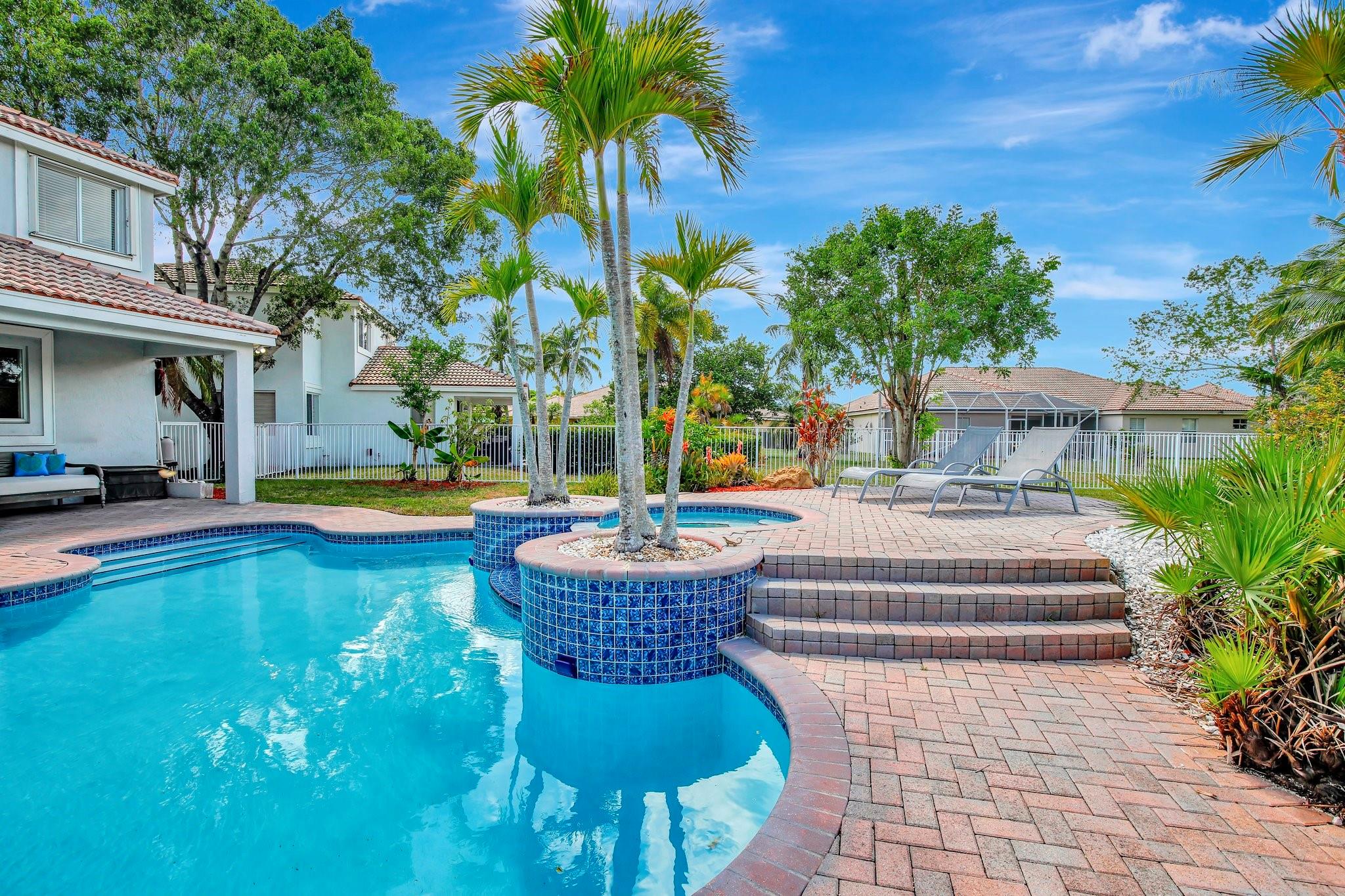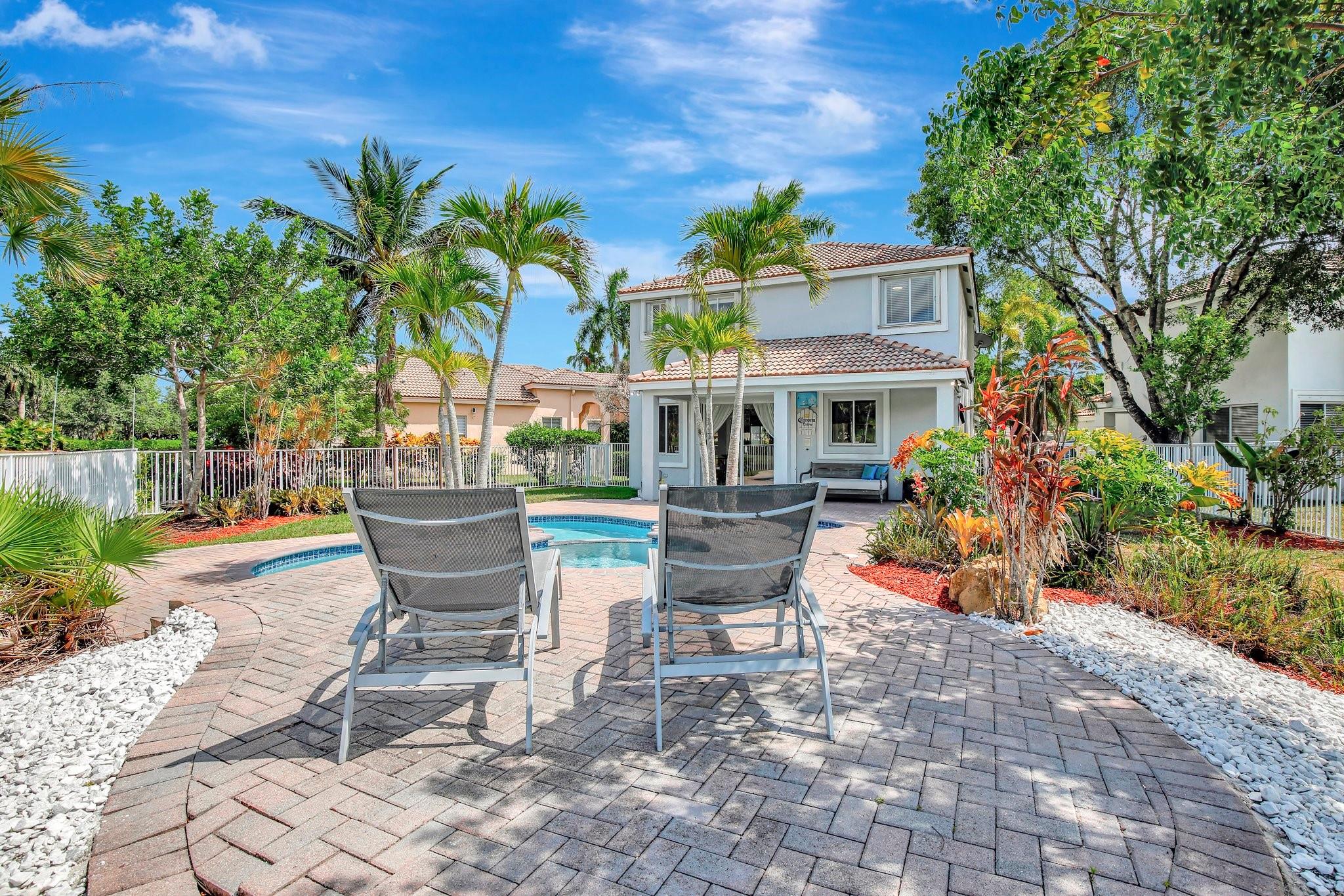 Former model home on model row! Amazing 4BD/3.5BA/2CG on a spectacular 10,648 sq ft huge fully fenced lakefront lot with stunning show-stopper pool with raised spa deck! Situated on a wide greenbelt cul-de-sac, centered by a charming tot-lot. Discover the ultimate backyard escape with an expansive garden, large covered paved patio & peaceful, private lake views. All incredibly generous sized bedrooms are upstairs, (one perfect as "mini master" w/ ensuite bathroom), all with walk-in closets! The kitchen features granite countertops, stainless appliances, wood cabinetry & pantry w/ample organized storage. Tile downstairs, wood laminate upstairs, LED lighting. Trendy touches throughout! Fabulous resort clubhouse down the road with amazing amenities, all covered by HOA. A+ school up the road!