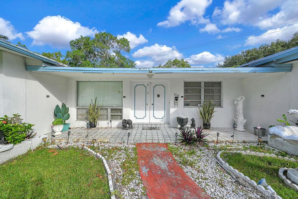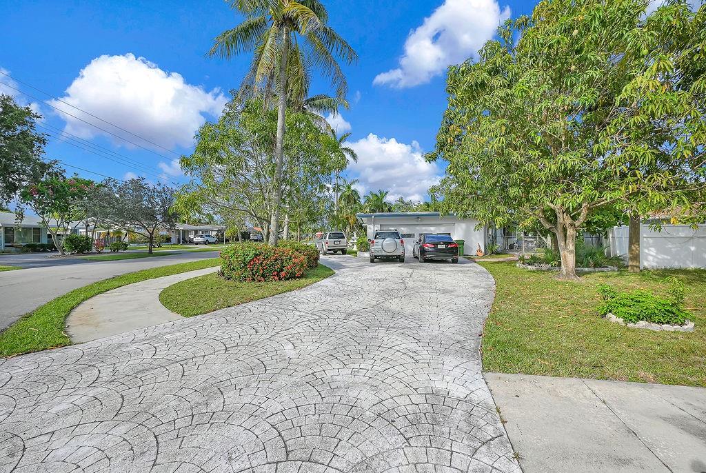 Dream Home Potential in Wilton Manors Westside. This spacious 3-bedroom, 2-bathroom home sits on a generous 9,264 sq ft partial corner lot and offers 2,057 sq ft of living space—plenty of room to customize and expand. A circle driveway leads to a large garage with ample parking. Inside, you'll find tile throughout, a newer A/C, and a large laundry/utility room. The screened-in covered patio overlooks mature mango trees and tropical palms, creating a serene outdoor retreat. With solid bones and great space, it’s ready for your personal touch. With its prime Westside location, this property presents an unparalleled opportunity to reimagine and transform into your dream home.
