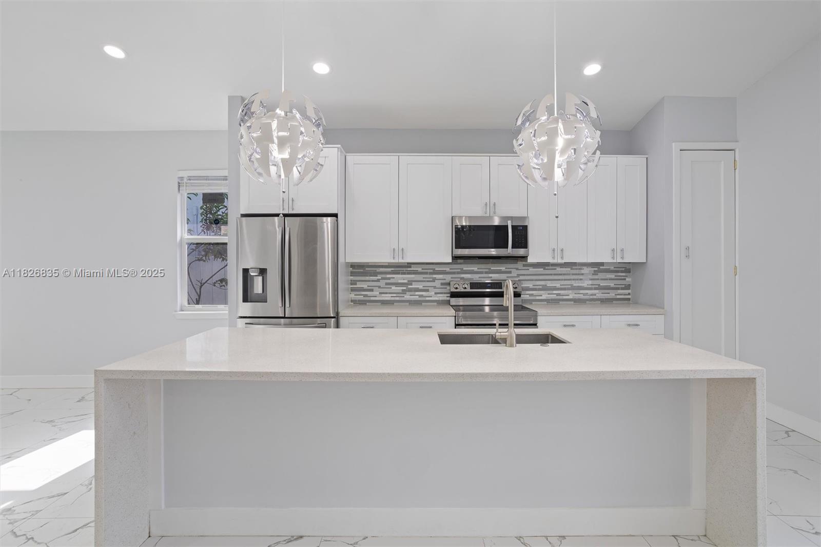Welcome to this beautifully built 2022 home in the heart of West Palm Beach! Featuring four spacious bedrooms and two modern bathrooms, this residence offers a bright, open-concept layout that is perfect for today’s lifestyle. The kitchen is a chef’s dream, featuring quartz countertops, sleek cabinetry, and a large island that's ideal for entertaining. The primary suite includes a luxurious double-sink vanity and ample space for relaxation. Enjoy the peace of mind that comes with new construction, featuring modern finishes throughout. Conveniently located near schools, shopping, and downtown WPB.