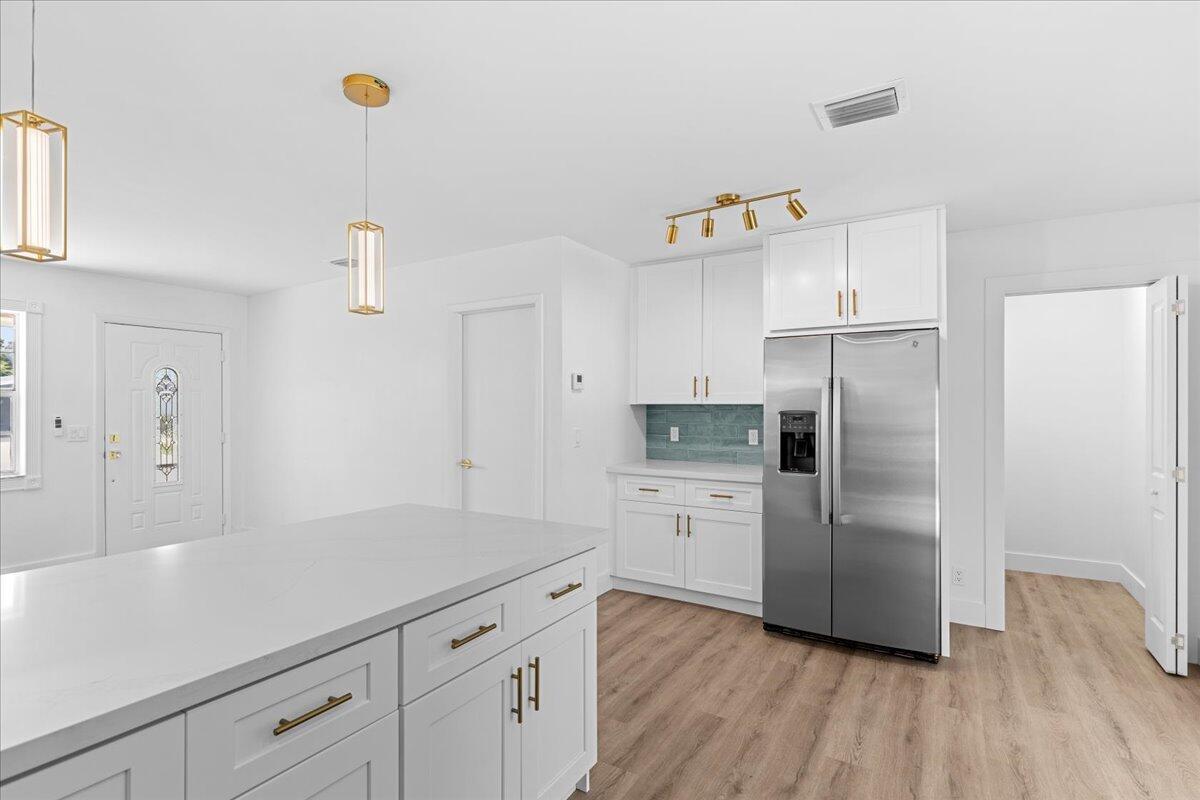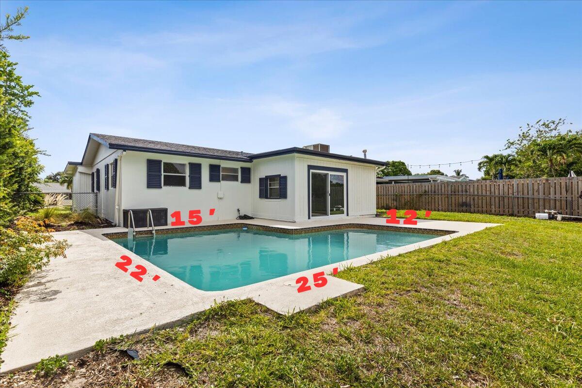 Welcome to this fully renovated 3-bedroom, 2-bathroom waterfront pool home in the heart of Palm Beach Gardens with no HOA. This home has been thoughtfully updated from top to bottom in 2025, featuring new electrical panel and rewiring, NEW AC, NEW tankless water heater, NEW washer and dryer. NEW ROOF is in process of being completed. You'll fall in love with the bright and airy new layout including recessed lighting, luxury vinyl plank flooring, and interior/exterior paint. The open concept kitchen includes all new SS appliances, with ample storage and eat in counter space! The master suite has a beautiful bathroom with a double floating vanity along with brushed gold finishes which continue through out the 2nd bathroom....