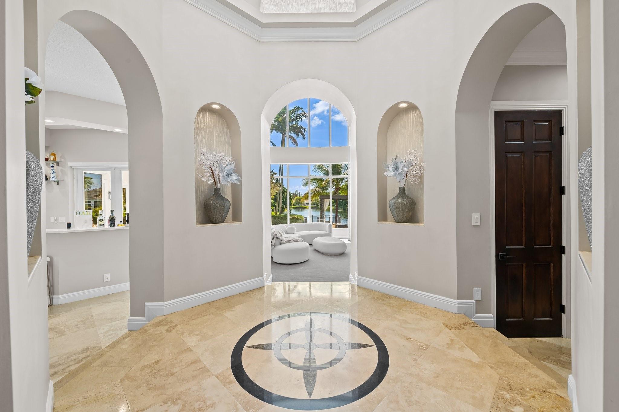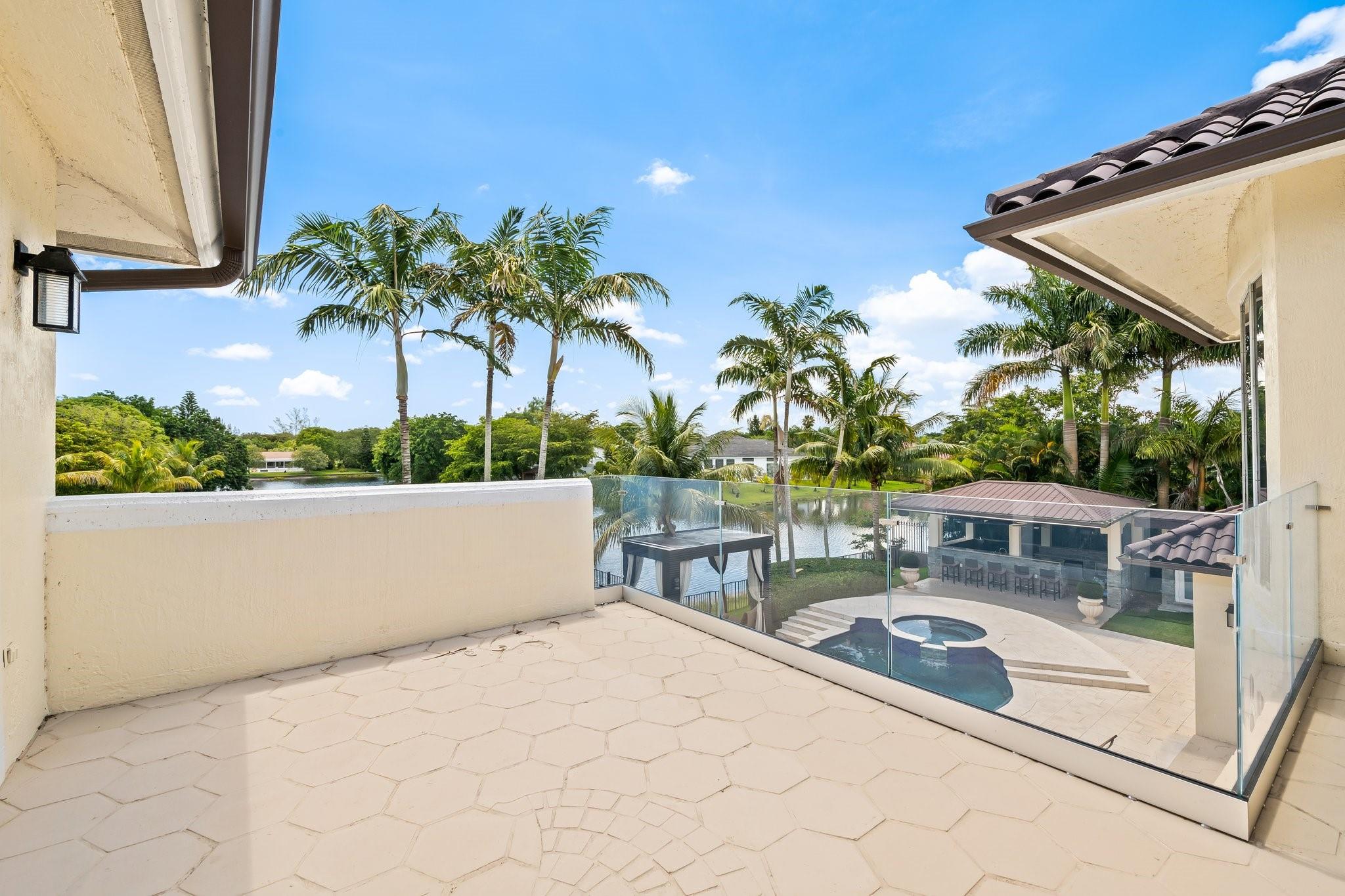 Fully renovated in 2022, this custom luxury residence blends timeless elegance with modern comfort. Set on a serene lake, it features a newly redone pool and a lush backyard with a covered patio—ideal for relaxing or entertaining. Inside, the designer-decorated interior includes impact windows, a gourmet kitchen with new high-end appliances, and marble floors throughout. Custom built-ins and French doors offer seamless indoor-outdoor living. The layout features 5 bedrooms on the main floor, while the expansive upstairs primary suite offers a private balcony and attached den. A crystal chandelier highlights the grand foyer with refined style. Additional features include an automatic generator, new roof, and upscale finishes throughout—crafted for the most discerning buyer.