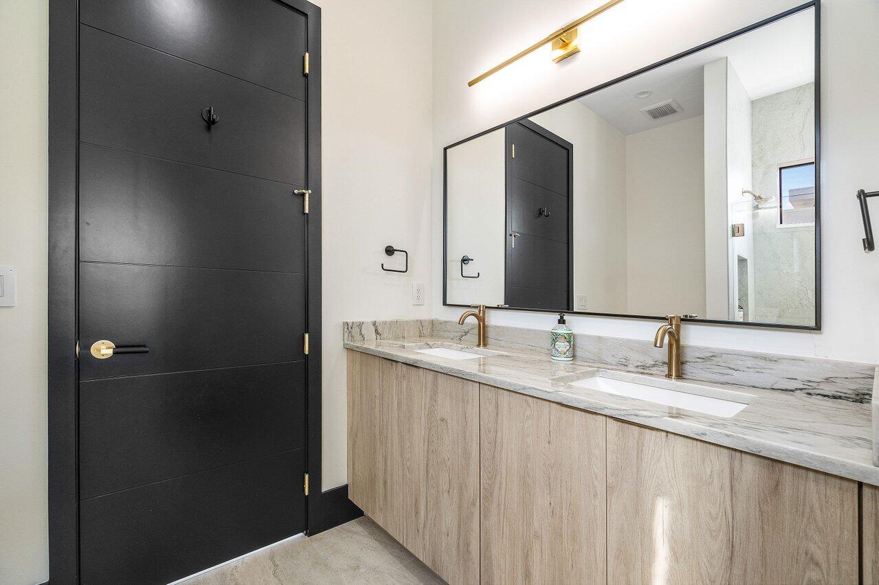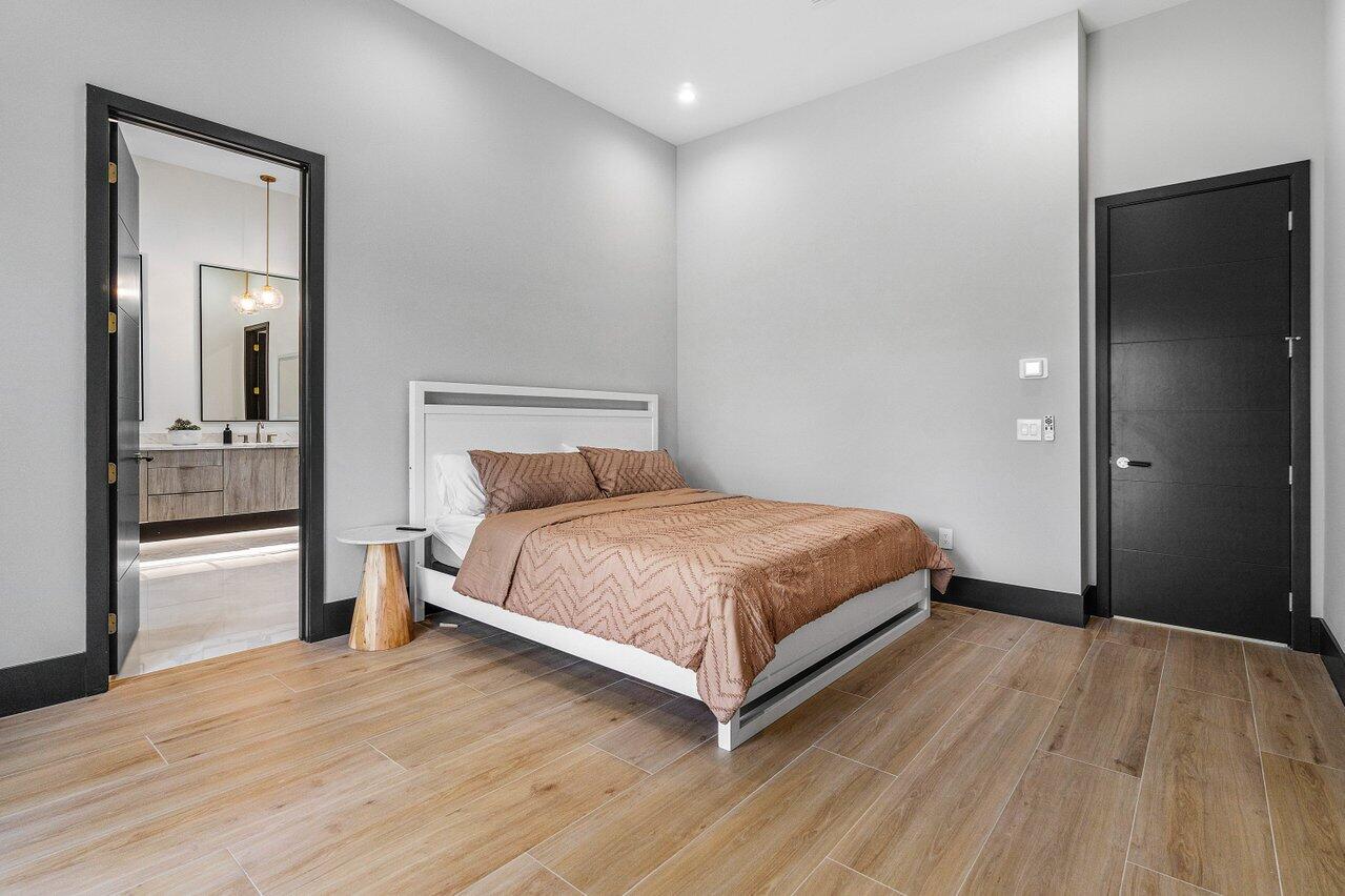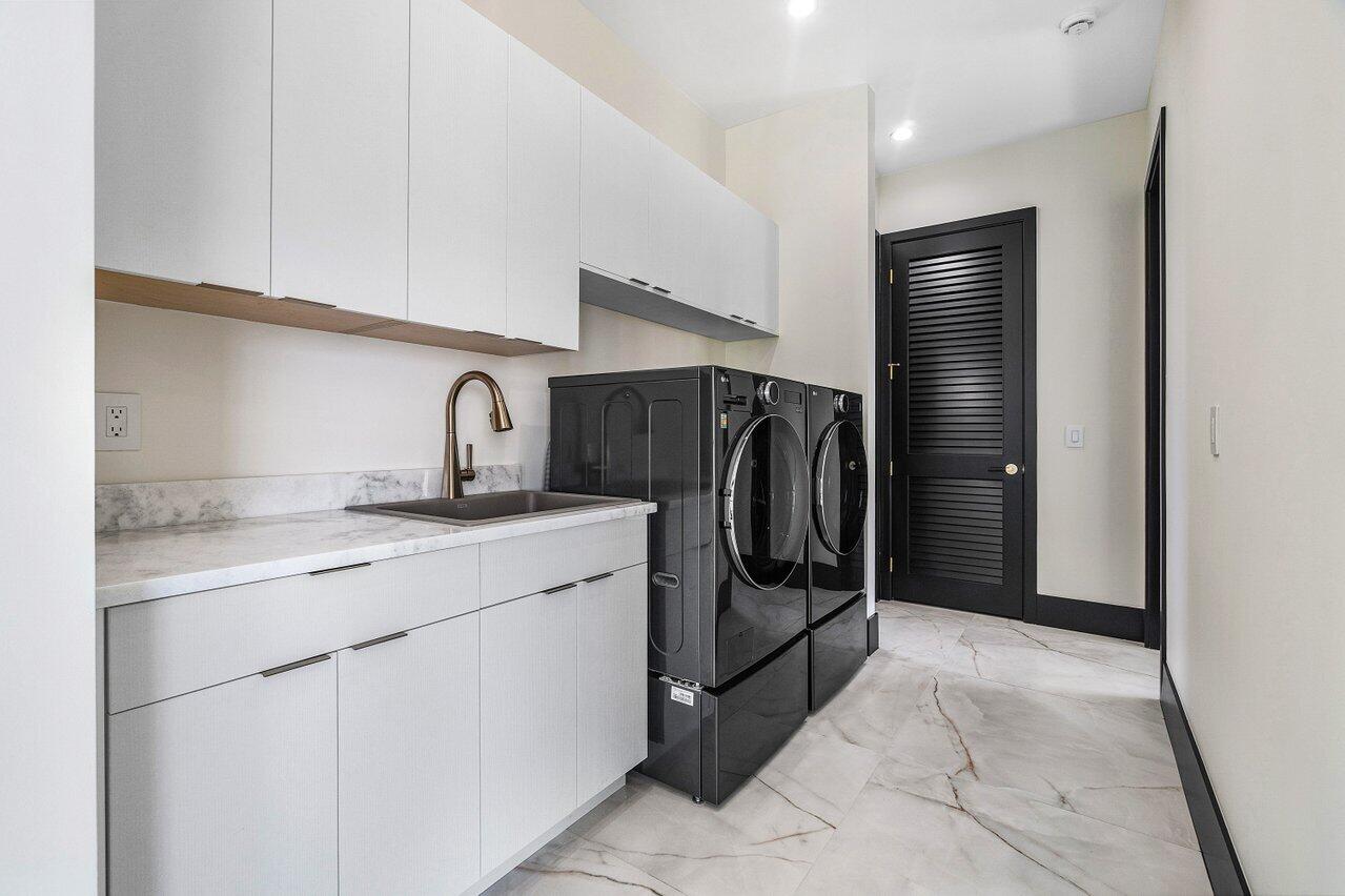 Your new lifestyle will exceed your expectations in this eloquently designed contemporary beach estate. Its offerings include; a grand gated entry with plenty of parking for friends and family, and 3 garage spaces with plenty of height to add lifts for more luxury car space. Upon entry of the oversized double custom doors you will be greeted with 25 foot ceilings boasting ample natural light, and highlighted by custom floating staircase and modern yet elegant fixtures. The north side of the estate features a meticulously designed custom kitchen with 12 foot ceilings, highest quality appliances and fixtures, thoughtfully designed to provide you with ease for entertainment and indoor outdoor Florida living. The south end of the main level includes an inviting in-law suite