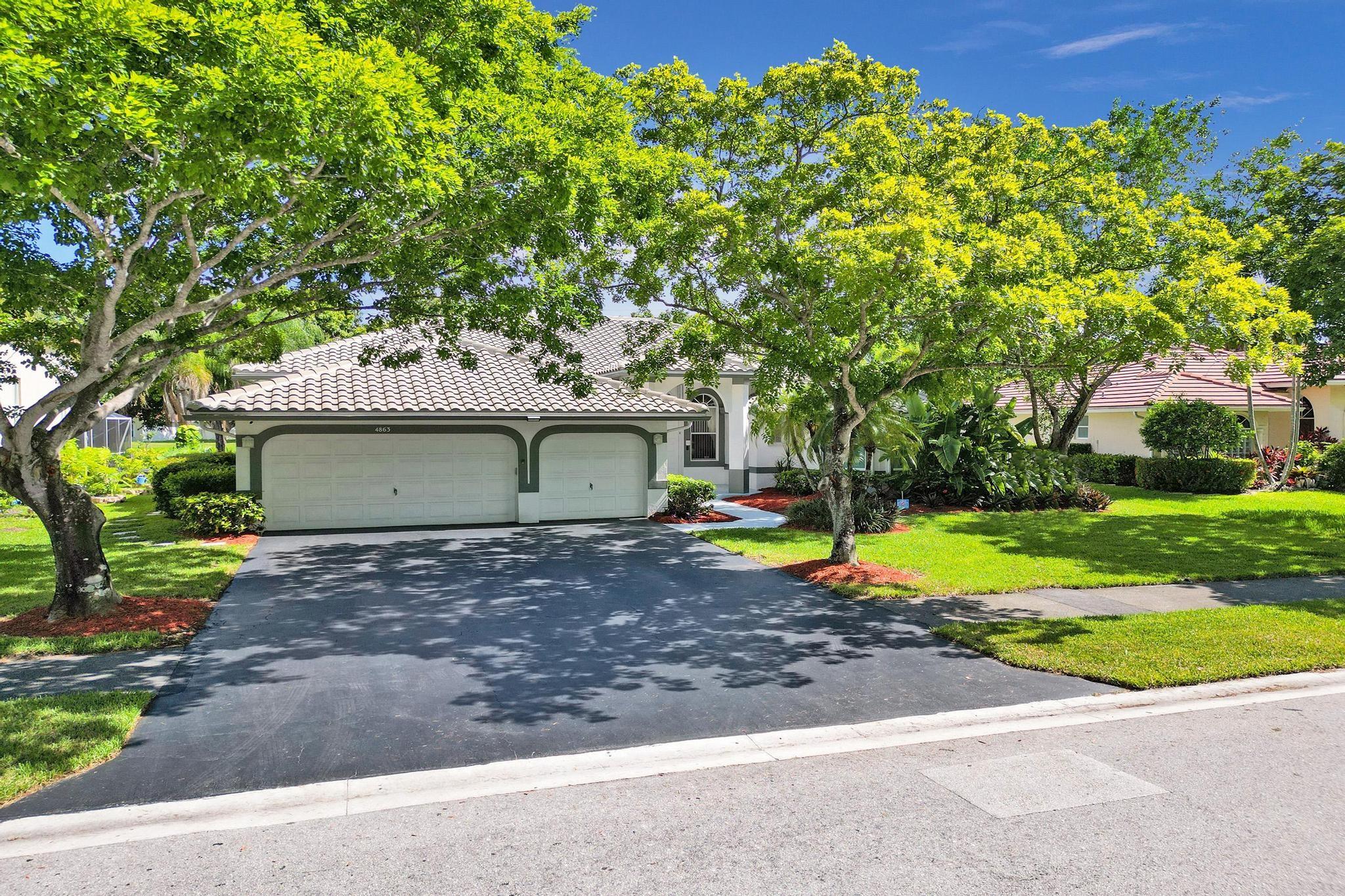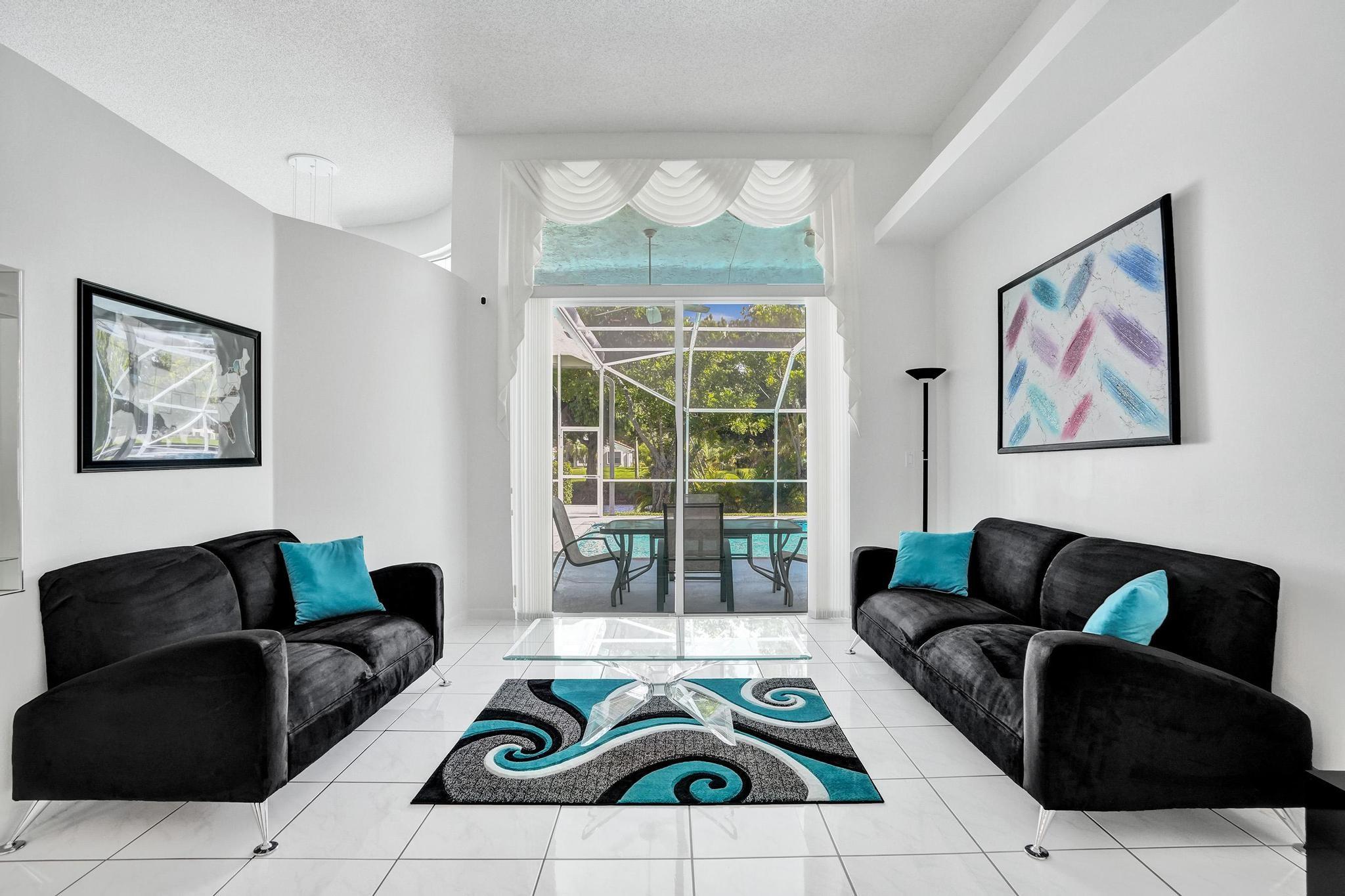 Pristine 6 Bedroom 4 Full Bathrooms Waterfront Pool home in Kensington Glen. Featuring a Spacious Split Floor Plan with 12' Ceilings and Tons of Natural Light, Eat-In Kitchen Overlooking Sparkling Resurfaced Pool, Waterfall, and Lake. Closets Galore including Primary Bedroom with 2 Large Walk-In Closets. Luxury Updated Primary Bath with Dual Shower Heads. Exterior Includes New Roof 2020, Dual AC Units, 3 Car Garage, Accordion Hurricane Shutters, Security System, Double Door Entry, Baby Safety Fence, Lush Landscaping, Screened in Patio/Pool, Generator Electrical Hookup. Impeccably Maintained. A Rated Schools, Close to Shopping, Low HOA