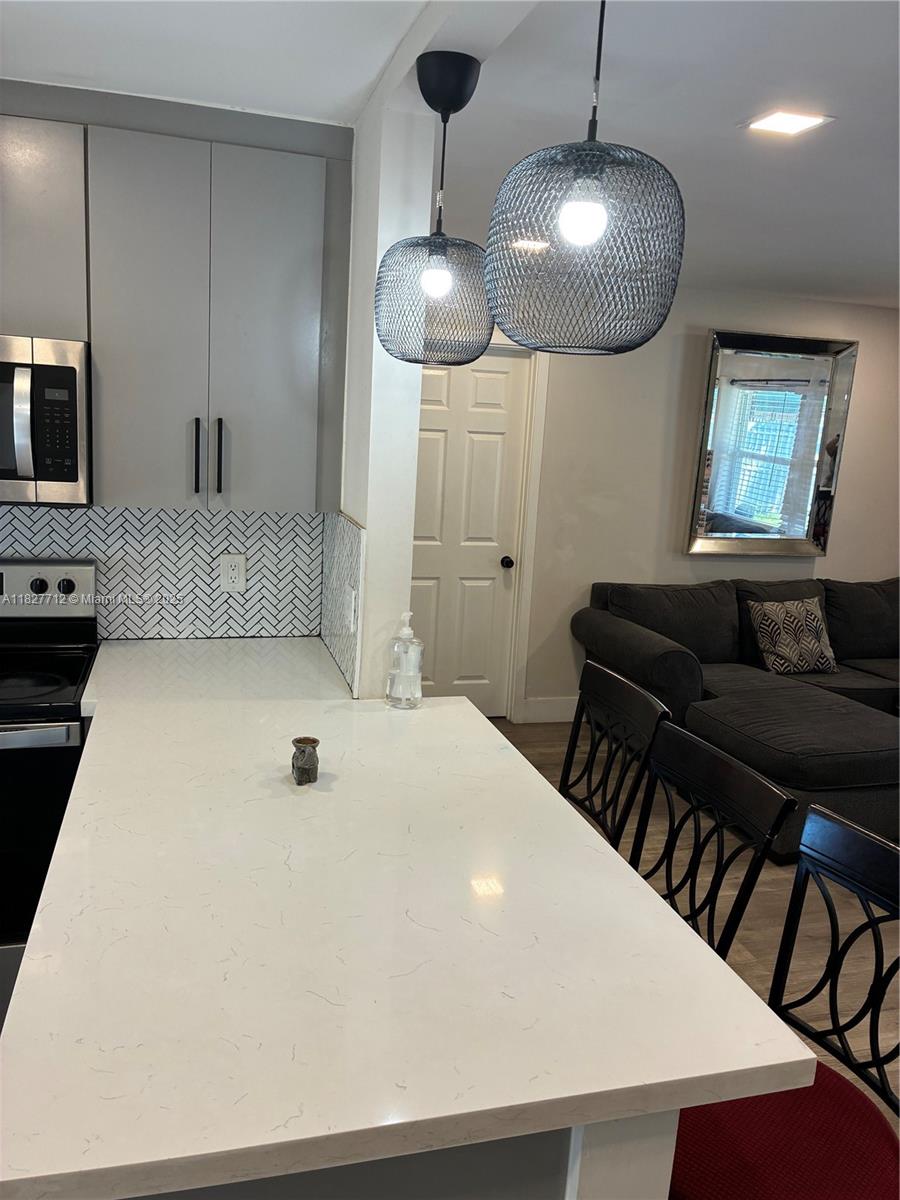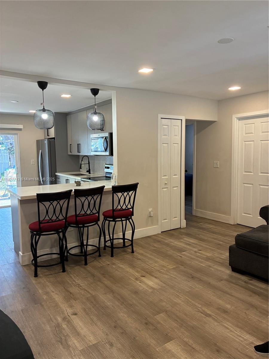 Charming Remodeled 3-Bed / 2-Bath Updated Home. Property features all Modern updates, including a kitchen and Bathrooms, with vinyl plank high-performance flooring throughout. Open gourmet Kitchen, Quartz counter Tops, Stainless Steel Appliances, Big Laundry Room, spacious bedrooms, it is located right in front of a Beautiful park with tennis Courts, walking trails, surrounded by beautiful nature, Spacious backyard, Perfect for entertainment, Centrally located near the beaches 20 minutes to Miami Beach,15 minutes to Wind Wood.