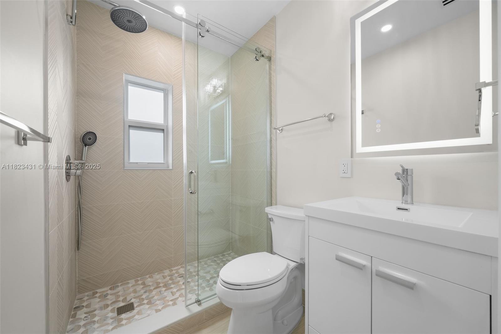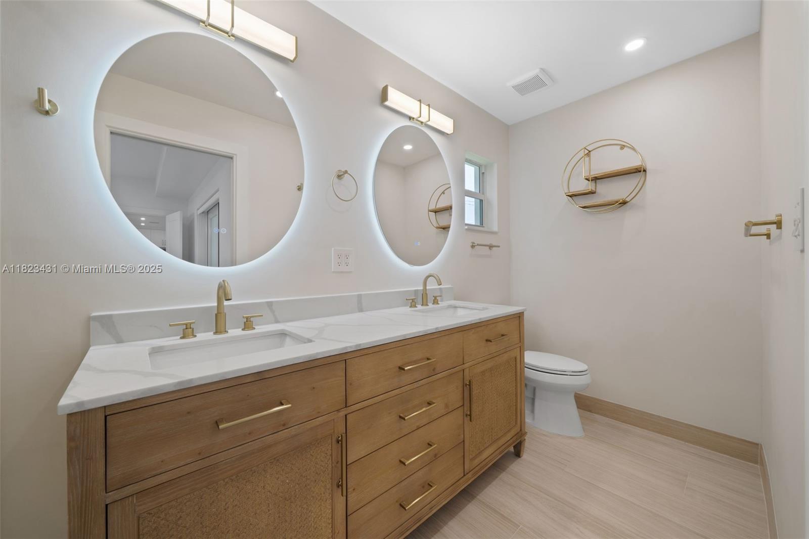 Exuding classic elegance, this newly renovated 4-bed, 4.5 bath residence is nestled on a lushly landscaped lot. Step into a spacious living room w/ vaulted ceiling that seamlessly flows onto an expansive covered patio. The open-concept kitchen features a sleek sitting island w/ quartz countertops. Thoughtfully designed, the home includes: all en suite bedrooms, stylish powder room, separate laundry room, and beautifully appointed modern baths. Porcelain floors run throughout, complemented by refined hardware finishes & upgraded AC vents. Home features brand-new roof, AC & AC ductwork, water heater, new fixtures & appliances as well as new plumbing & electrical systems. Complete impact doors & windows. Termite warranty. Near beaches & downtown. Eff. Yr Built 1979/ Actual Yr Built 1935.