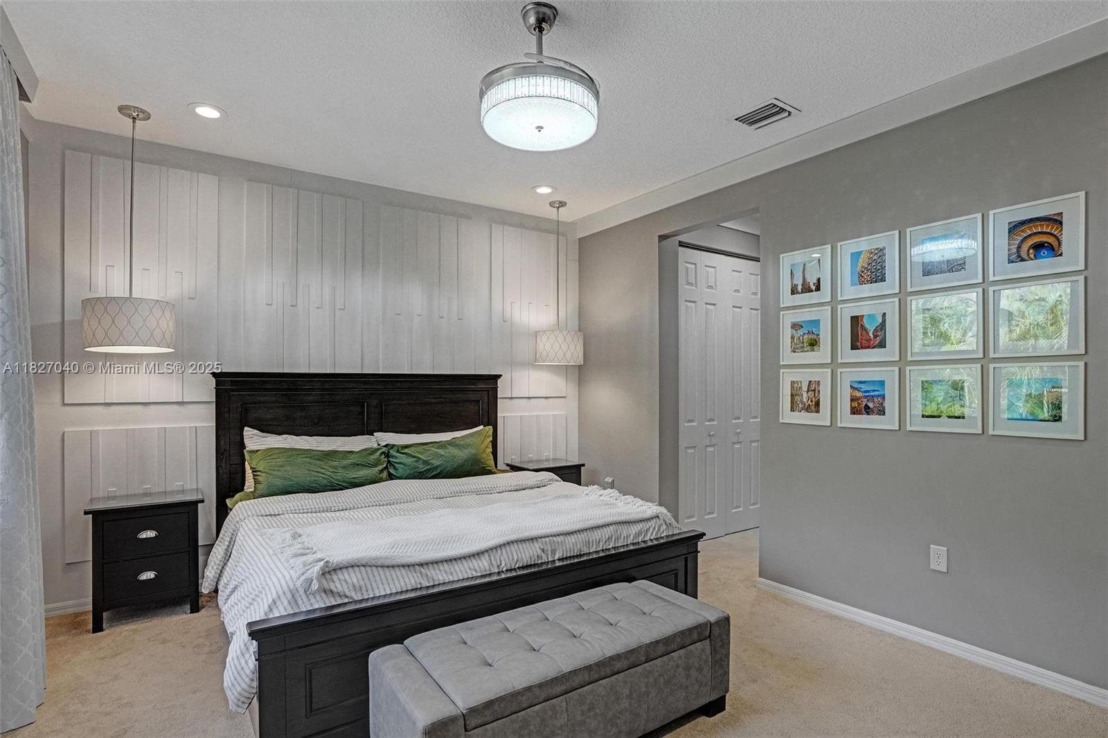 Builder spec model’s premium location edge of cul de sac, impact windows and doors, 10’ ceilings, crown molding, dimmable skylights, and custom kitchen are just a few features differentiating this home from its neighbors in the gated Foxcroft community. New A/C, electric car charger with adaptor to charge any electric car, spacious open floor plan and kitchen with top of the line cabinetry, self-closing drawers, built in counter/bar make this is the place to call home. Flooring is tile downstairs, real wood on stairs and upstairs common area, carpet in bedrooms. Peaceful fenced-in backyard oasis with paved patio. Foxcroft is centrally located near major highways, schools, with community pool.