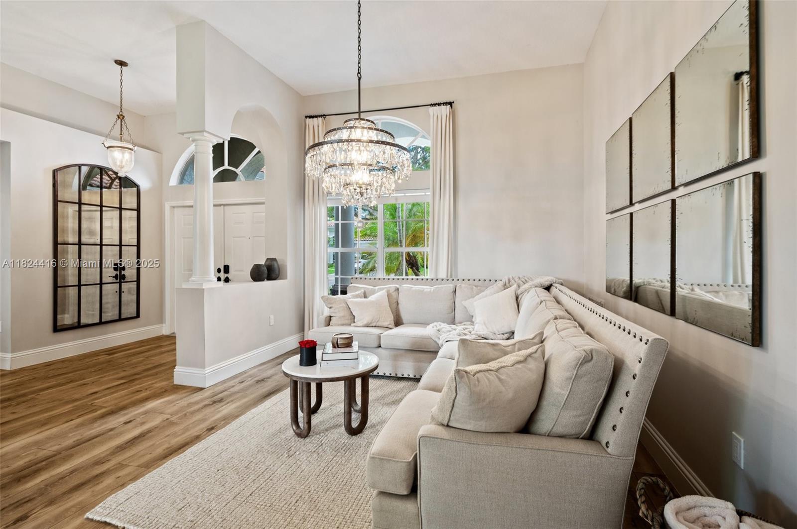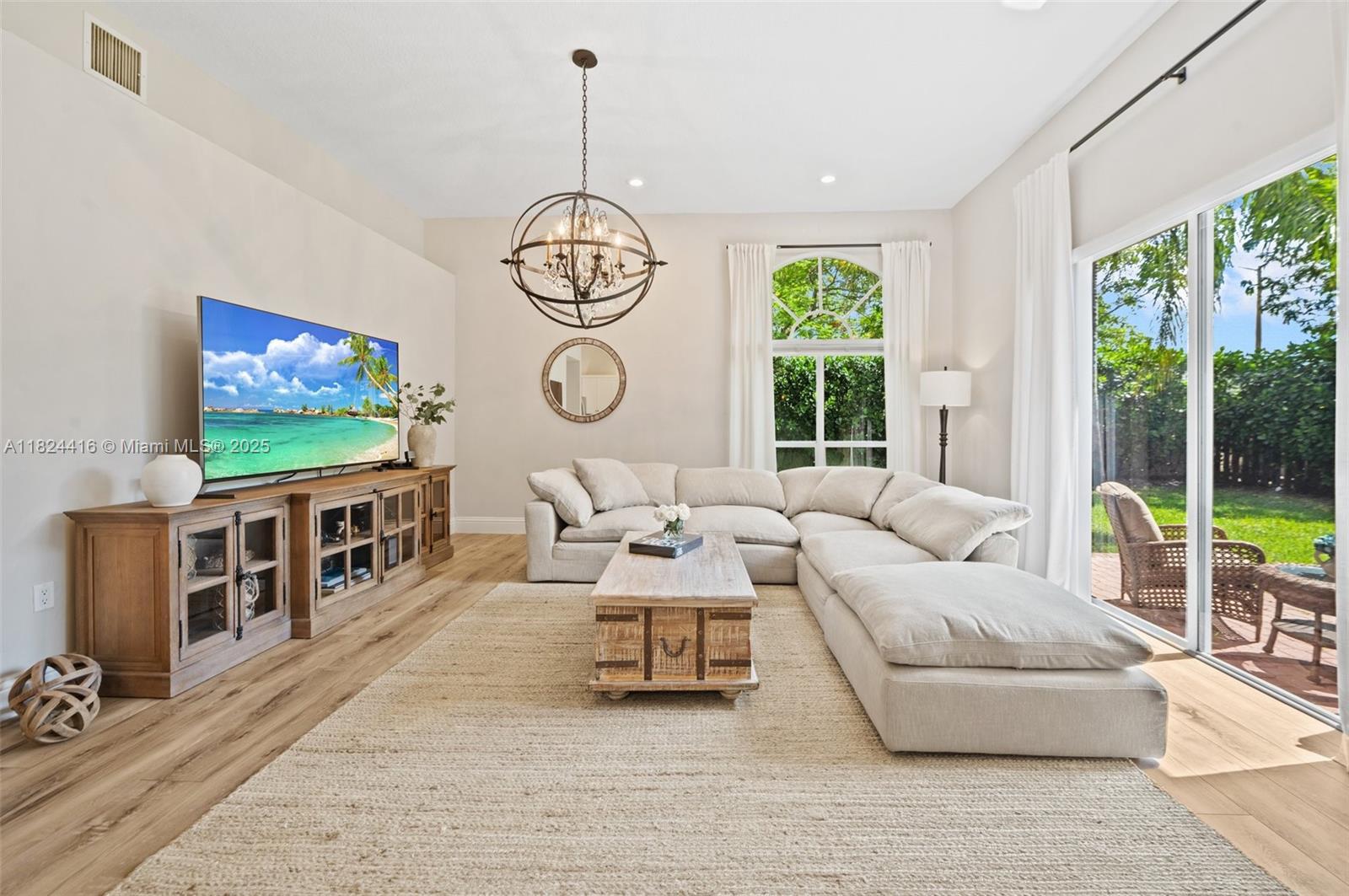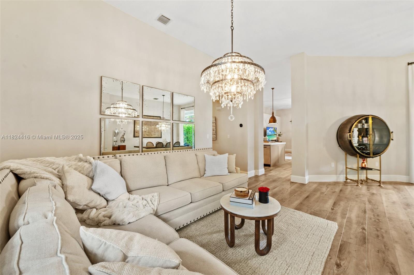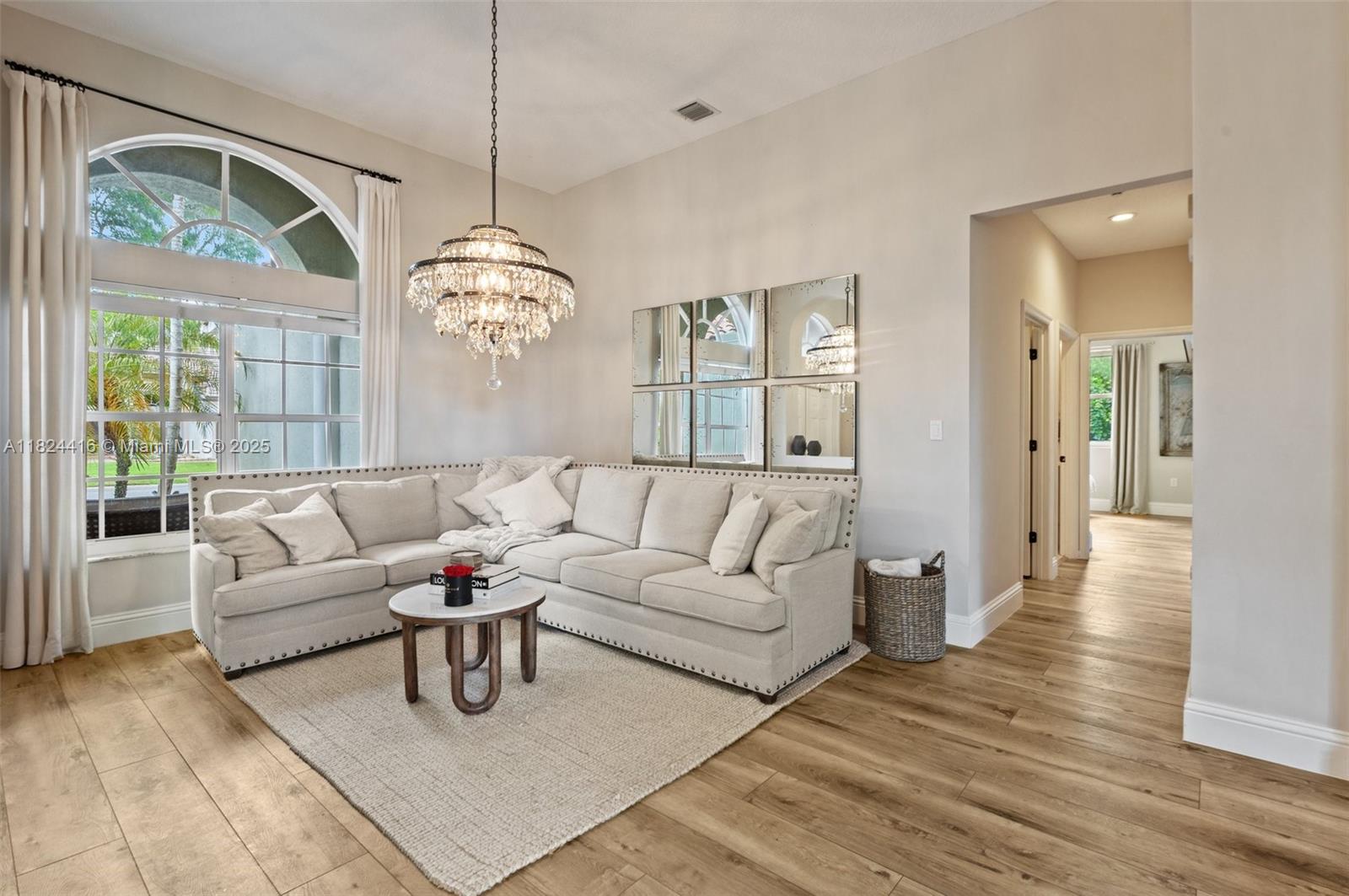 PRICE CUT!! Model-perfect Yale in the highly desirable gated community of Pembroke Falls! This fully renovated 4BD/3BA one-story home features a (3) car garage, 2022 roof, engineered wood floors, and a sought-after triple-split floor plan. The gourmet kitchen is a showstopper with quartz counters, gas stove, stainless steel appliances, and open-concept flow. Designer touches throughout. Enjoy a private outdoor space with plenty of room for a pool, sprinkler system, Resort-style amenities include 24hr security, clubhouse with gym, ballroom, pool, kids’ splash pool, tennis, pickleball, and basketball. HOA includes cable + fiber optic internet & alarm system. Prime location near I-75, top schools, lots of shopping, dining. Move-in ready luxury! Easy to show call today for private showing.