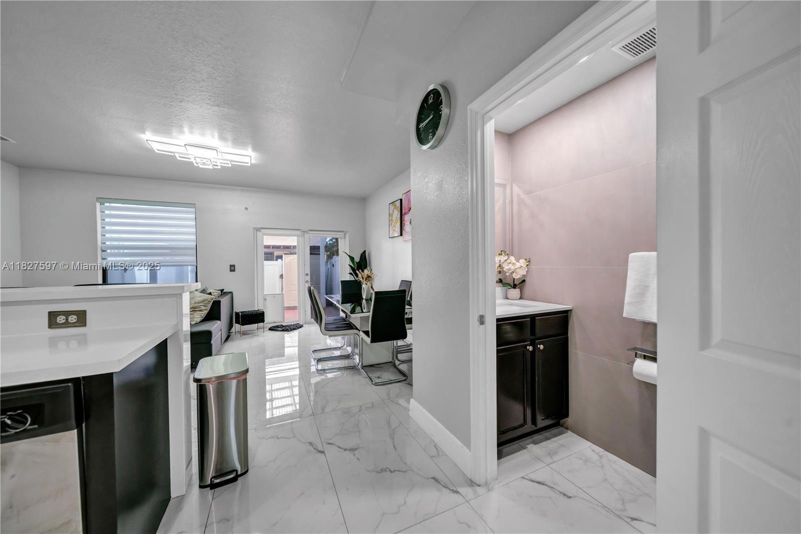Over $40,000 in upgrades! Offering the best price and the best finishes currently on the market, this renovated townhouse has a flexible space can be used as a home office or guest room. Upstairs, each bedroom has its own full bathroom, including a primary suite with a custom-built walk-in closet, smart toilets and floor-to-ceiling ceramic tile. Features: porcelain tile flooring throughout the entire first floor, and waterproof vinyl flooring on the staircase and second level, NO carpet anywhere! The modern kitchen is renovated with quartz countertops, and SS appliances. covered pergola and an additional storage. in-unit laundry, hurricane shutters, and 2 assigned parking spaces. Community amenities: pool, gym, clubhouse, and playground. located near I-75, the Palmetto, top-rated schools