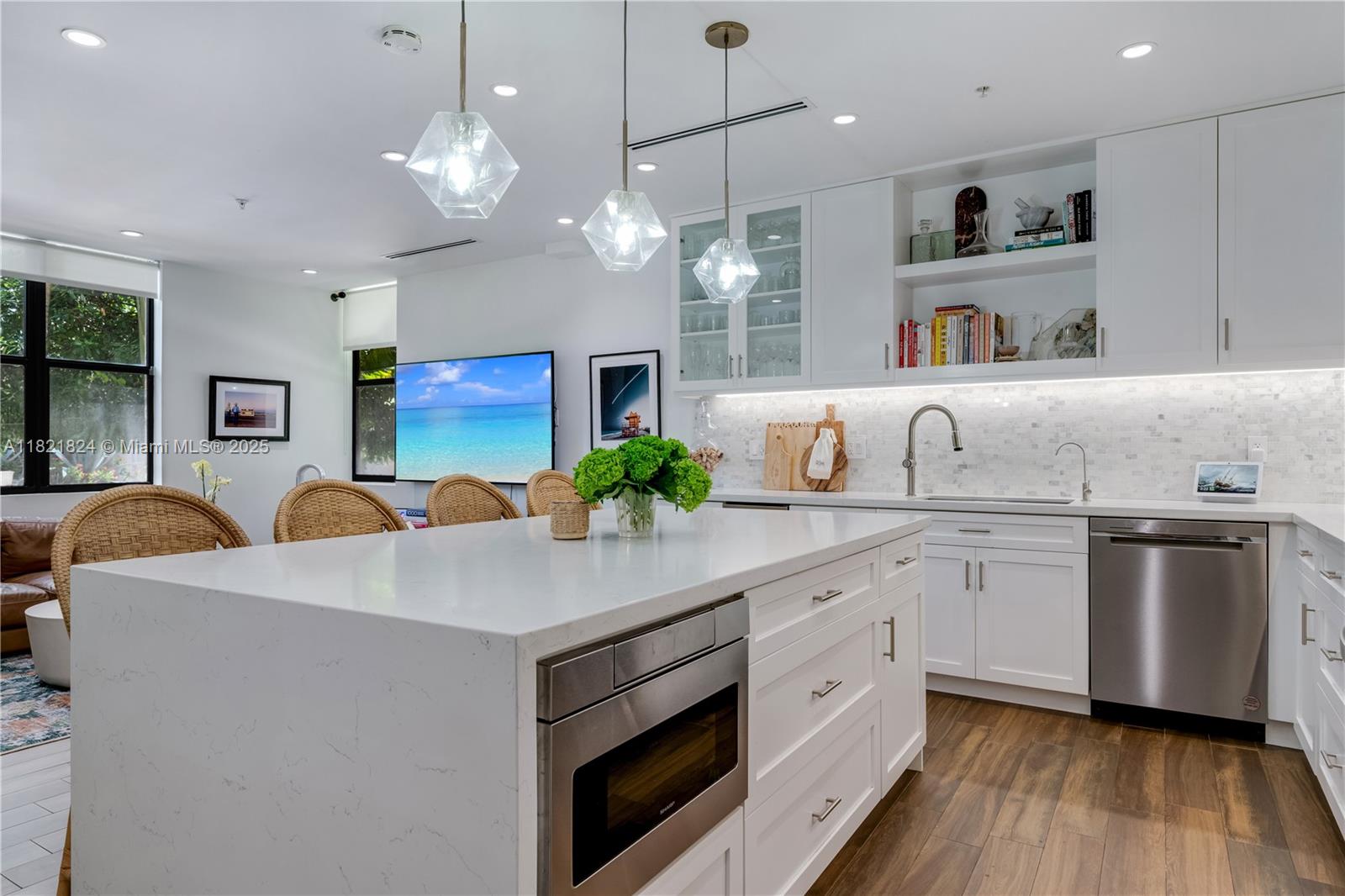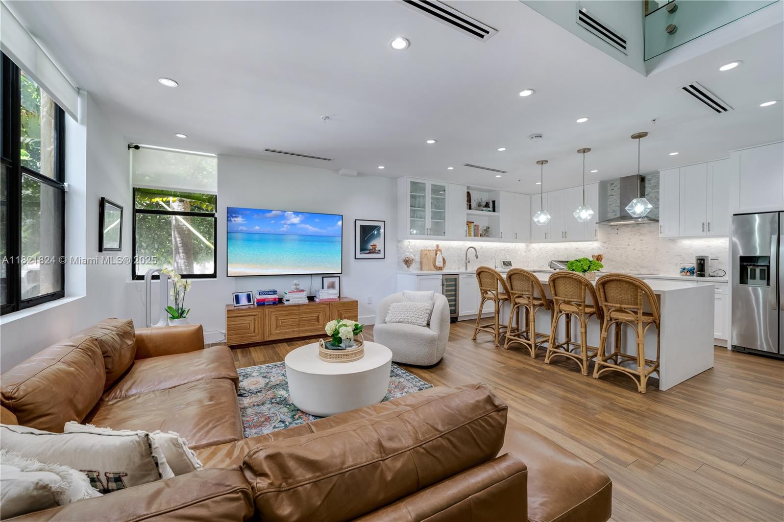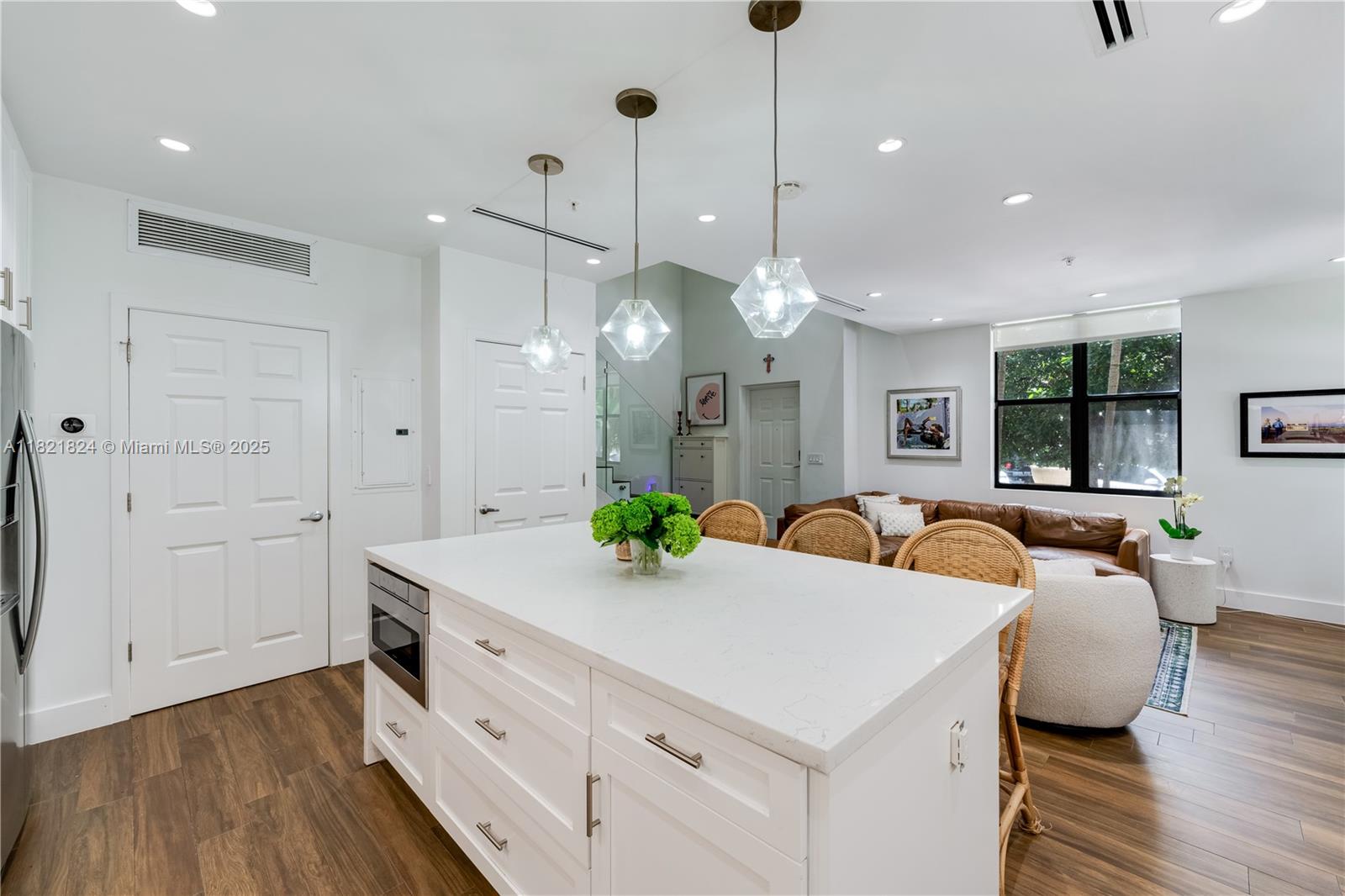 Beautifully updated townhouse in the heart of the Gables! This stylish 1-bedroom, 1.5-bath home features a modern, crisp design with sleek finishes throughout. The contemporary glass stair railing and custom glass partition upstairs enhance both light and space, offering added privacy and versatility—currently used as a charming nursery. An ideal blend of function and design, this move-in-ready gem is perfect for anyone seeking sophisticated urban living just steps from the best of Coral Gables.