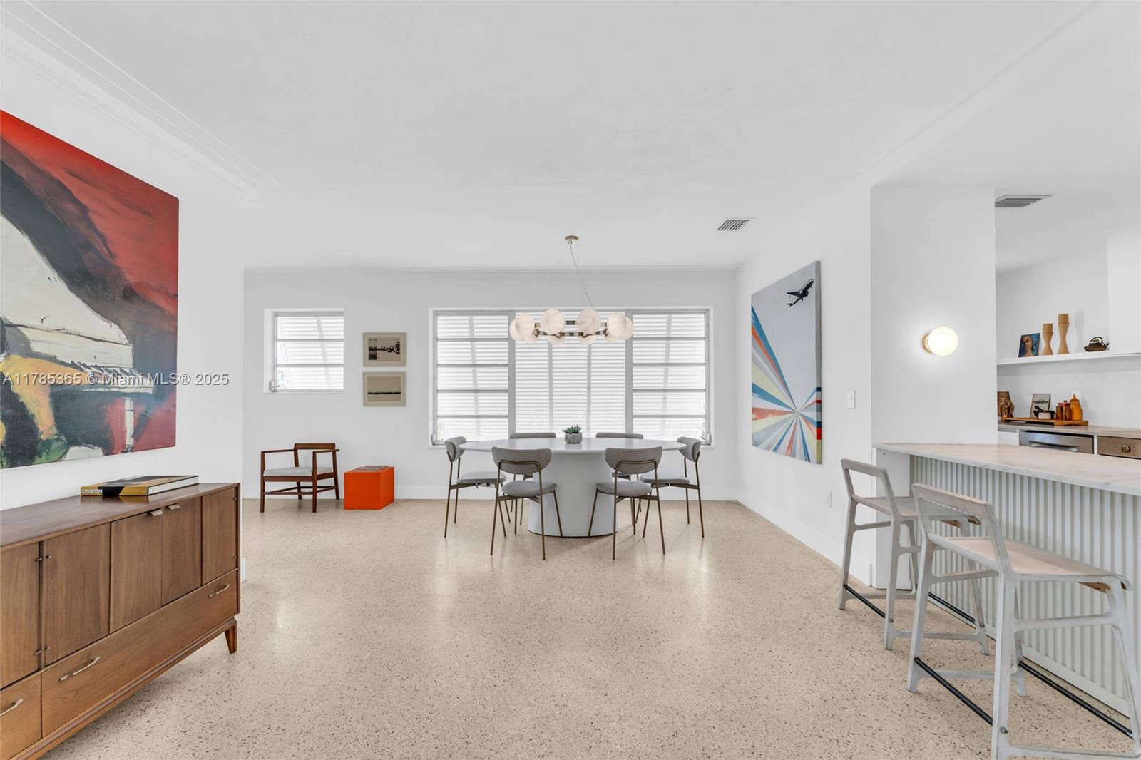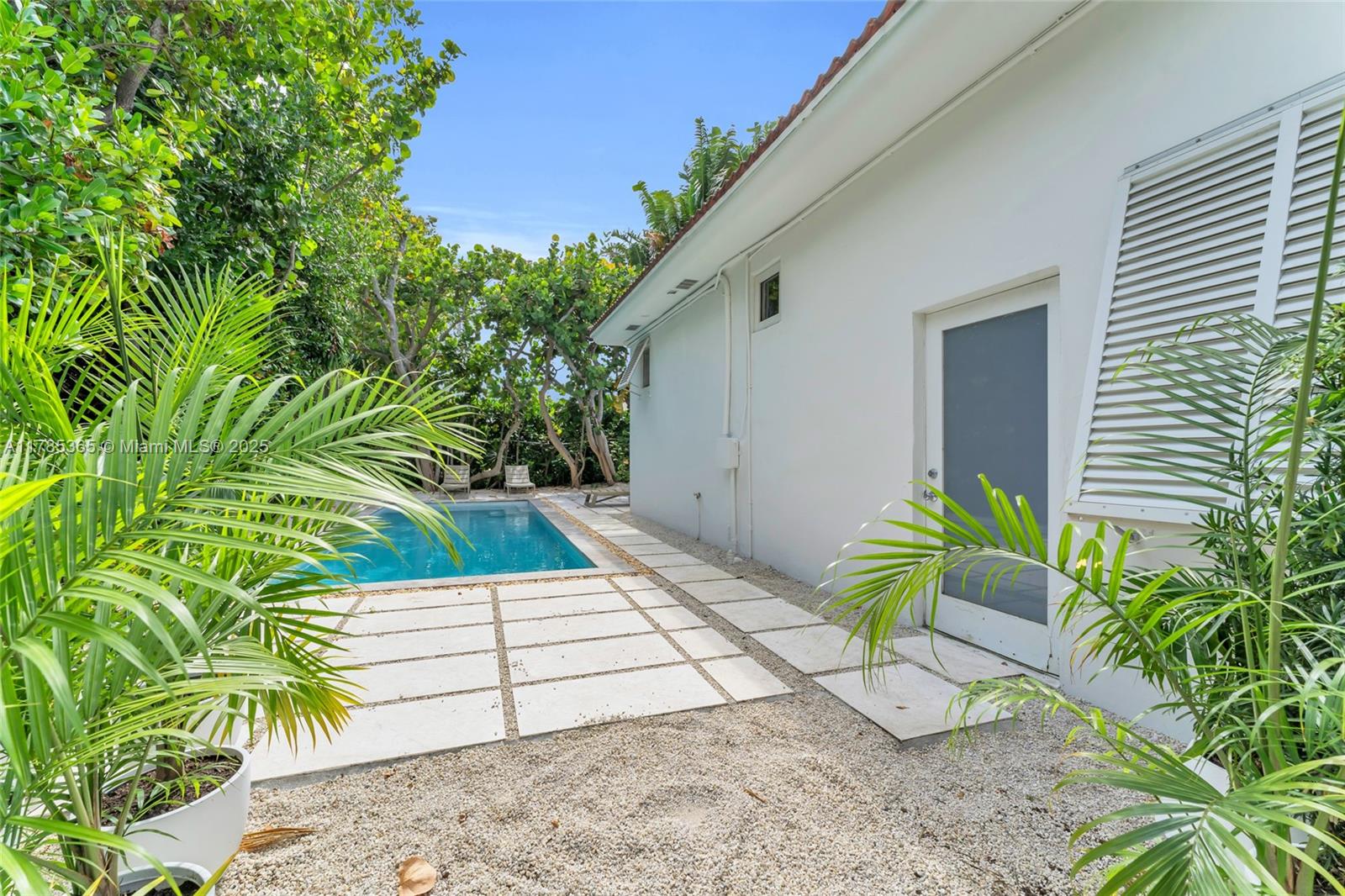 Architect-remodeled 2-bed, 3-bath home in Miami Shores Estates, set on a private corner lot at the end of two no-outlet streets. A peaceful retreat blending vintage charm and modern design, with original terrazzo floors, high-end finishes, and seamless flow to a lush garden with brand-new pool. The finished garage functions as an art studio/office. Corner lot allows for generous parking—2 spaces in front and 2–4 in the driveway. The kitchen features all new, high-end appliances. Every detail reflects thoughtful care. A rare and special home.
