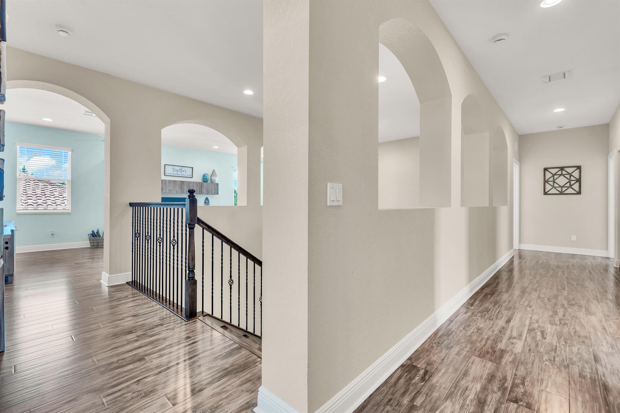 Welcome to this stunning Yellowstone model in the highly desired Highlands Reserve. This elegant 5 bedroom, 4.5 bath, two story pool home with a 3 car garage offers exceptional space. Enjoy a seamless flow between the kitchen and family room, perfect for everyday living and entertaining. The gourmet kitchen features abundant cabinets, a center island, and expansive counter space. Upstairs, a spacious loft offers versatile living along with four bedrooms, while the downstairs bedroom provides flexibility as a guest room or home office. The backyard is a private retreat featuring a gorgeous pool, covered patio, summer kitchen & ample green space overlooking a serene preserve view. Complete impact glass, exterior paint in 2025, new upstairs A/C in 2025. HOA dues include lawn care,