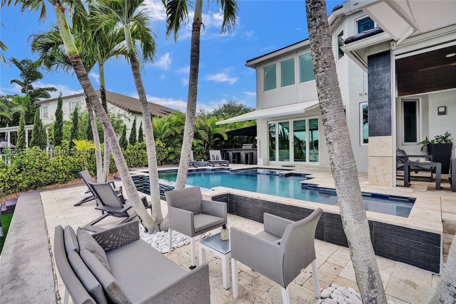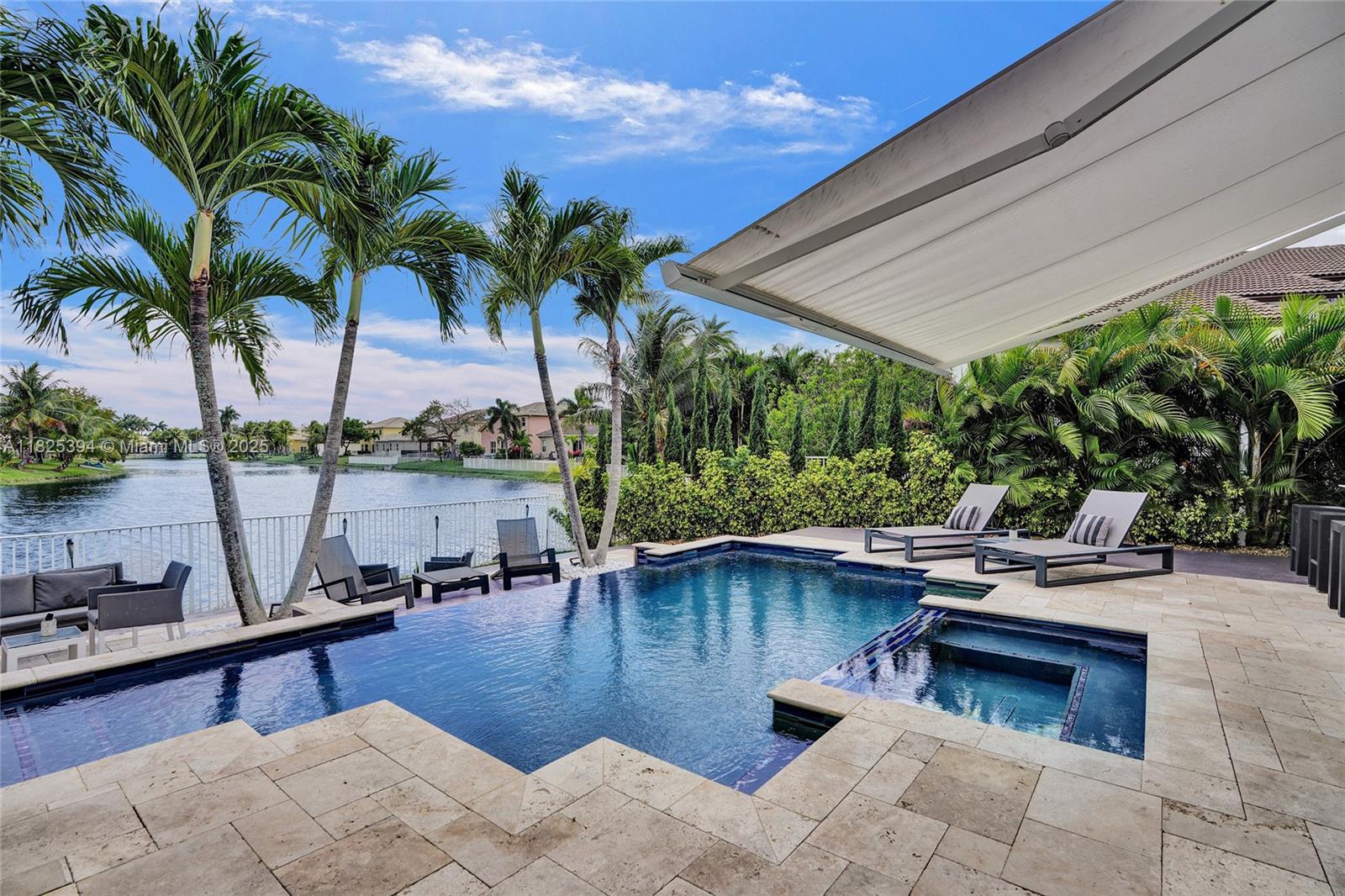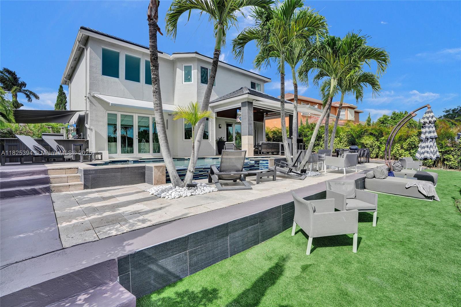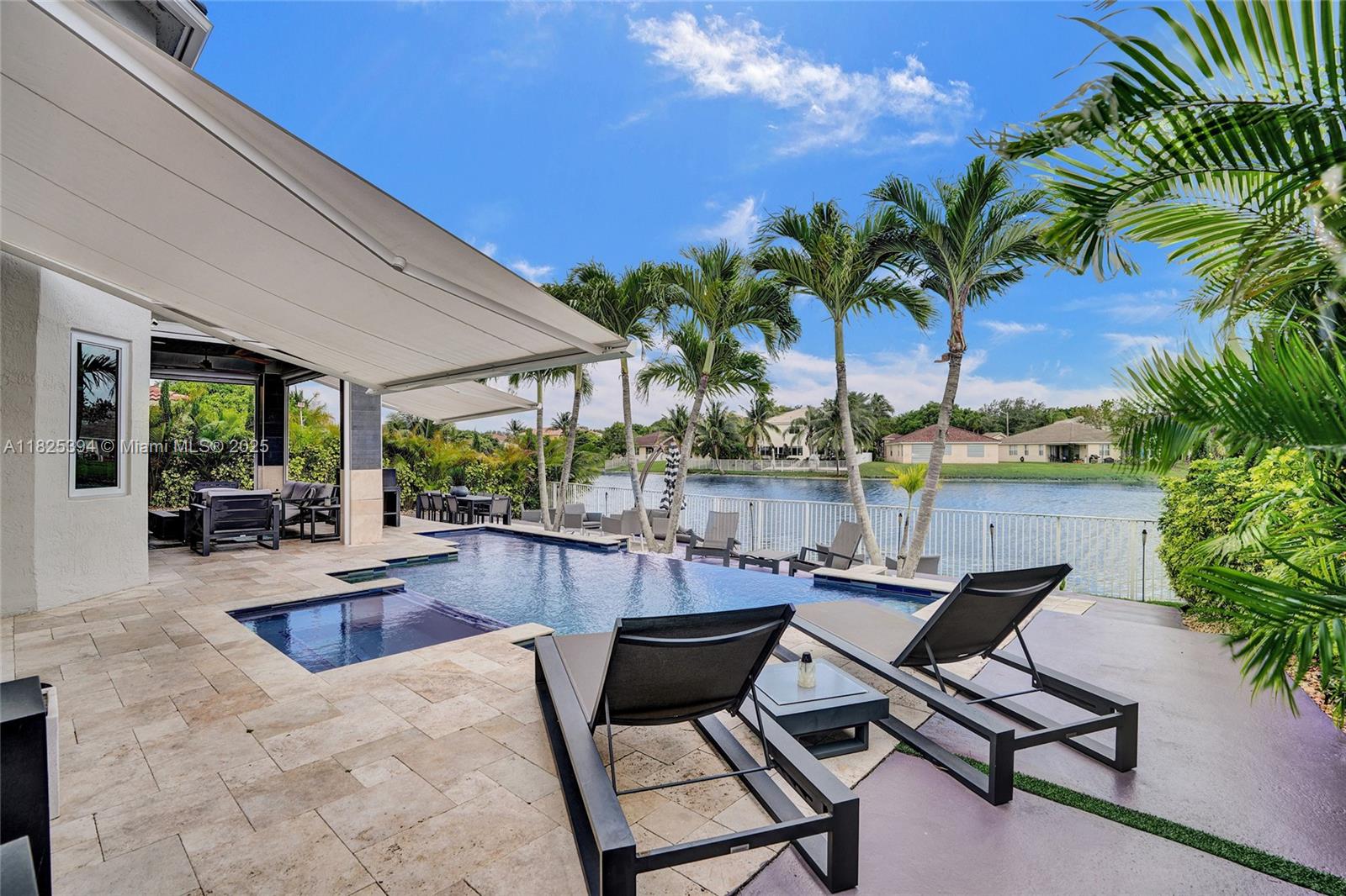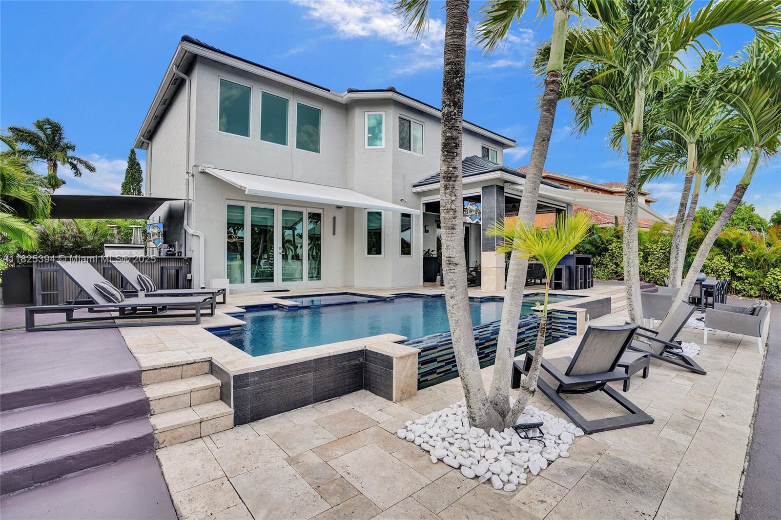 View this stunning & expansive 5-bed, 3-bath home w/ a dedicated office and is one of the largest models in this highly sought-after community, offering over 3,100 sq ft of fully renovated living space. Enjoy the peace of mind that comes with a brand-new roof and hurricane impact windows throughout. The open-concept design features a chef-inspired kitchen with quartz countertops, stainless steel appliances, and abundant cabinetry. The spacious master suite offers a serene retreat with a spa-like bath. Perfect for entertaining, the backyard oasis includes a heated pool and spa, outdoor kitchen, and peaceful lake views. A first-floor bedroom adds convenience and flexibility. Residents also enjoy access to a renovated clubhouse with a weight room and pool. A Home filled w/ Elegance.