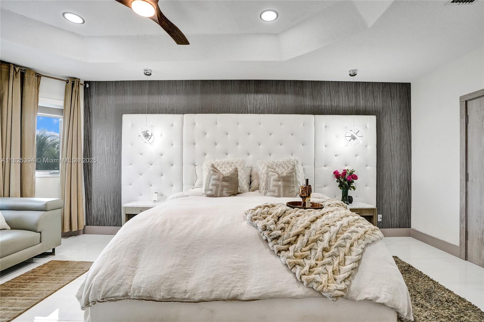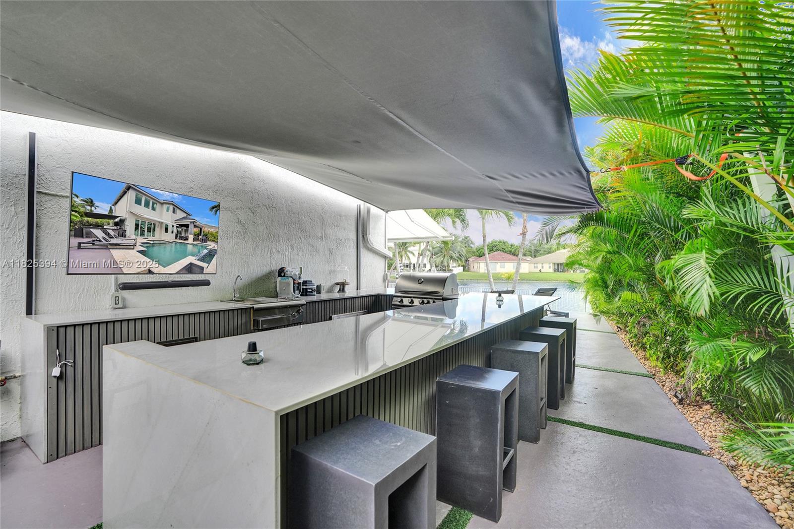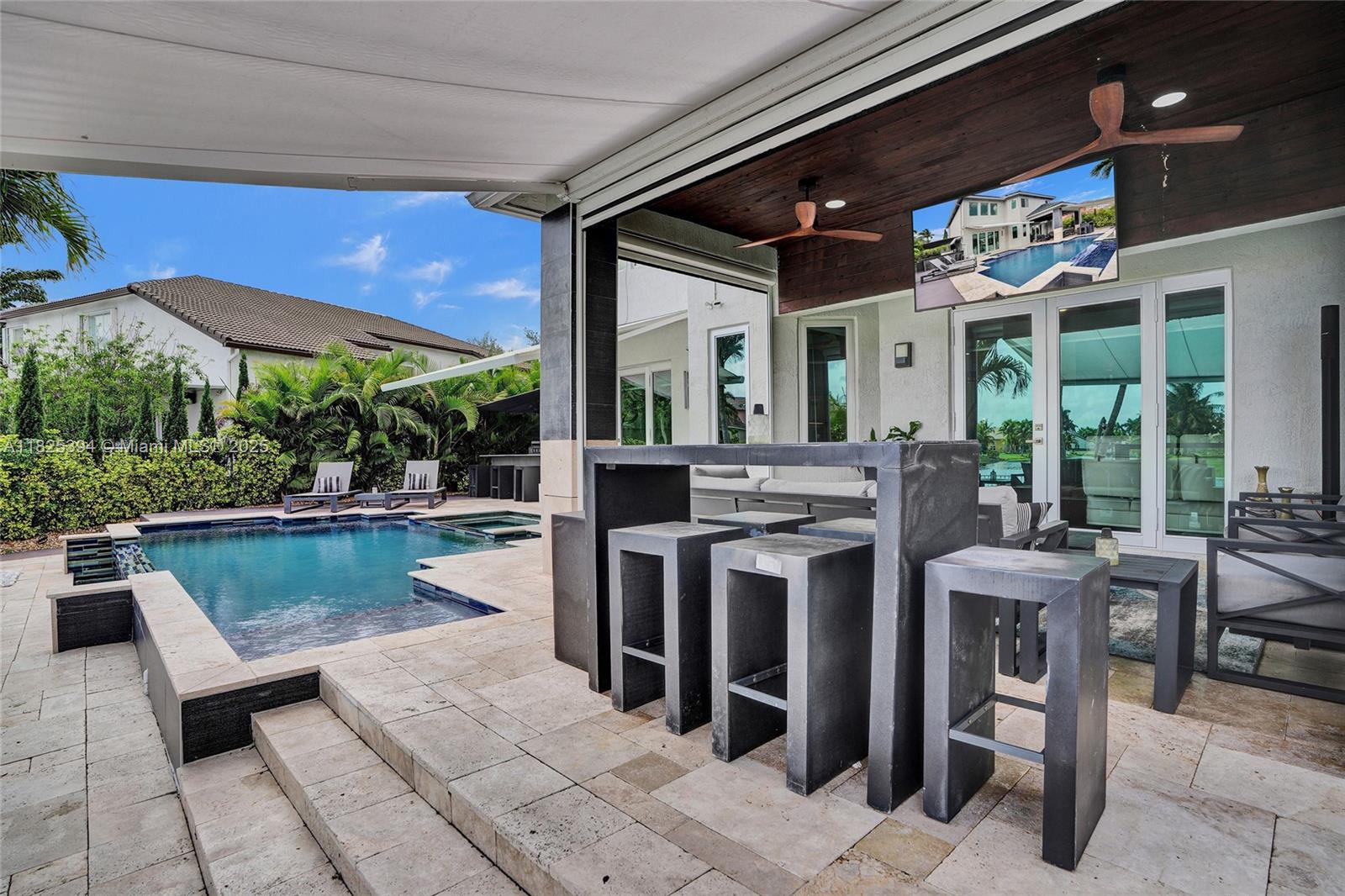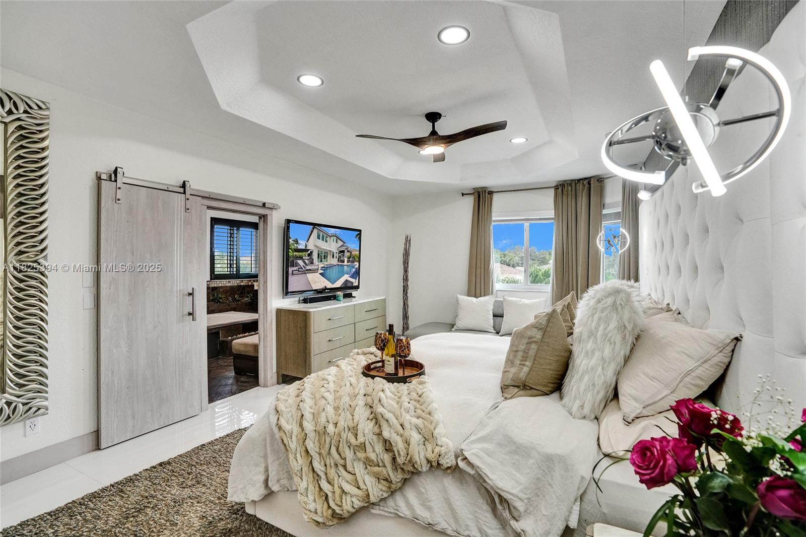 View this stunning & expansive 5-bed, 3-bath home w/ a dedicated office and is one of the largest models in this highly sought-after community, offering over 3,100 sq ft of fully renovated living space. Enjoy the peace of mind that comes with a brand-new roof and hurricane impact windows throughout. The open-concept design features a chef-inspired kitchen with quartz countertops, stainless steel appliances, and abundant cabinetry. The spacious master suite offers a serene retreat with a spa-like bath. Perfect for entertaining, the backyard oasis includes a heated pool and spa, outdoor kitchen, and peaceful lake views. A first-floor bedroom adds convenience and flexibility. Residents also enjoy access to a renovated clubhouse with a weight room and pool. A Home filled w/ Elegance.