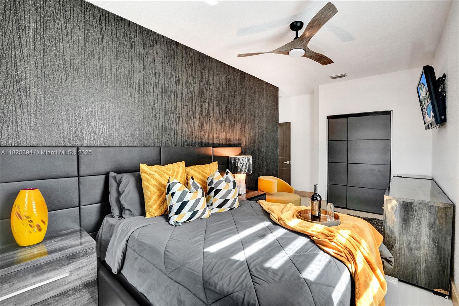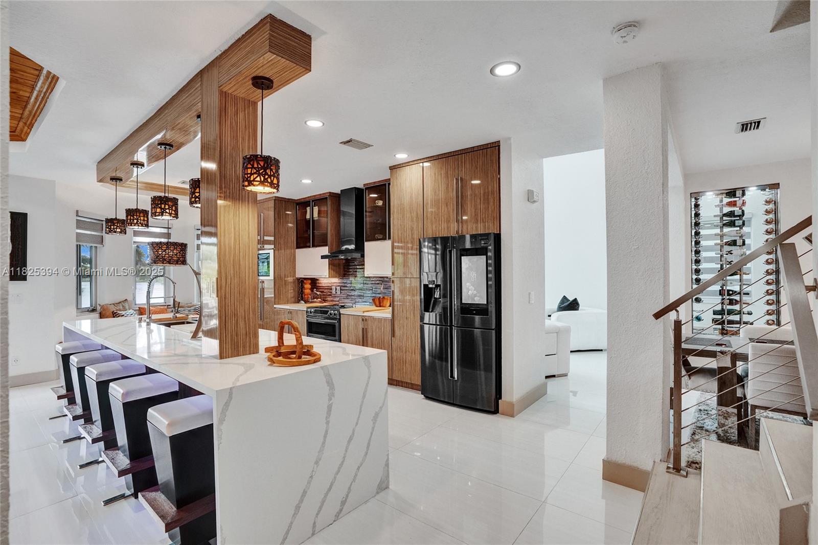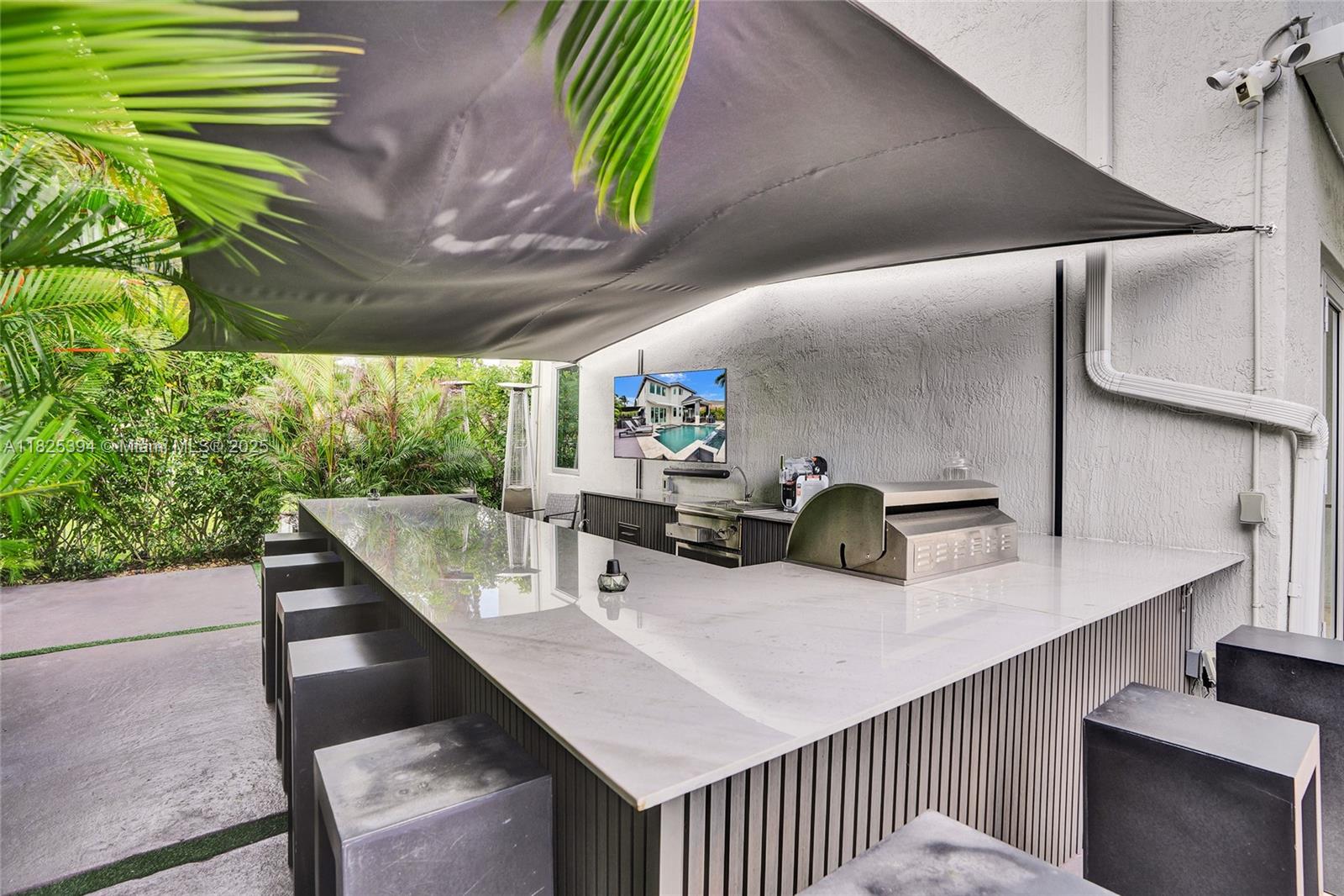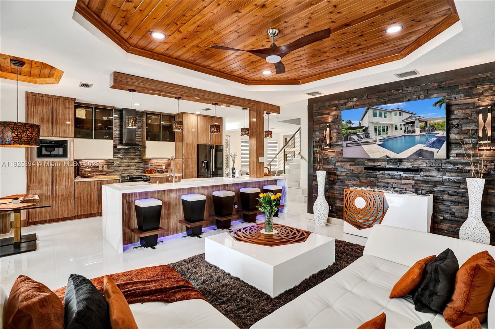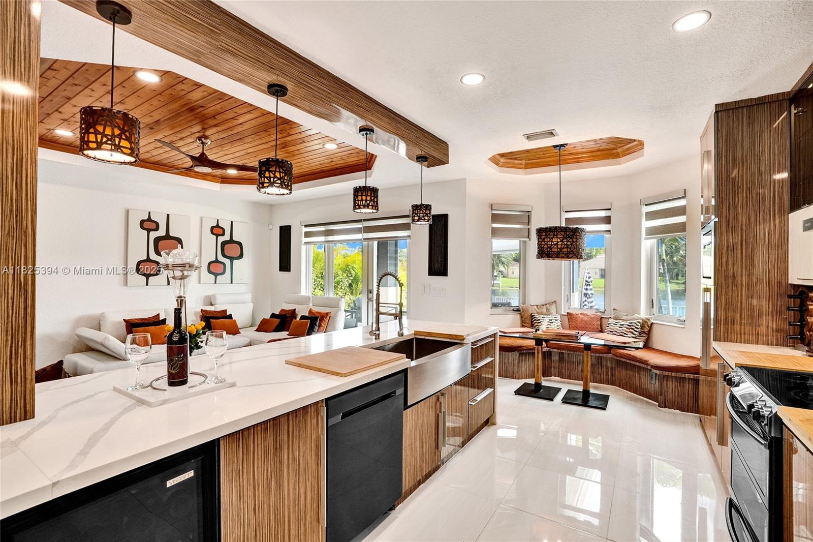 View this stunning & expansive 5-bed, 3-bath home w/ a dedicated office and is one of the largest models in this highly sought-after community, offering over 3,100 sq ft of fully renovated living space. Enjoy the peace of mind that comes with a brand-new roof and hurricane impact windows throughout. The open-concept design features a chef-inspired kitchen with quartz countertops, stainless steel appliances, and abundant cabinetry. The spacious master suite offers a serene retreat with a spa-like bath. Perfect for entertaining, the backyard oasis includes a heated pool and spa, outdoor kitchen, and peaceful lake views. A first-floor bedroom adds convenience and flexibility. Residents also enjoy access to a renovated clubhouse with a weight room and pool. A Home filled w/ Elegance.