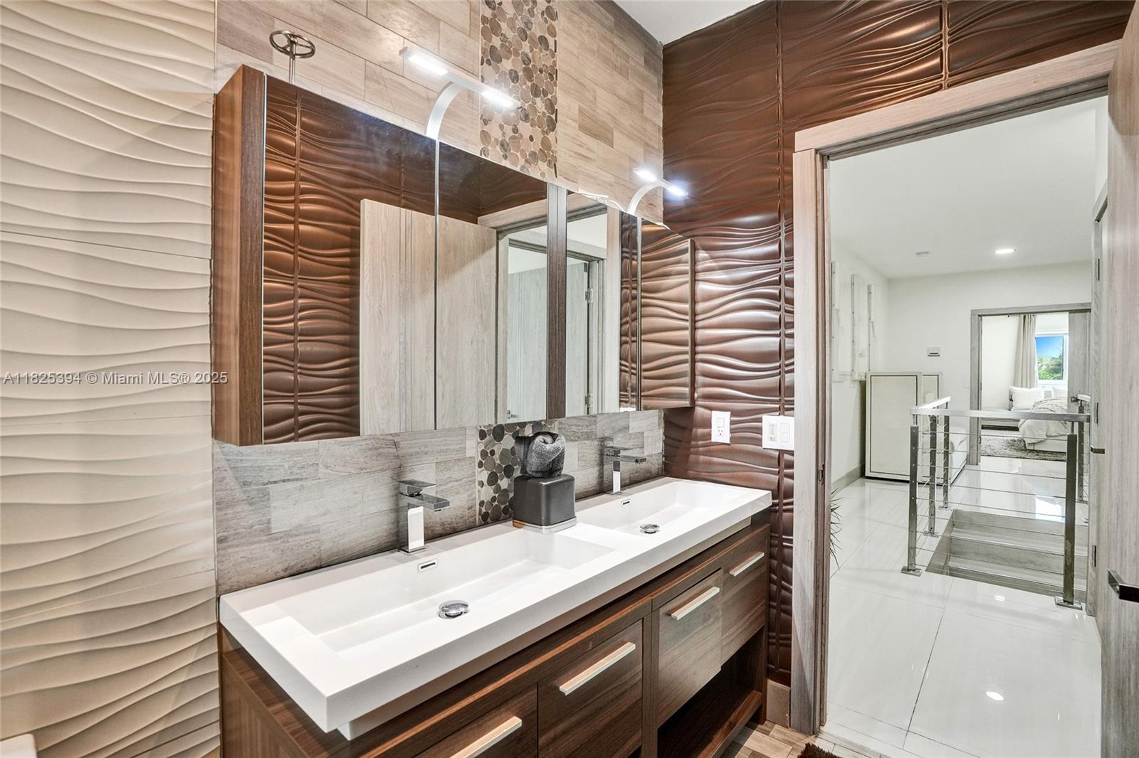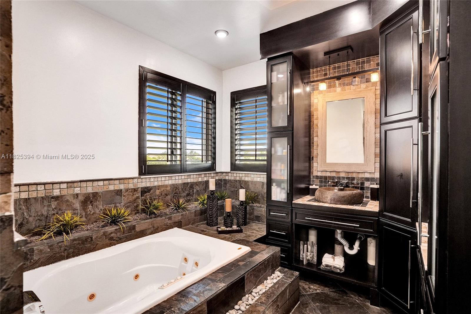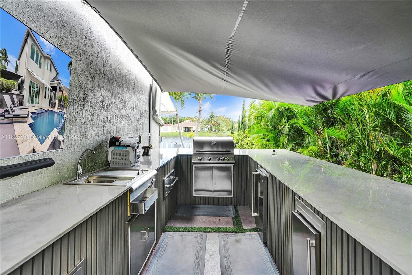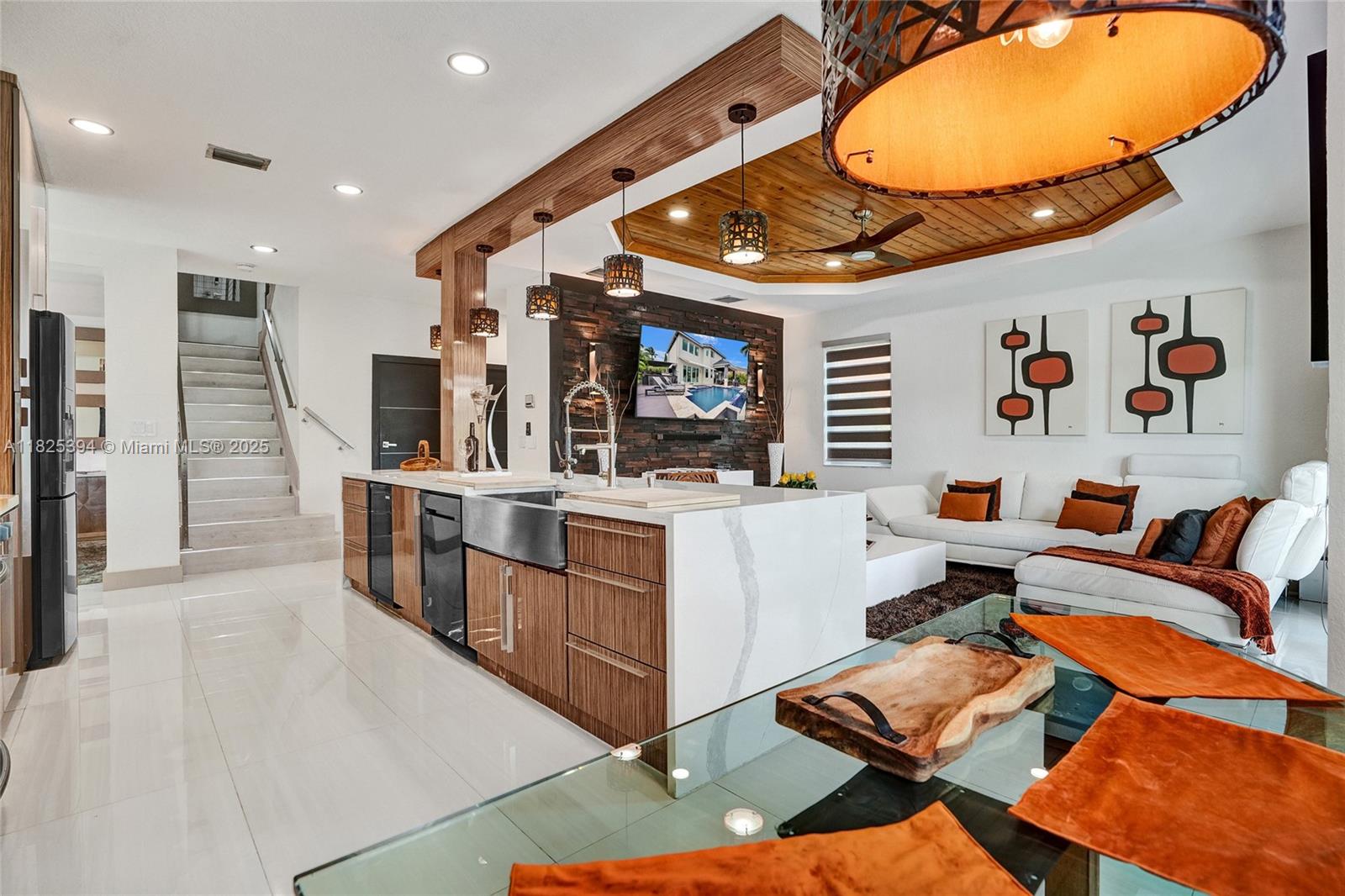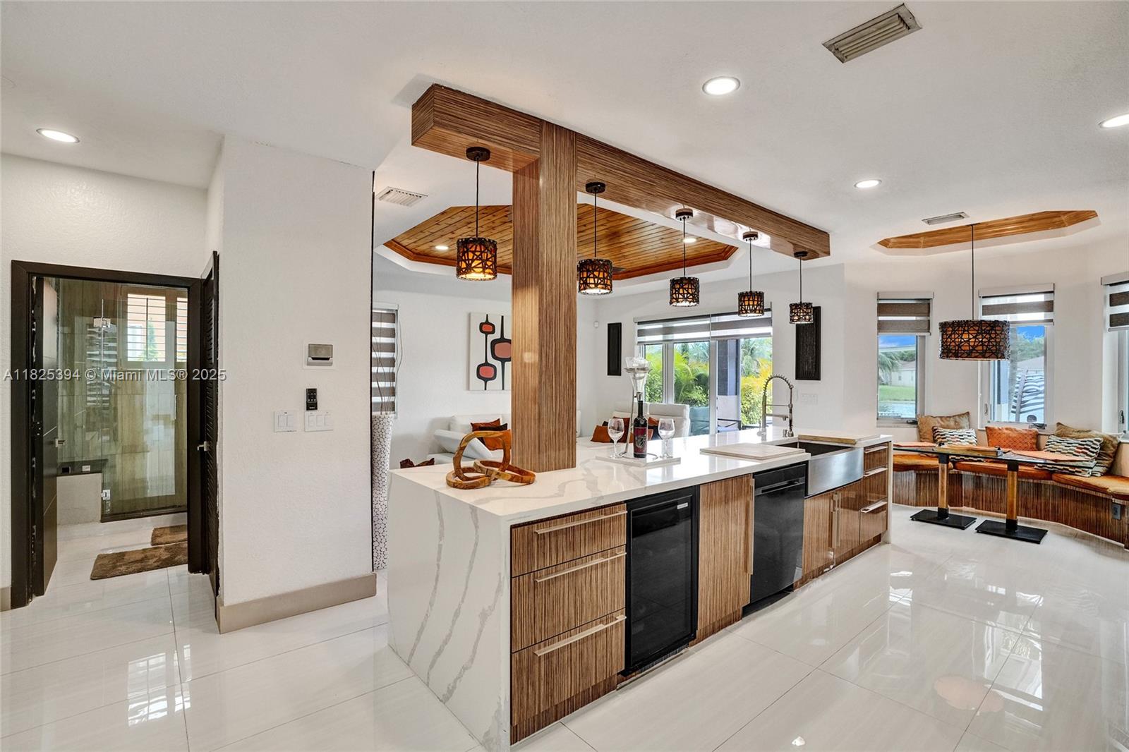 View this stunning & expansive 5-bed, 3-bath home w/ a dedicated office and is one of the largest models in this highly sought-after community, offering over 3,100 sq ft of fully renovated living space. Enjoy the peace of mind that comes with a brand-new roof and hurricane impact windows throughout. The open-concept design features a chef-inspired kitchen with quartz countertops, stainless steel appliances, and abundant cabinetry. The spacious master suite offers a serene retreat with a spa-like bath. Perfect for entertaining, the backyard oasis includes a heated pool and spa, outdoor kitchen, and peaceful lake views. A first-floor bedroom adds convenience and flexibility. Residents also enjoy access to a renovated clubhouse with a weight room and pool. A Home filled w/ Elegance.