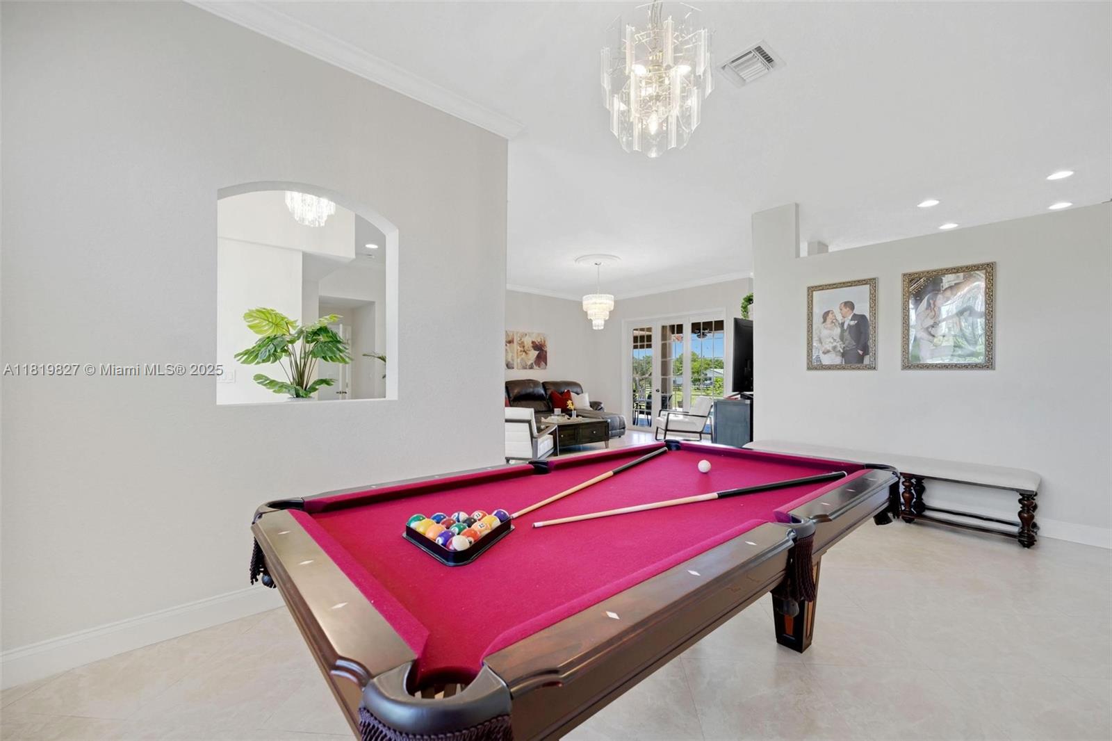 Fully fenced and gated 2.2-acre estate in equestrian-friendly Southwest Ranches. 5-bedroom residence plus a separate 2-bedroom guest house-ideal for multi-gen living, a home office, rental income, etc. The main home offers 3,000+ living sq ft, volume ceilings, abundant natural light, 2-car garage, and expansive driveway. The detached, updated guest house boasts 1,300+ sq ft, a storage room, private laundry, and a 3-seat jacuzzi. Property features new A/C systems, new water heaters, new well pumps and water filtration systems. Newly installed municipal water line directly across the property, makes city water connection optional instead of the area's typical well water. No overhead power lines running through the property.Agricultural exemption with citrus, tropical, and exotic fruit trees.