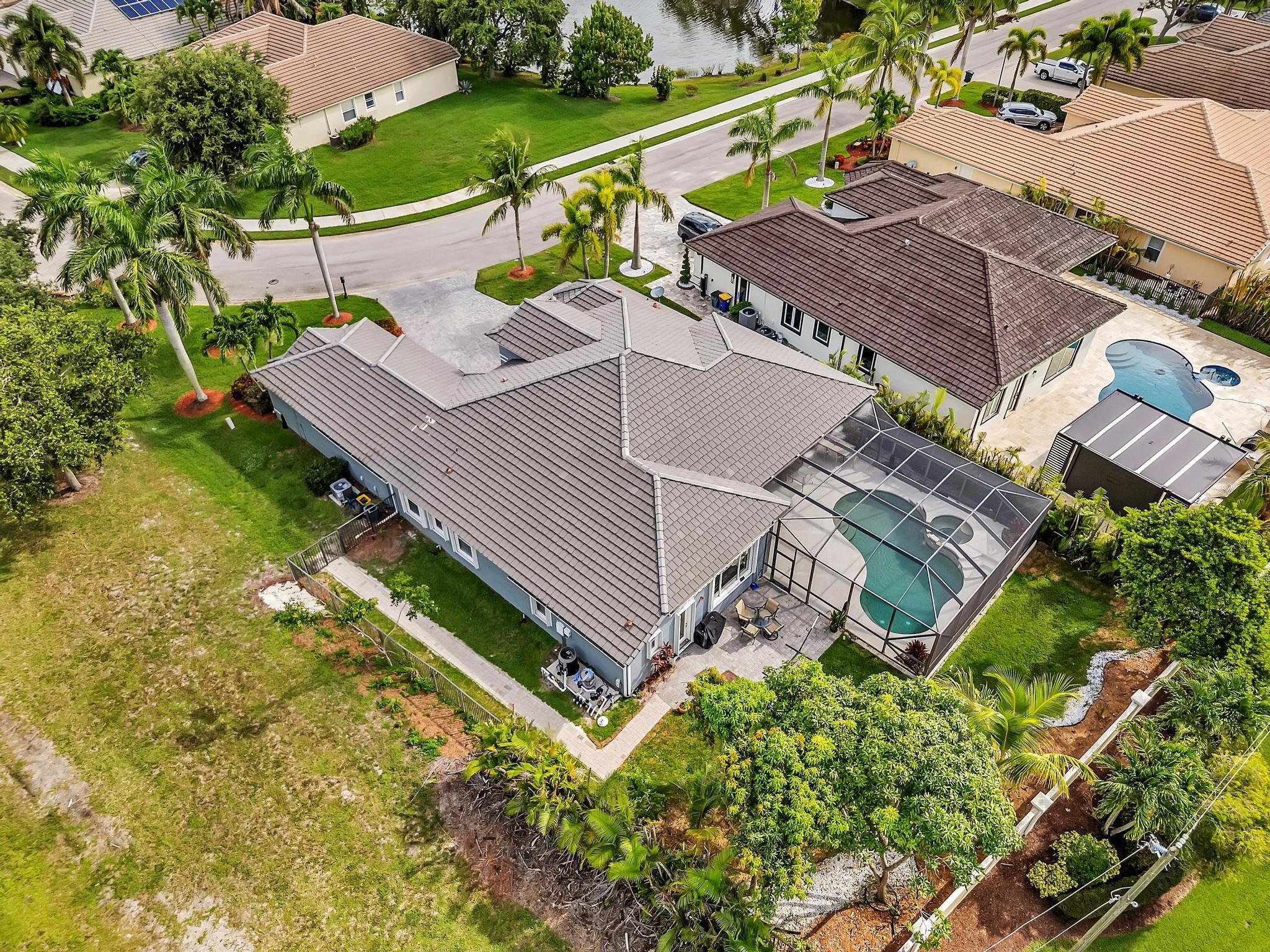 Boaters & Golfers paradise!! Home sits on an oversized corner lot. Volume ceiling, bright open layout, 5th bdrm used as office, 3 bthrm, 3-car garage. The chef's kitchen with center island, granite countertops, double oven and Formal dining-room. Experience Florida living, screened-in deck, heated saltwater pool and spa, child safety screen, retractable awning, outdoor cooking area, mature fruit trees. The master ensuite features an oversized dual shower and a soaking tub. Amenities include Club House, gym, private yacht marina. This home is assigned its own private boat dock, in deep-water canal capable of accommodating a 40-foot yacht. Canal provides direct ocean access, no fixed bridges. Close proximity to Golf Country Clubs. Don't miss the chance to call this home yours!