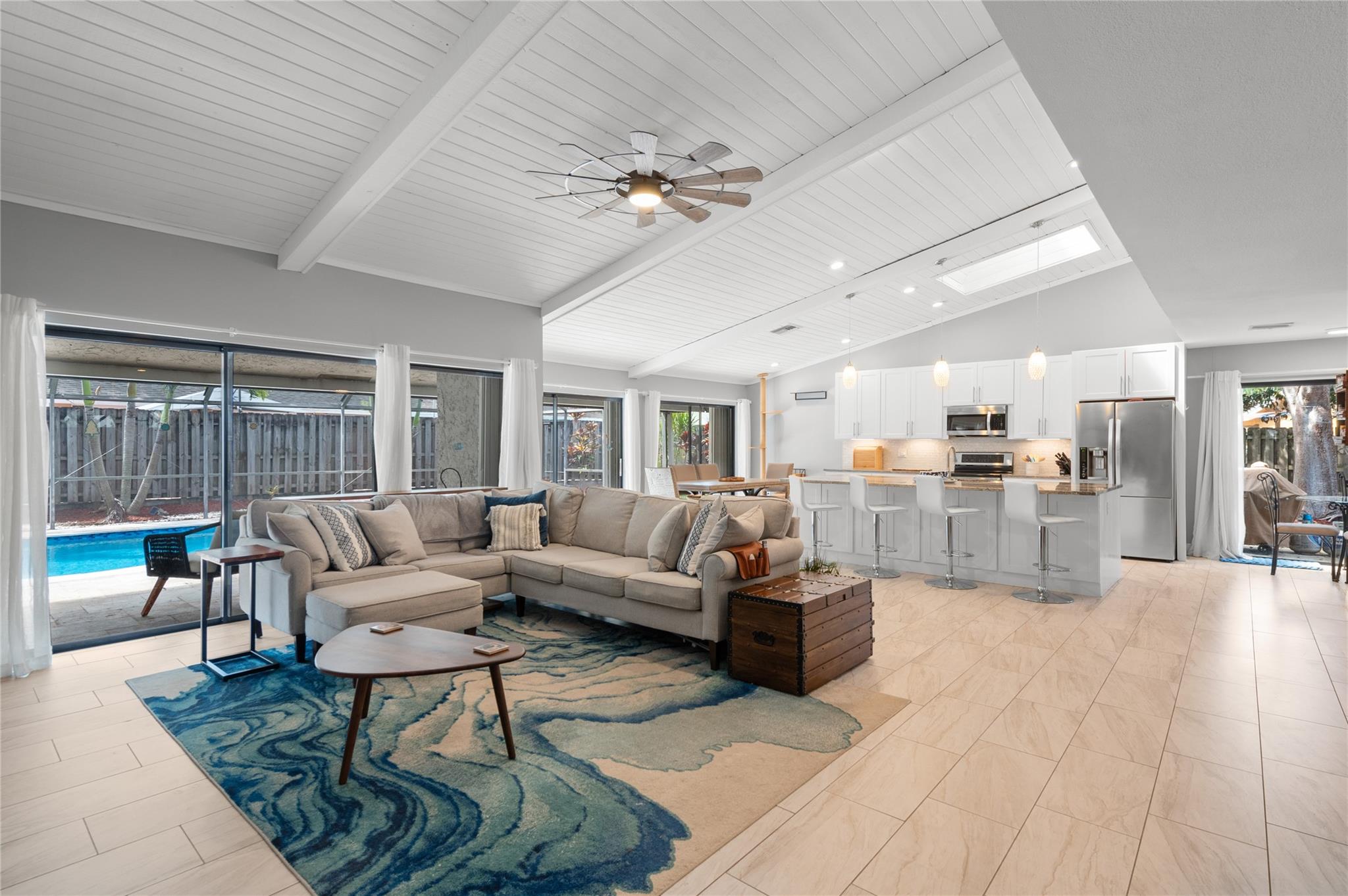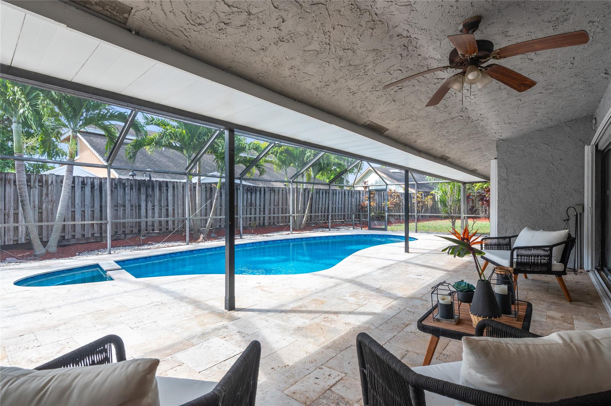 Plantation Gem with Saltwater Pool! This fully renovated 3-bed, 2-bath home in Plantation Hills sits on one of the largest cul-de-sac lots. Features a designer-inspired open floor plan with a massive kitchen island and spacious living/dining areas—perfect for entertaining. Enjoy seamless indoor-outdoor flow to the enclosed patio and sparkling saltwater pool. Accordion shutters provide full storm protection. Updated roof and modern finishes throughout. Roof 2016, A/C 2007, pool pump SALTWATER 2020 Expansive yard offers endless potential. Don’t miss this turnkey home—schedule your private tour today! EASY TO SEE!