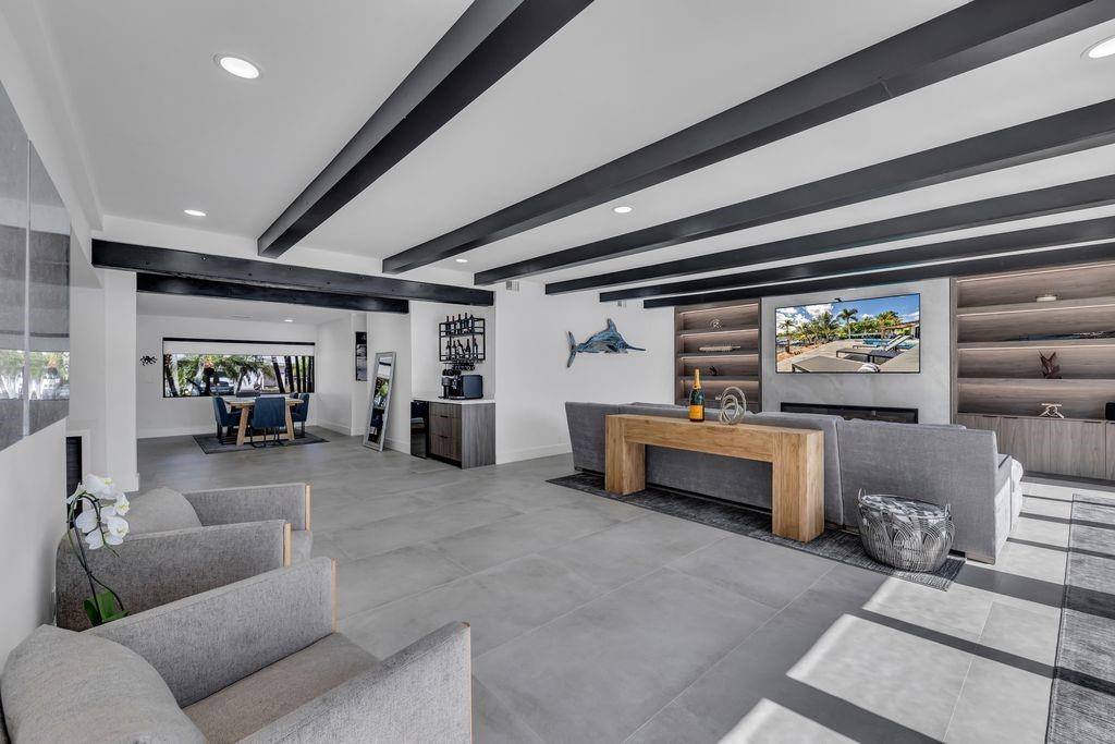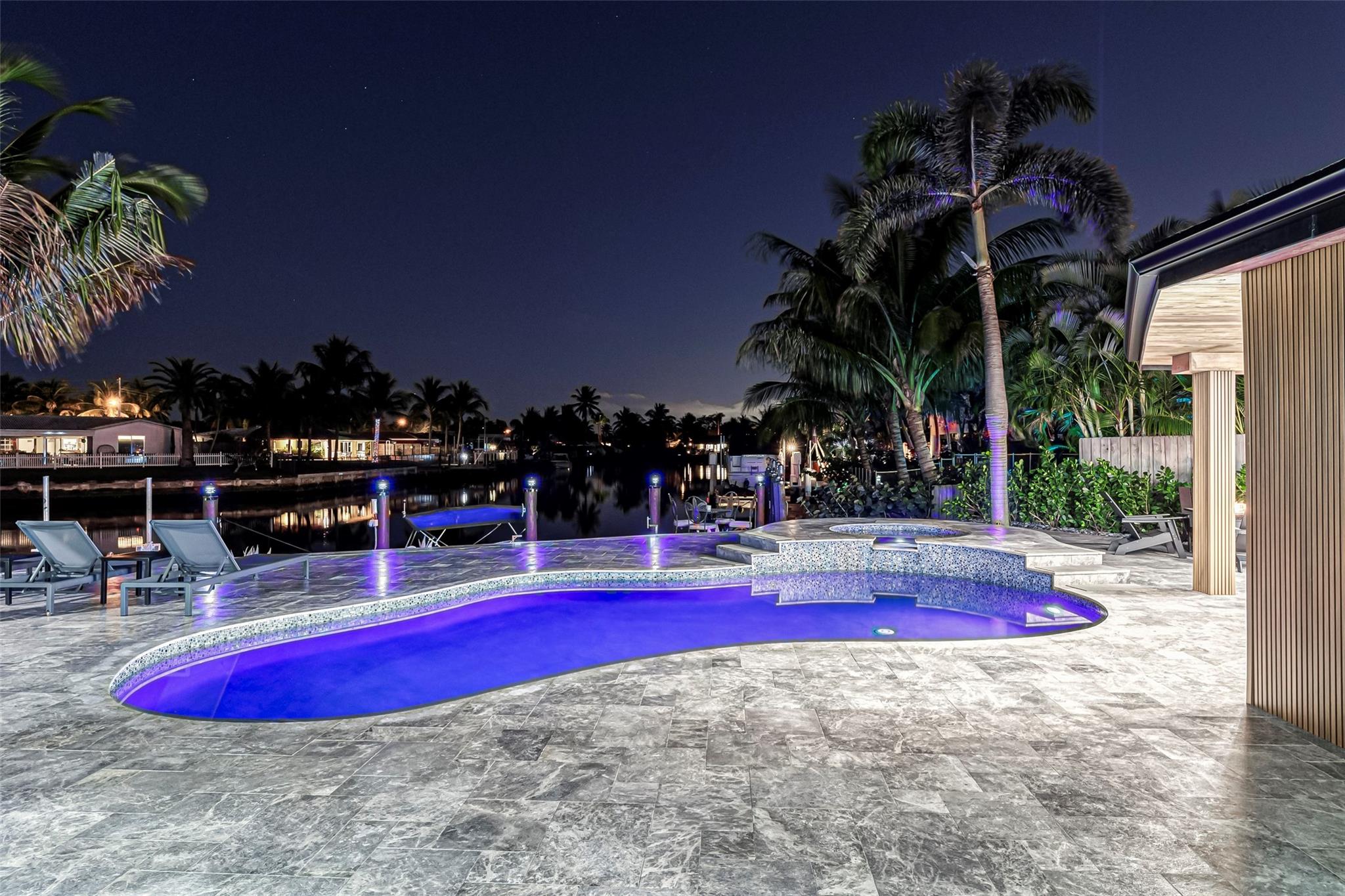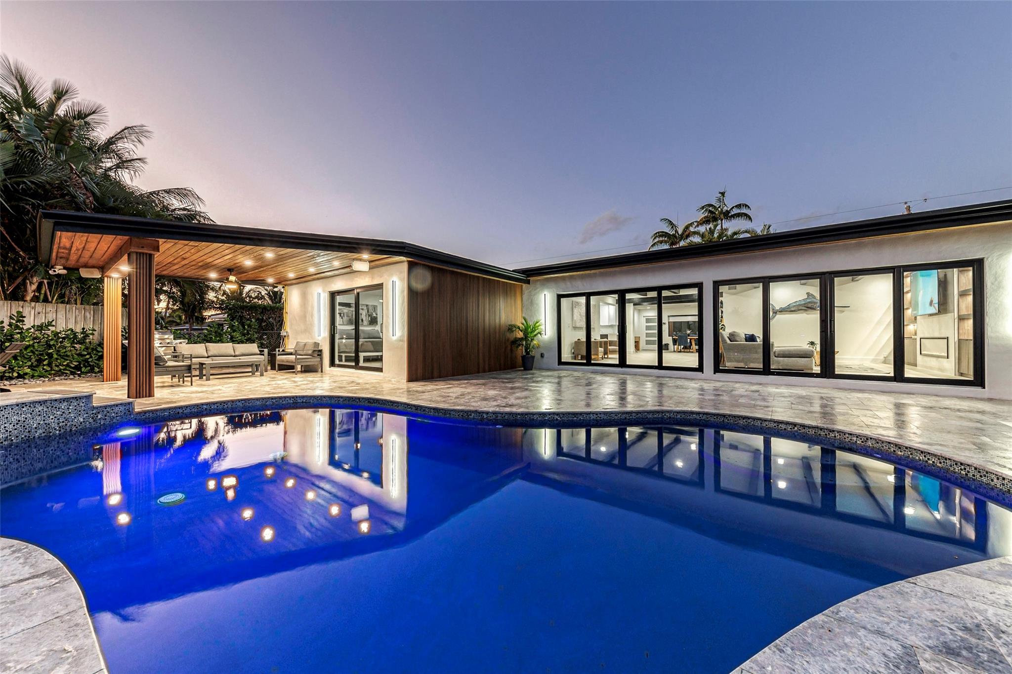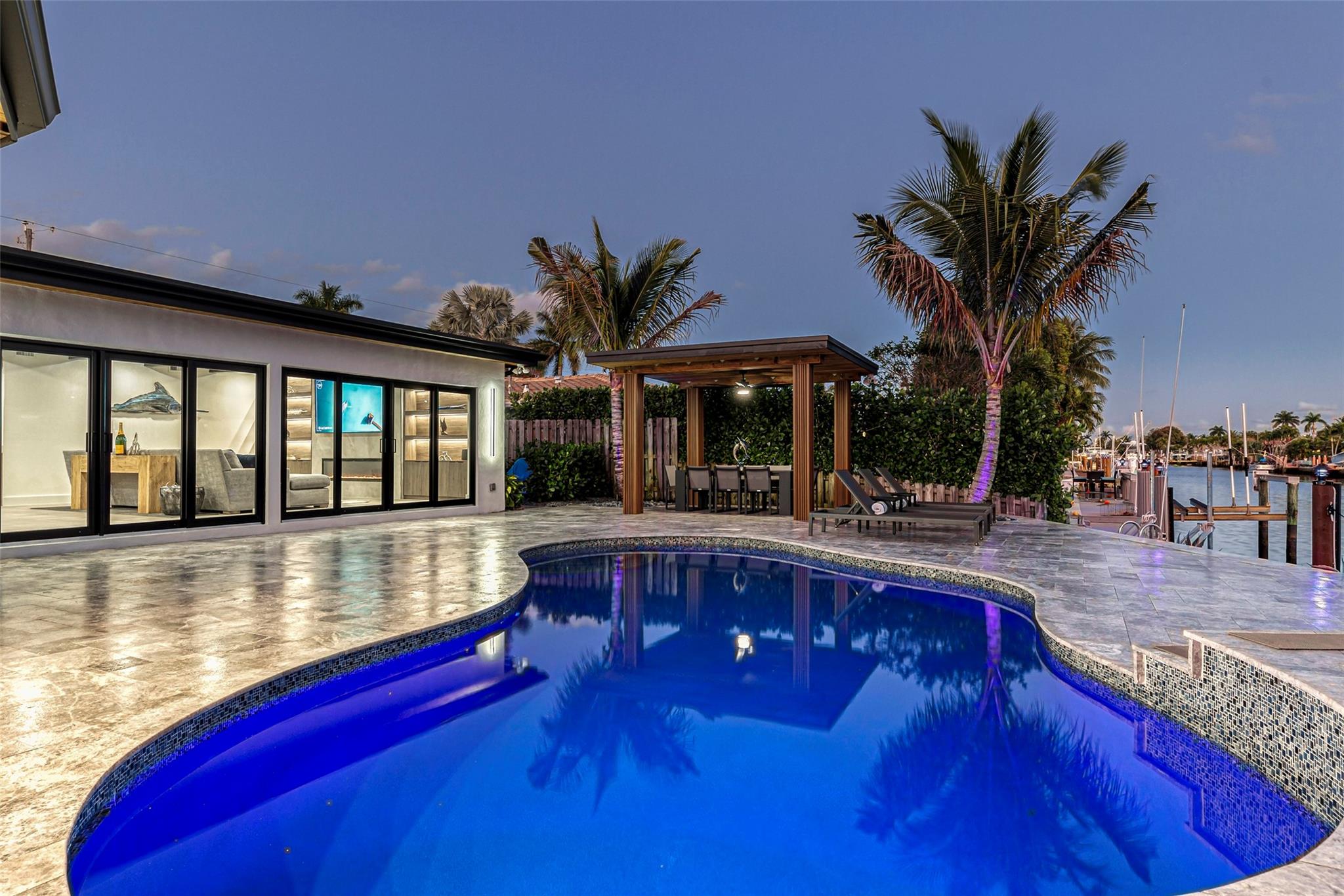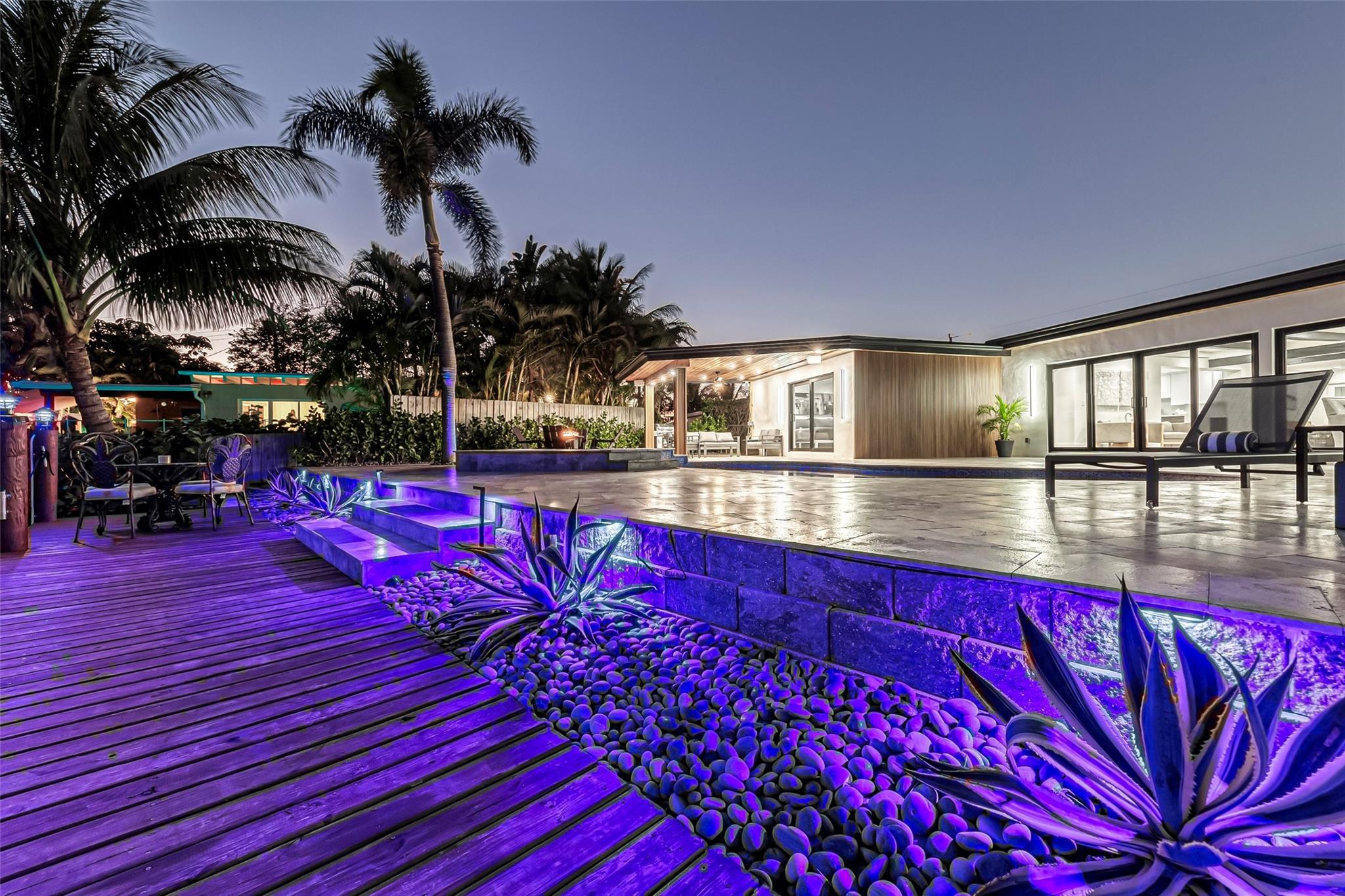 Welcome home to the gem of Garden Isles! No expense was spared in this stunning, fully renovated modern retreat in the heart of Pompano Beach. This waterfront paradise boasts 60 ft of seawall and prime unobstructed canal views, travertine patio, al fresco dining and outdoor kitchen, refinished heated pool and spa, luxury finishes, large profile tile floors, rich teak accents, exposed beams, modern fireplaces, custom cabinetry throughout, full impact windows and doors, electric privacy shades in every room and a fully equipped garage gym. The primary wing boasts a resort-inspired ensuite w/curbless shower and soaking tub, double vanity and a gorgeous walk-in closet w/under cabinet lighting, complete with sliding doors leading out to your private backyard oasis. Seller Financing Available.
