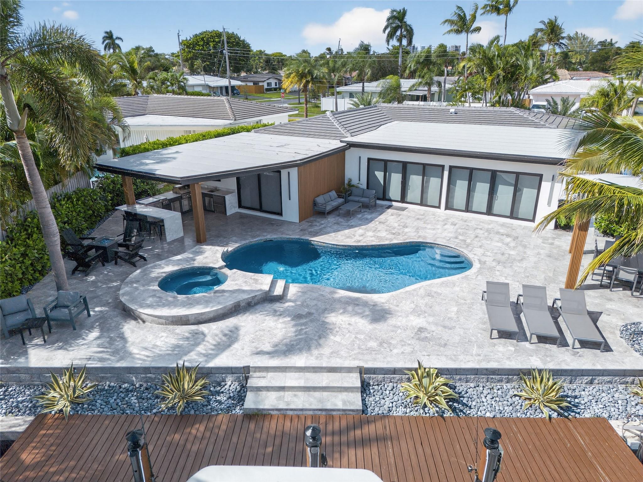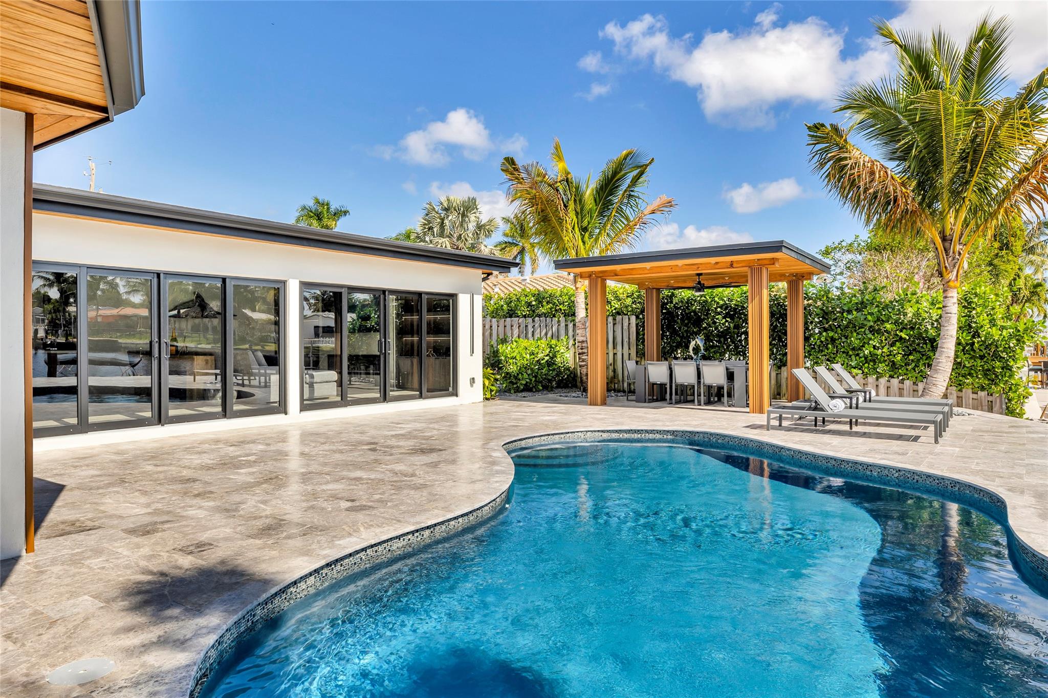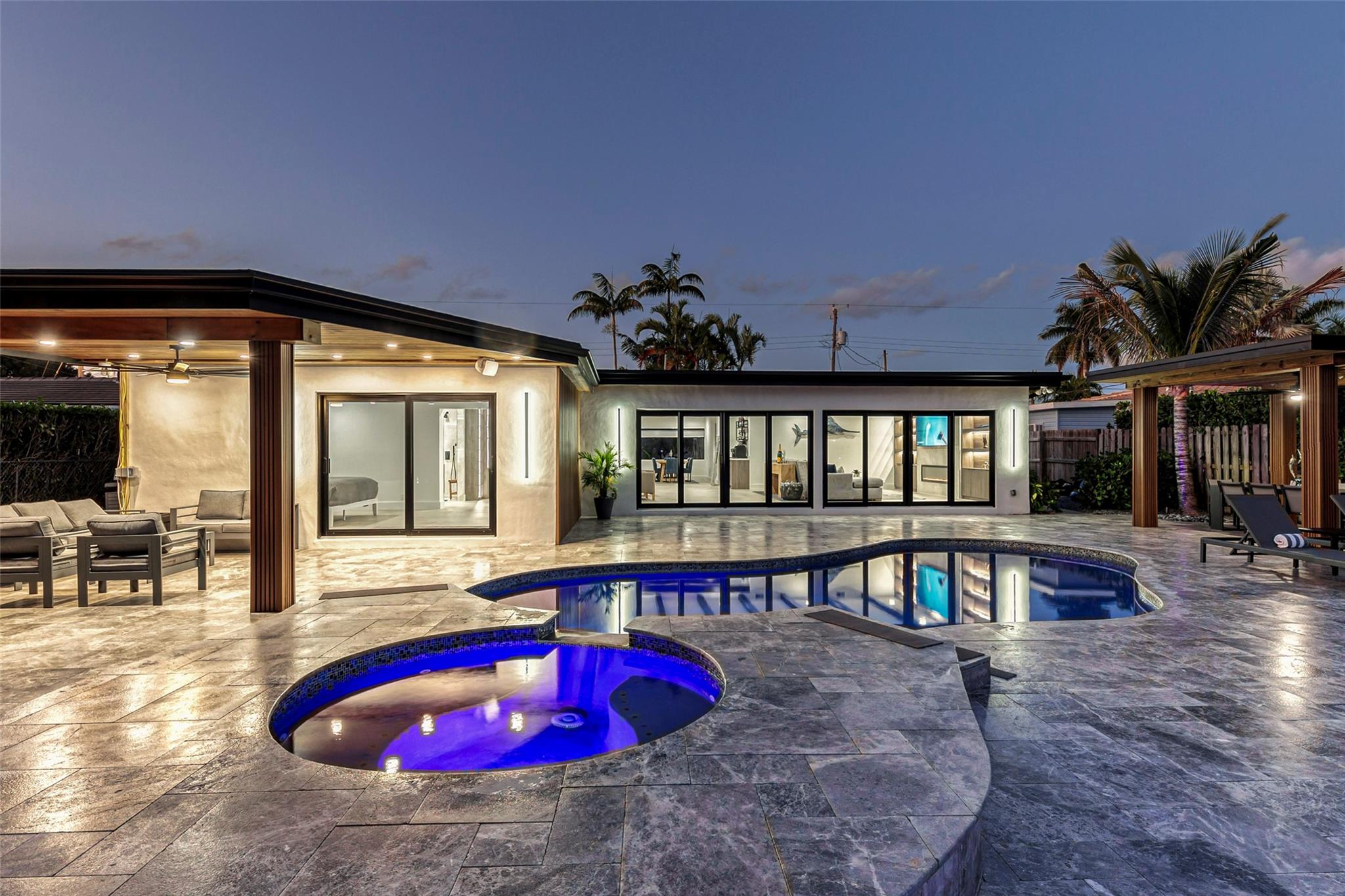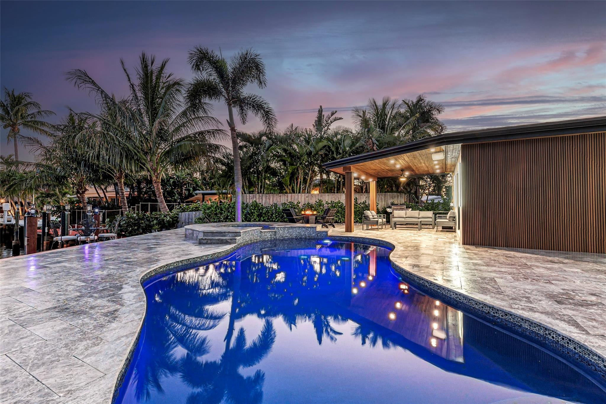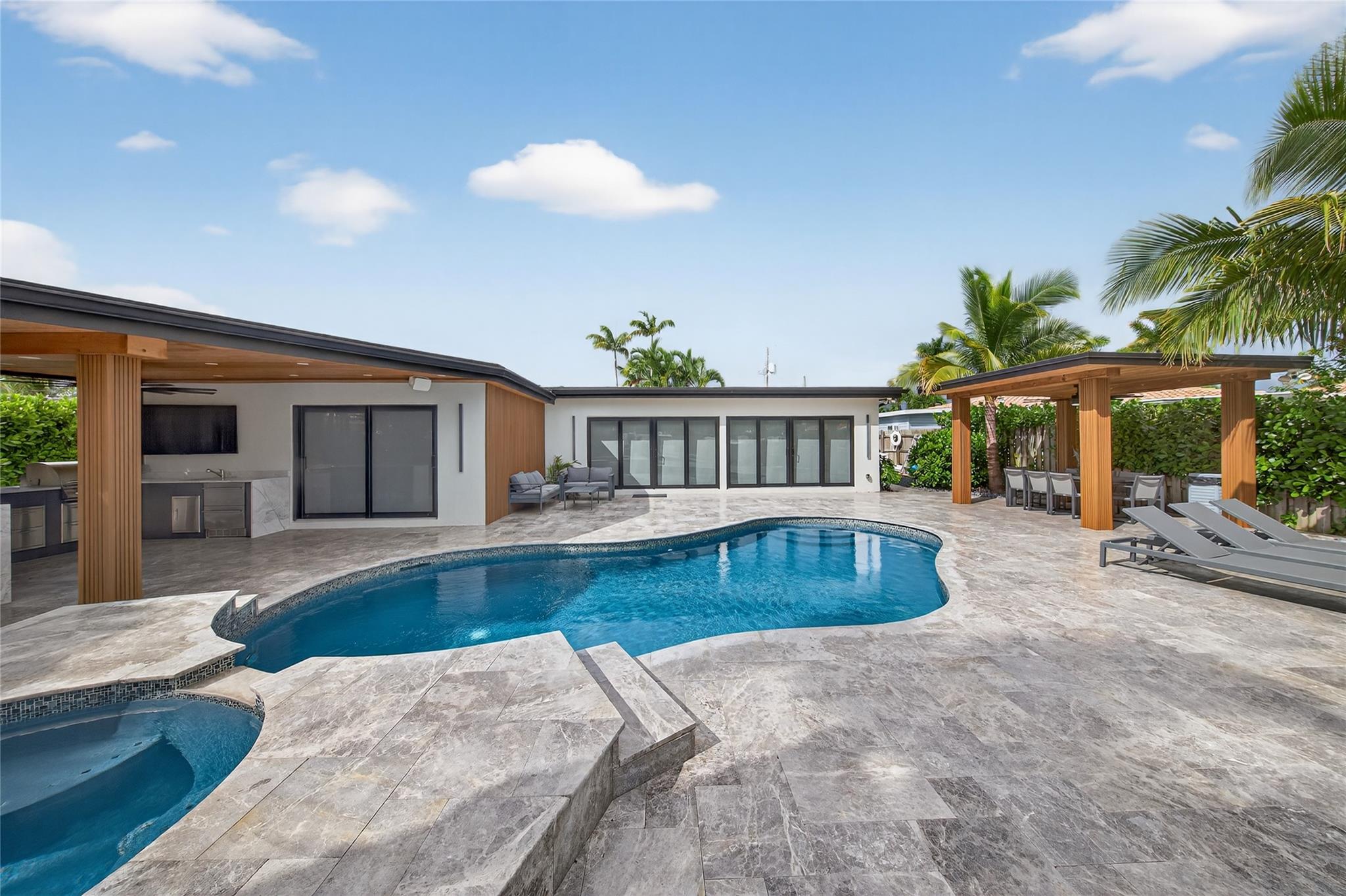 Welcome home to the gem of Garden Isles! No expense was spared in this stunning, fully renovated modern retreat in the heart of Pompano Beach. This waterfront paradise boasts 60 ft of seawall and prime unobstructed canal views, travertine patio, al fresco dining and outdoor kitchen, refinished heated pool and spa, luxury finishes, large profile tile floors, rich teak accents, exposed beams, modern fireplaces, custom cabinetry throughout, full impact windows and doors, electric privacy shades in every room and a fully equipped garage gym. The primary wing boasts a resort-inspired ensuite w/curbless shower and soaking tub, double vanity and a gorgeous walk-in closet w/under cabinet lighting, complete with sliding doors leading out to your private backyard oasis. Seller Financing Available.