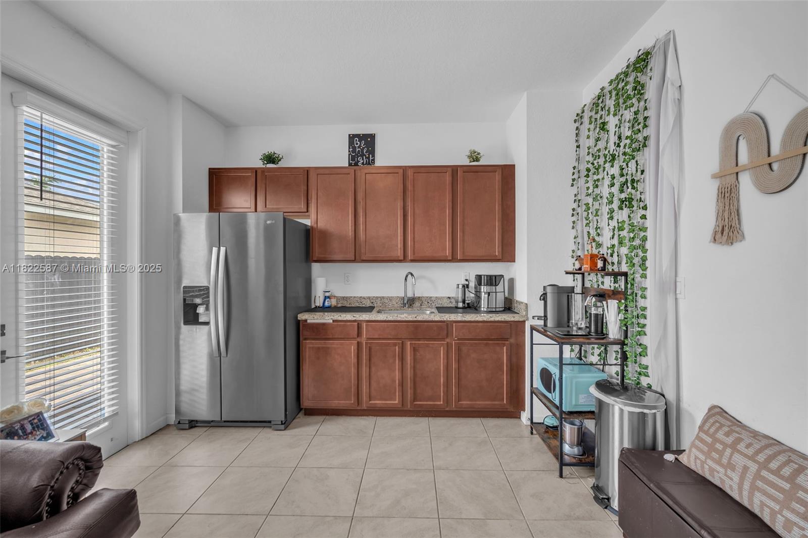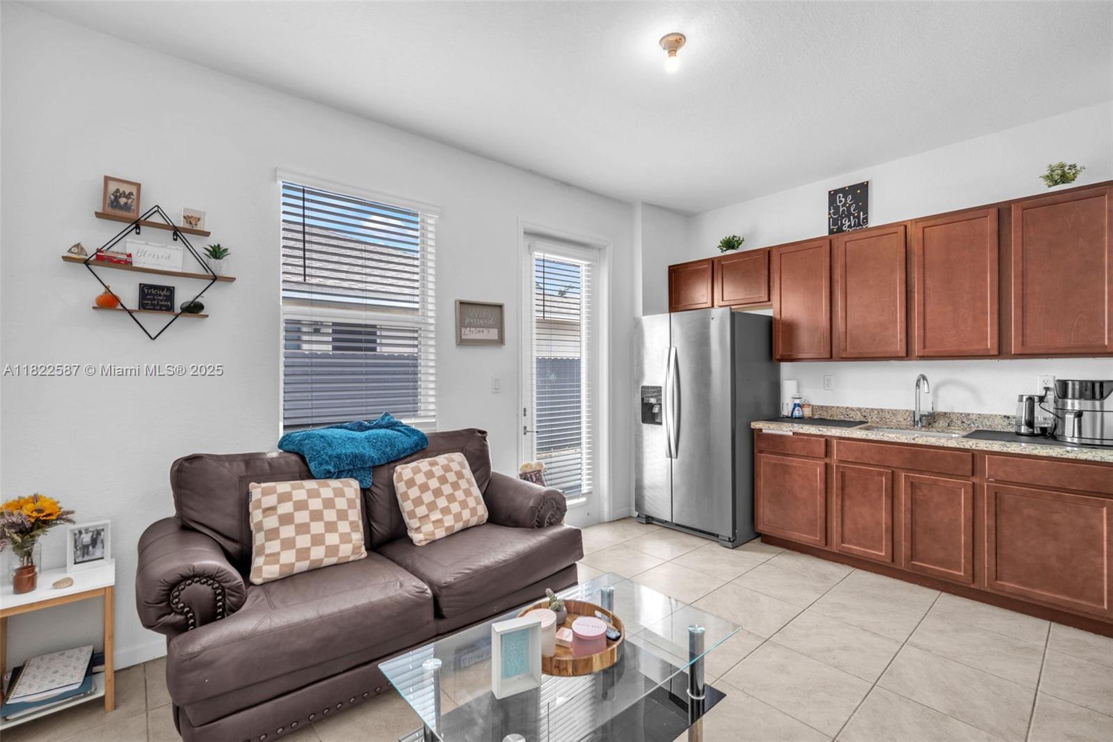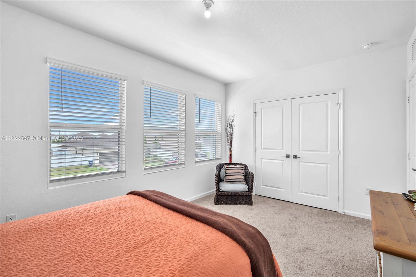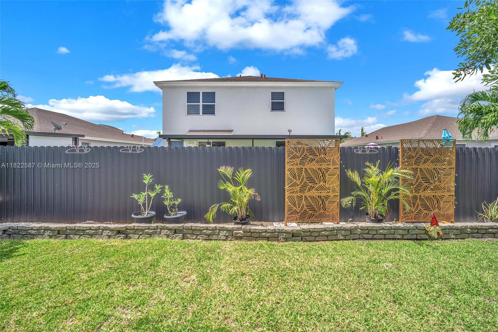 Beautiful 2-story Homestead home with 2-car garage, small porch, and inviting foyer. The open living and dining areas are perfect for entertaining family and friends. The island kitchen includes a double-door refrigerator, stove, microwave, garbage disposal, and ample cabinet space for all your cooking needs. Downstairs features a half bath, attic storage, and small walk-in closet with shelving. Upstairs has carpet throughout, a spacious loft with closet, laundry room, three bedrooms, and a master suite with walk-in closet, double sinks, shower, and separate tub. Guest bath offers double sinks and tub/shower. The backyard includes patio, pavers, grassy area, small garden, and three ceiling fans for outdoor comfort and relaxation. Separate in-law or guest-entry on the side of house.