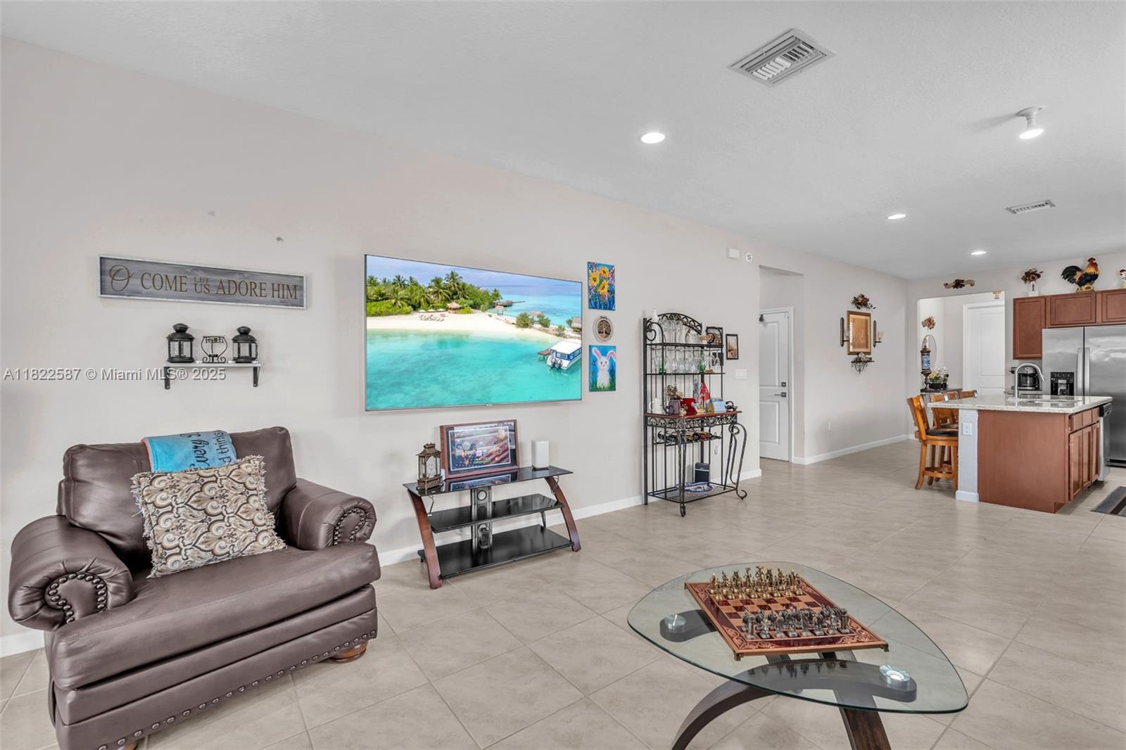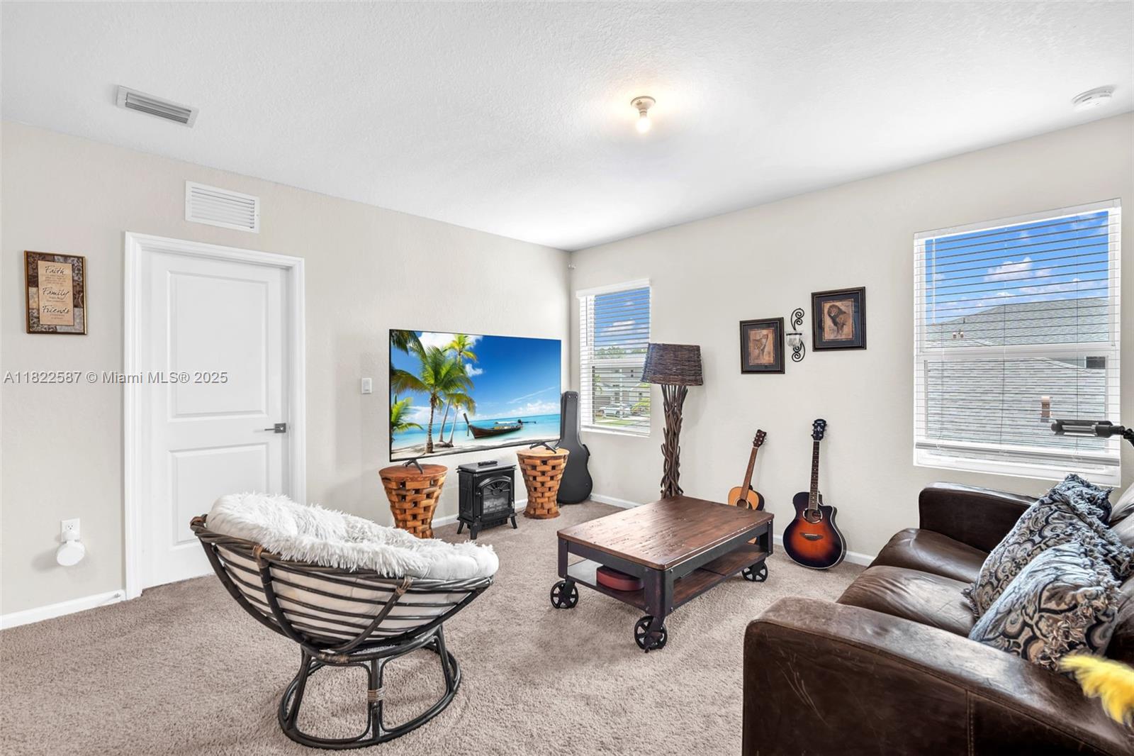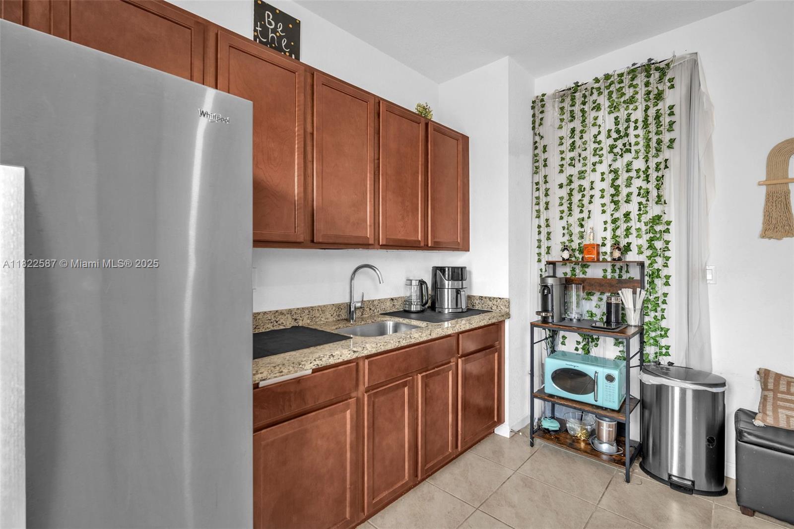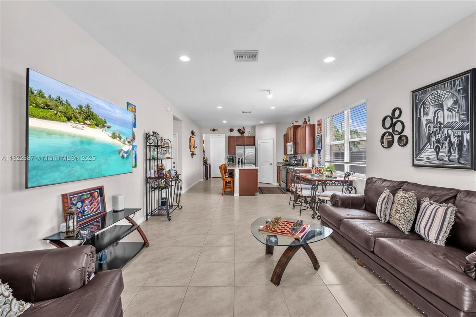 Beautiful 2-story Homestead home with 2-car garage, small porch, and inviting foyer. The open living and dining areas are perfect for entertaining family and friends. The island kitchen includes a double-door refrigerator, stove, microwave, garbage disposal, and ample cabinet space for all your cooking needs. Downstairs features a half bath, attic storage, and small walk-in closet with shelving. Upstairs has carpet throughout, a spacious loft with closet, laundry room, three bedrooms, and a master suite with walk-in closet, double sinks, shower, and separate tub. Guest bath offers double sinks and tub/shower. The backyard includes patio, pavers, grassy area, small garden, and three ceiling fans for outdoor comfort and relaxation. Separate in-law or guest-entry on the side of house.