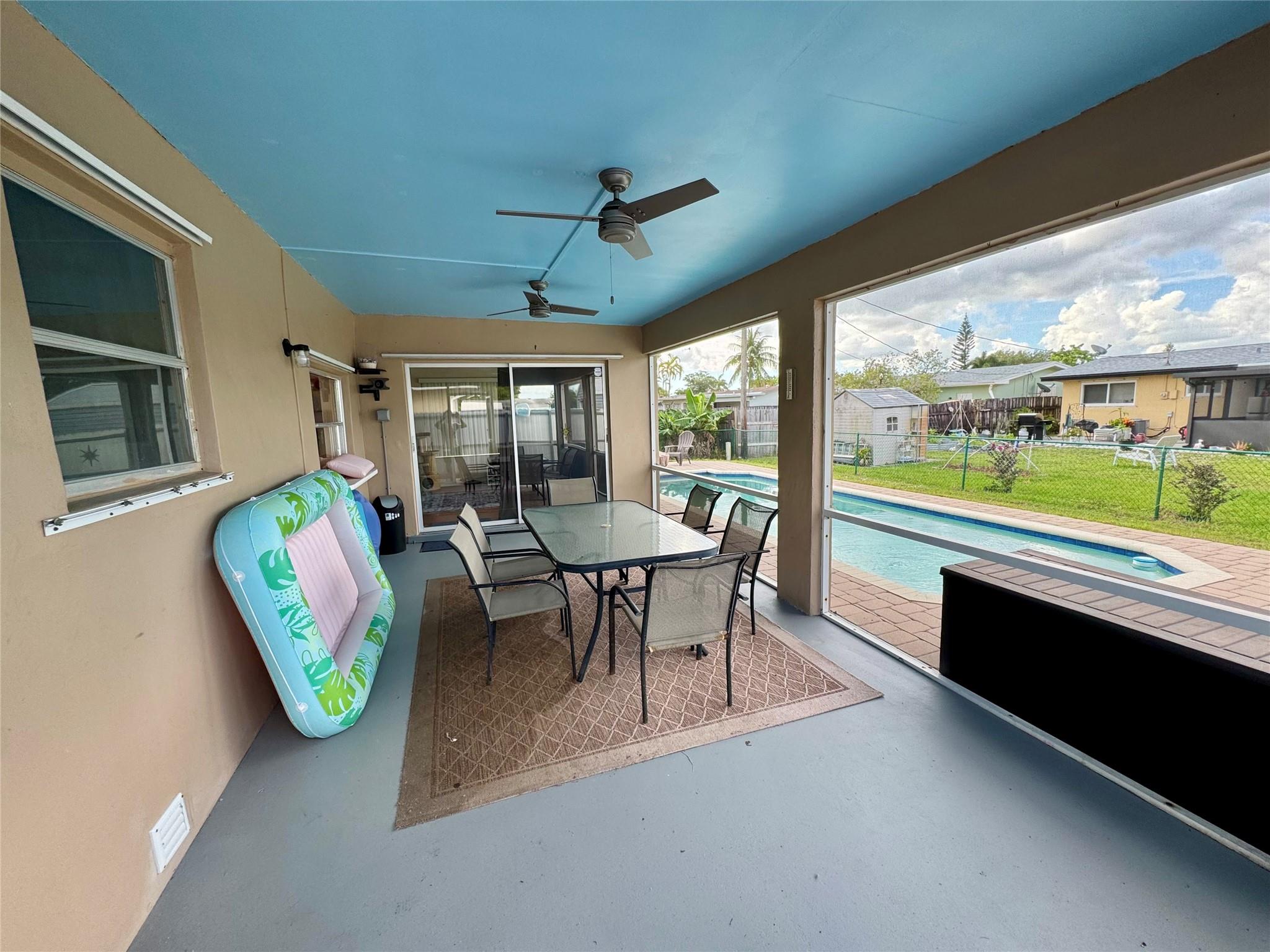 Welcome to this charming and meticulously maintained 2-bedroom, 2-bath single-family home located in the inviting Sunswept neighborhood - with no HOA fees! Offering 1,388 sq ft of comfortable living space, this home features a spacious family room, a one-car garage, and a wide driveway with plenty of parking. Step outside to your private screened-in porch, and fully fenced backyard complete with a refreshing pool - ideal for entertaining and summer barbecues. Recent upgrades give you added peace of mind, including a new roof, hurricane-rated garage door, and hurricane shutters. Centrally located near major highways, shopping, and dining - this home offers both comfort and convenience. Don’t miss your chance to own a slice of South Florida paradise; schedule a showing today!