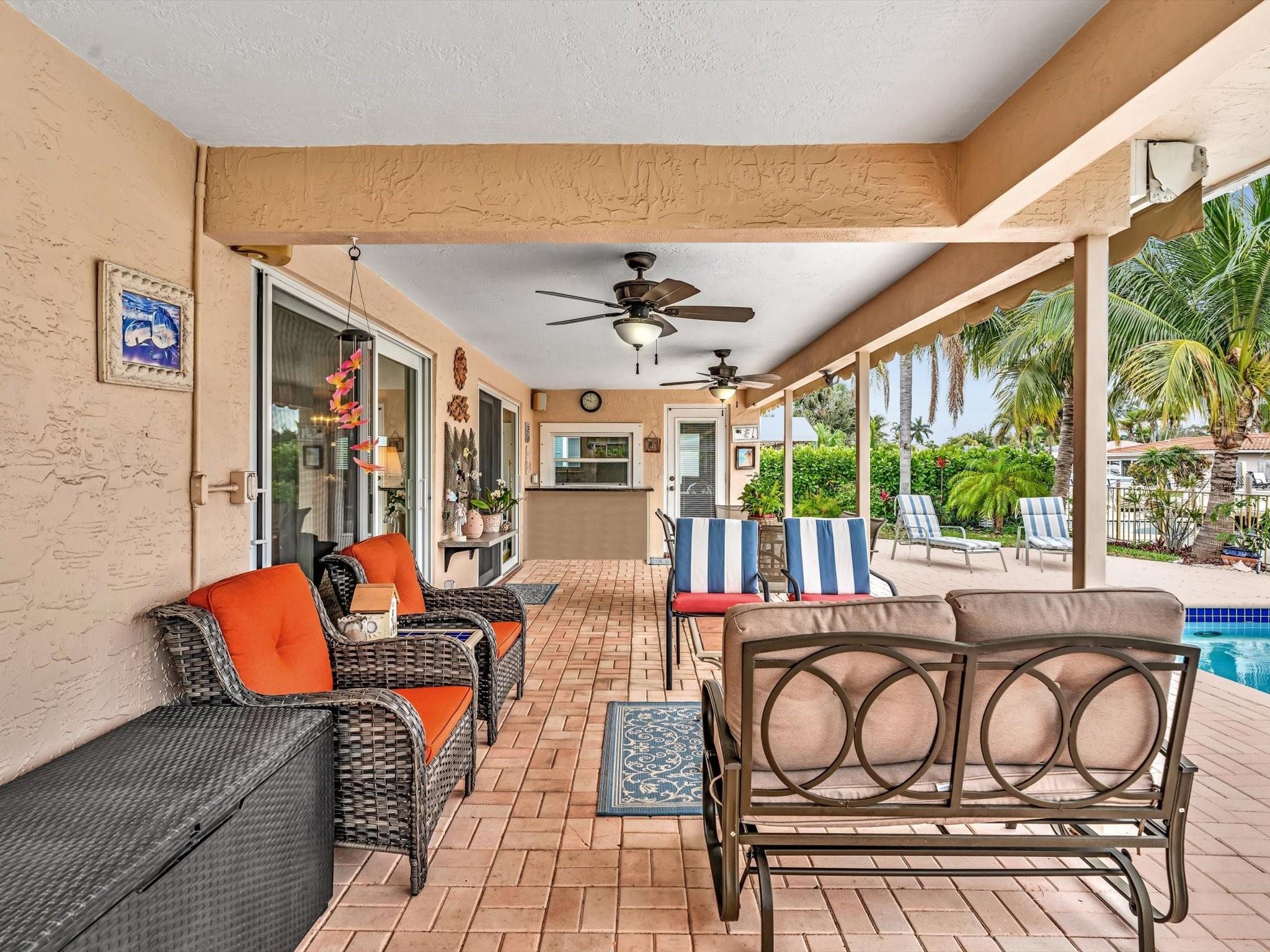 70FT OF WATERFRONT! With 3 bedrooms and 2 bathrooms, this meticulously maintained waterfront home is a short walk to the beach. Enjoy Florida's outdoor lifestyle with a saltwater pool, outdoor shower and a covered patio, ideal for relaxing or entertaining. This beautiful property has a 60ft dock, NO FIXED BRIDGES, NEW AC, and is a short boat ride to the Hillsboro Inlet. Complete with impact windows and doors (pass-through kitchen window and garage side door have shutters), located on a private cul-de-sac, and a circular driveway for ample parking. The single car garage provides additional storage, completing this perfect package. Minutes away from beautiful beaches, restaurants, shopping, parks and the Pompano Beach Pier.