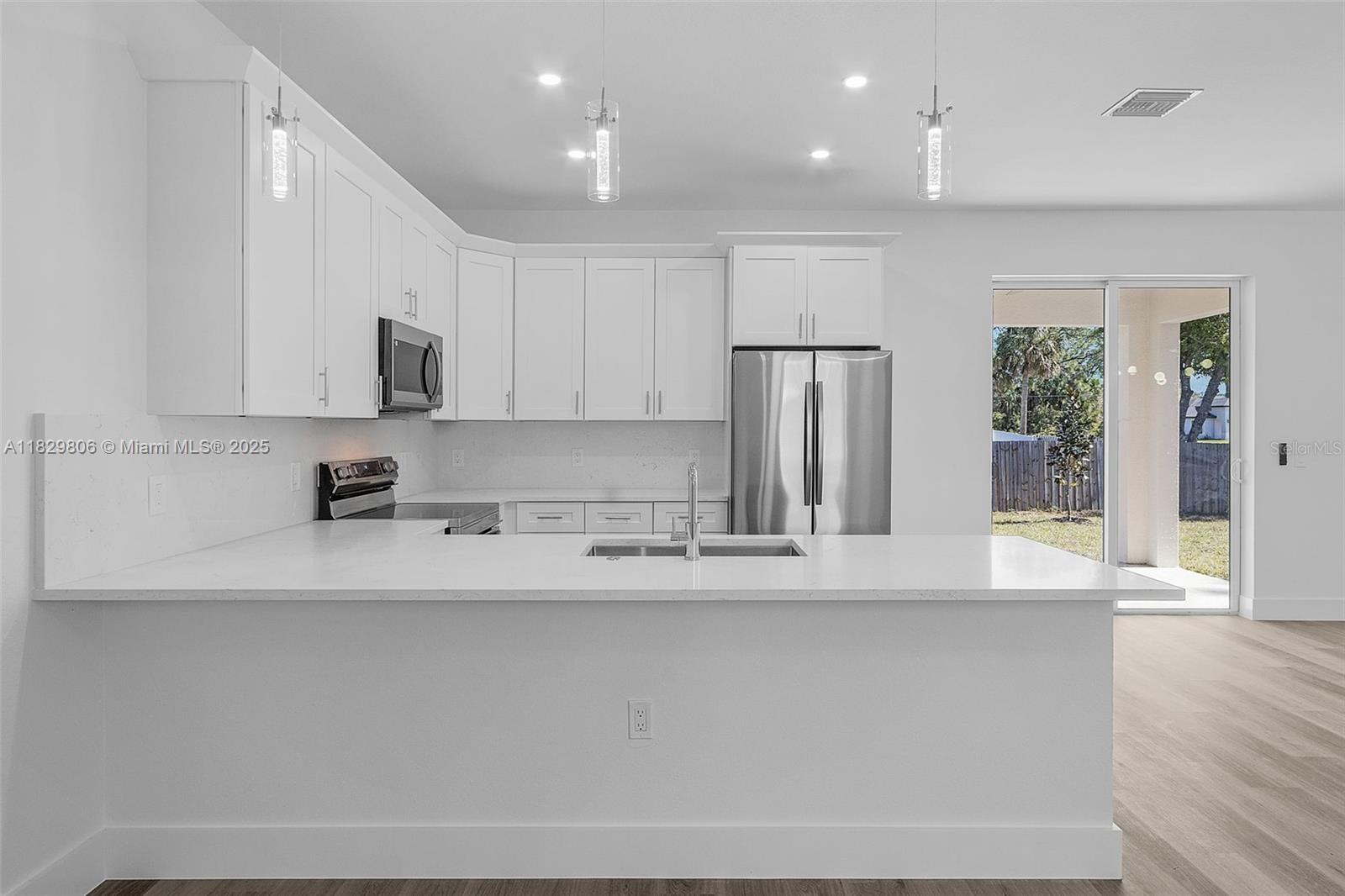 One or more photo(s) has been virtually staged. Move-in ready! This 3-bedroom, 2-bathroom, 1,610 SF living area home, located in North Port offers a modern and free flowing design adorned with luxury finishes. Enhanced with high ceilings and large high-end energy efficient impact windows, the interior features an open-concept living room that provides additional space for your dining and entertaining needs. The kitchen features stainless steel Samsung appliances, quartz countertops, and an oversized island. Enjoy a master suite with a walk-in closet and a double vanity bathroom. The beautiful area of North Port offers residents a premier location with easy access to a multitude of water recreation opportunities, plus easy access to the Gulf of Mexico’s best beaches.